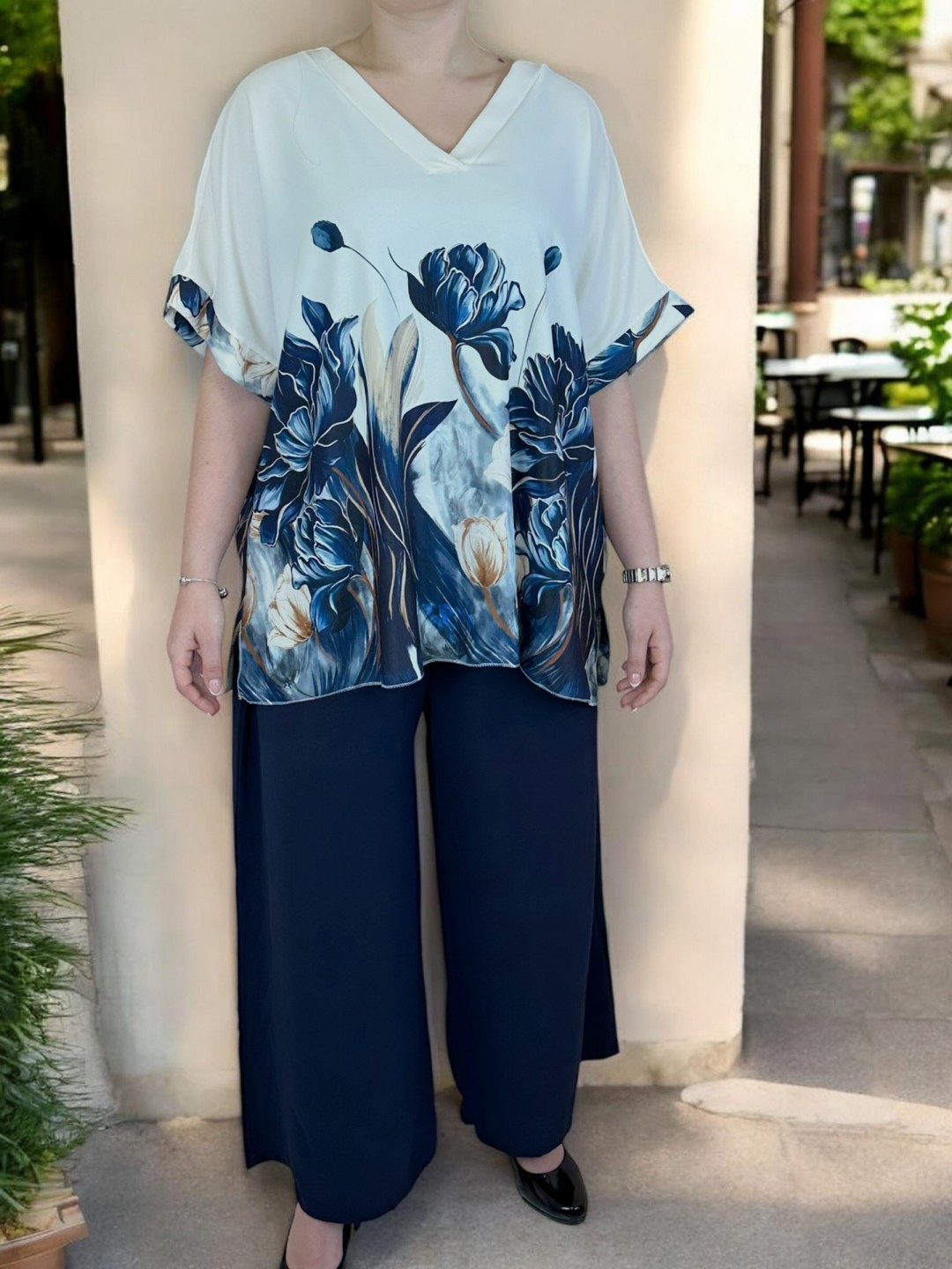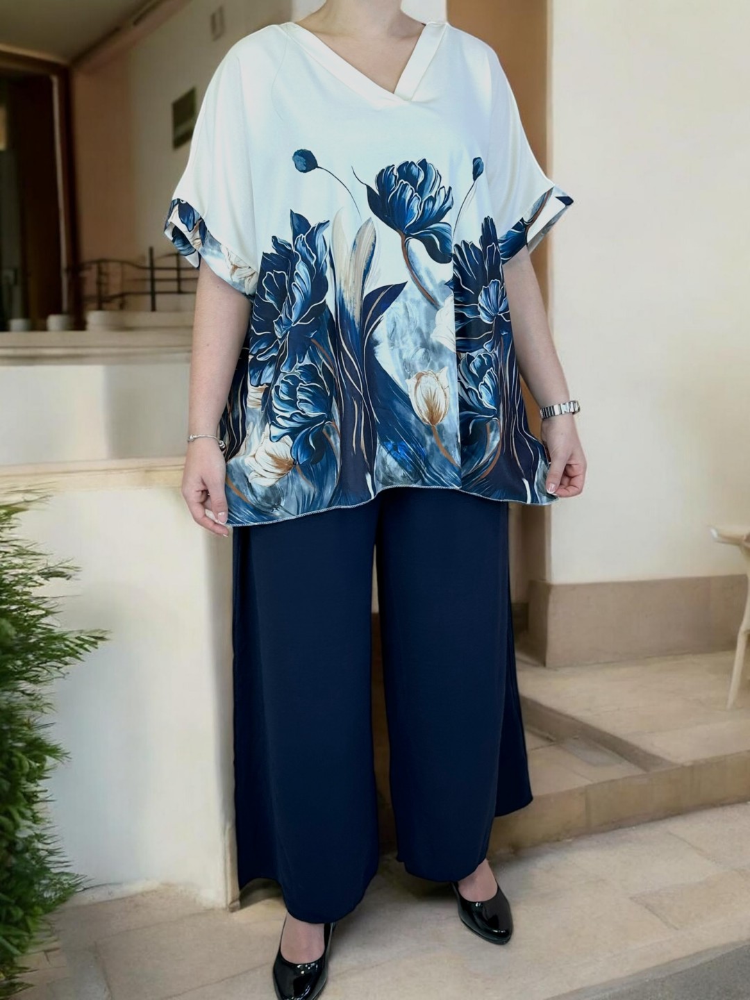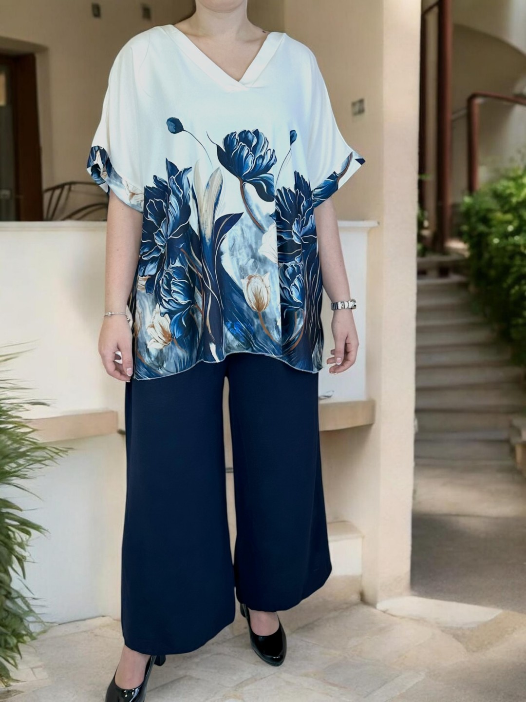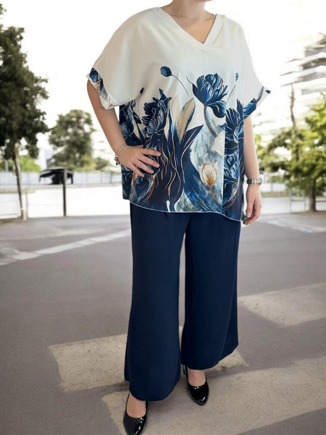 Elegant σετάκι με floral μοτίβο και V λαιμόκοψη