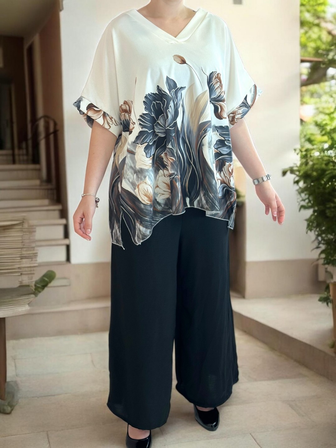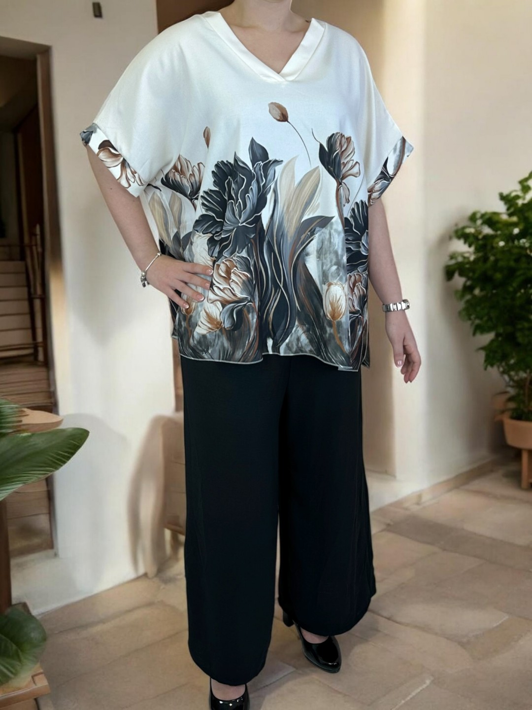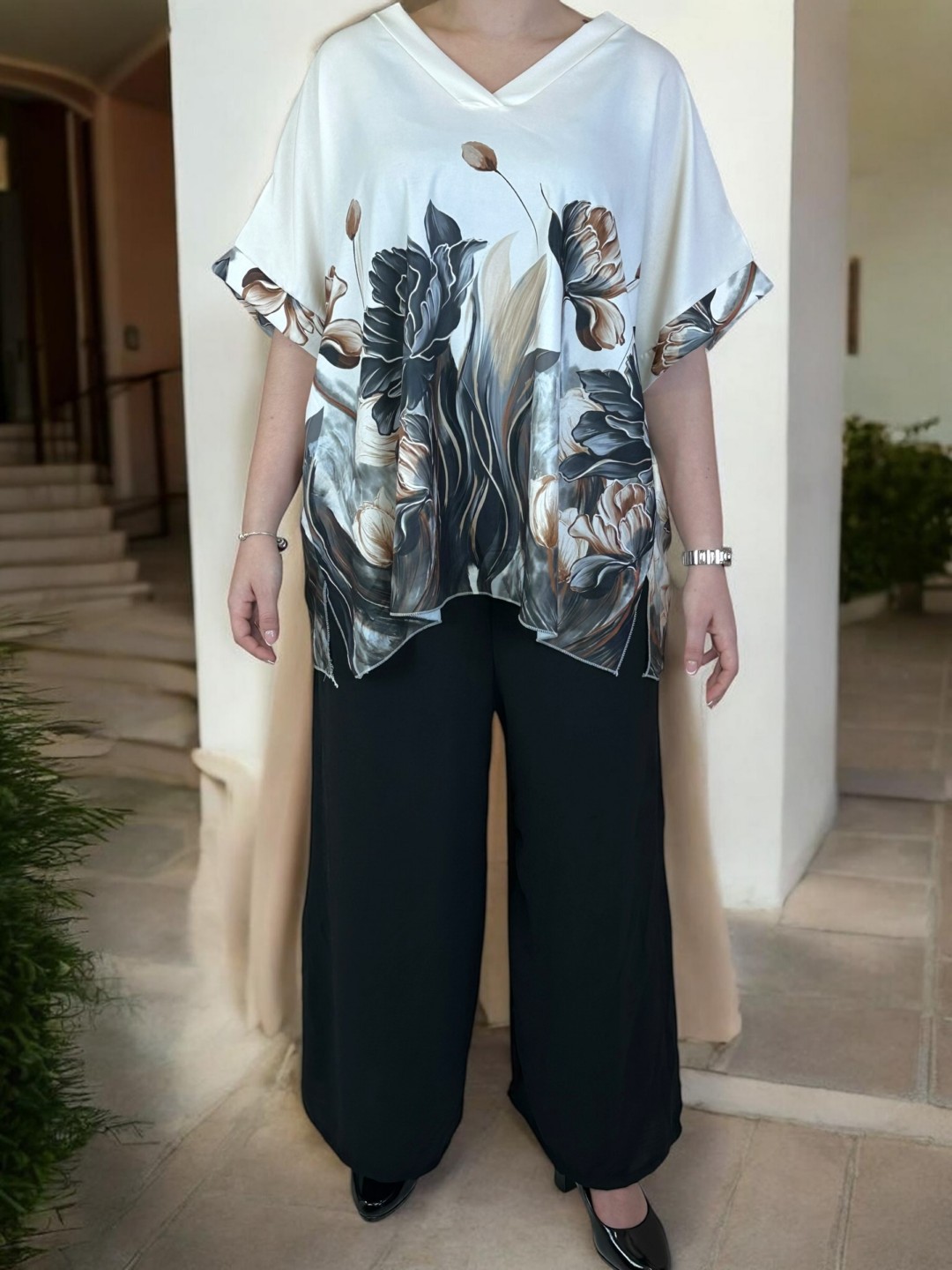 Elegant σετάκι με floral μοτίβο και V λαιμόκοψη