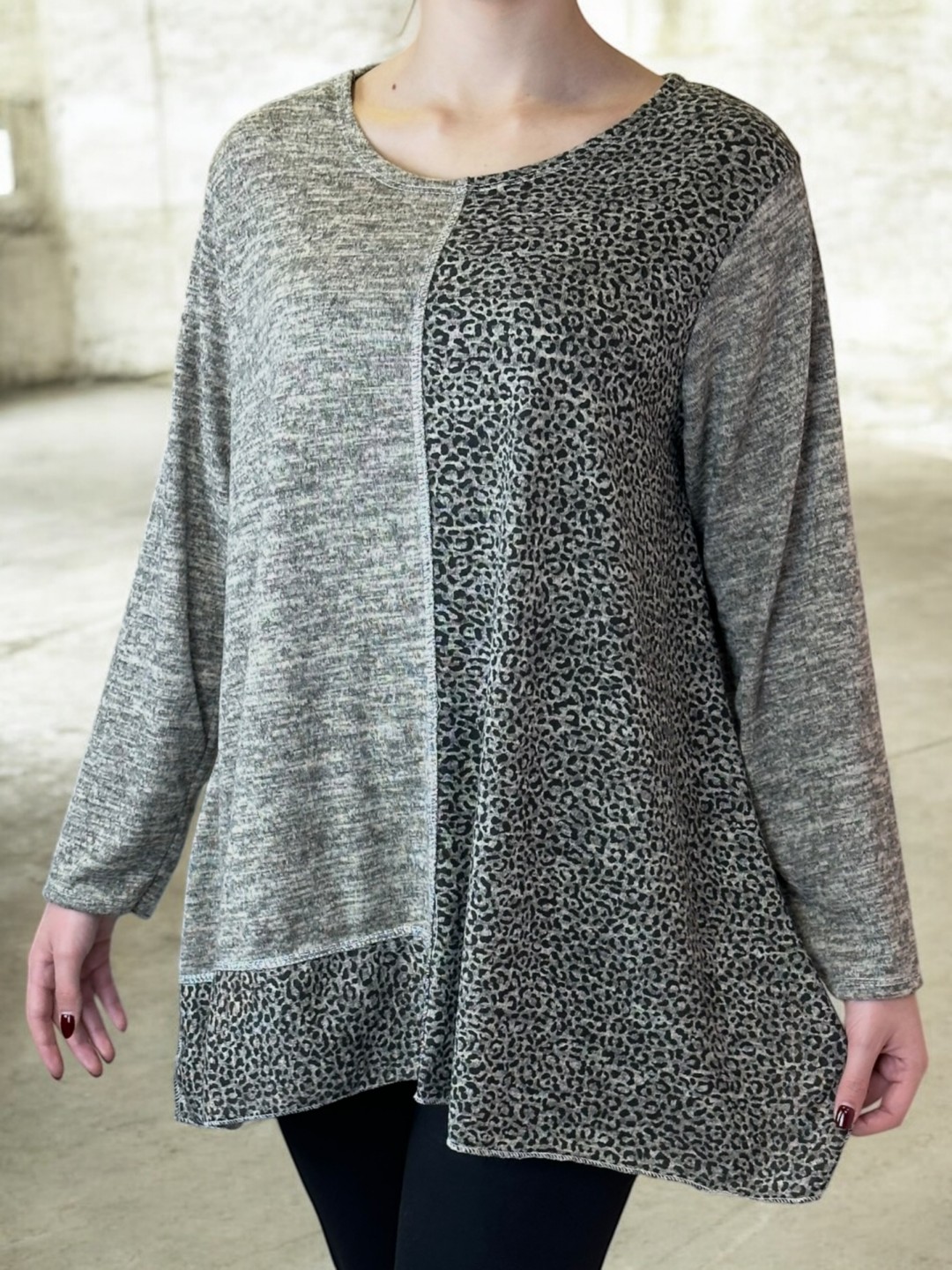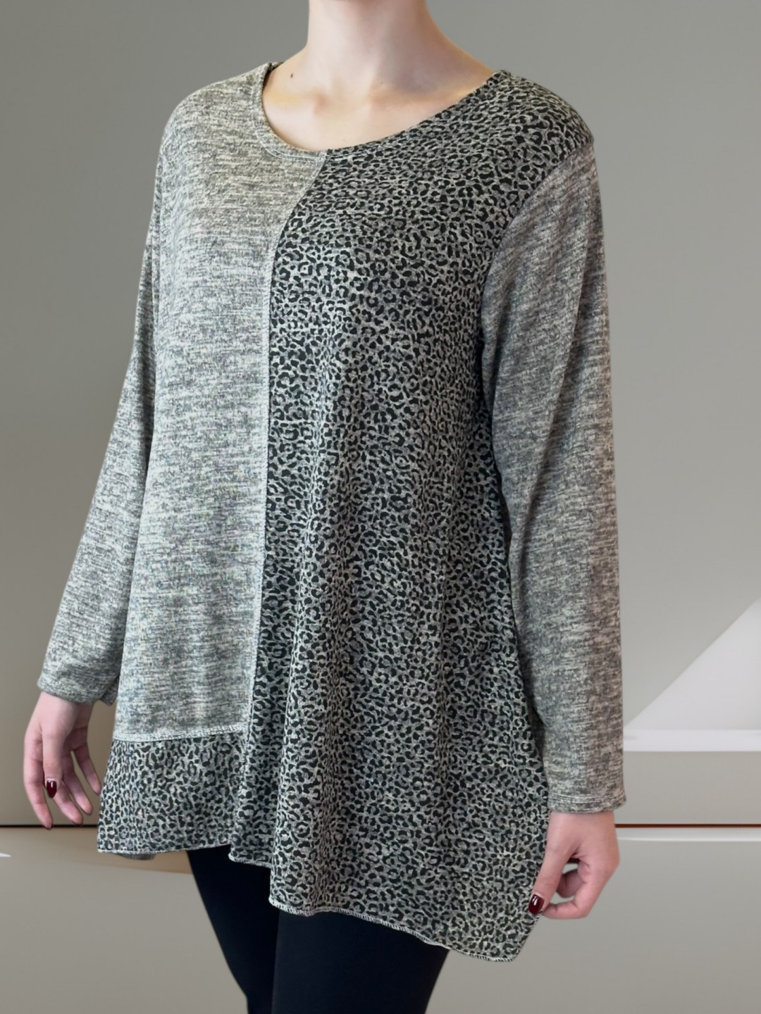 Ανανεώστε τη γκαρνταρόμπα σας με την Everyday Chic Μπλούζα με Λεοπάρ Διχρωμία σε plus size. Εξαιρετικά μοντέρνα και κομψή, ιδανική για κάθε εμφάνιση. Σε One size για να ταιριάζει απόλυτα σε κάθε σιλουέτα!
