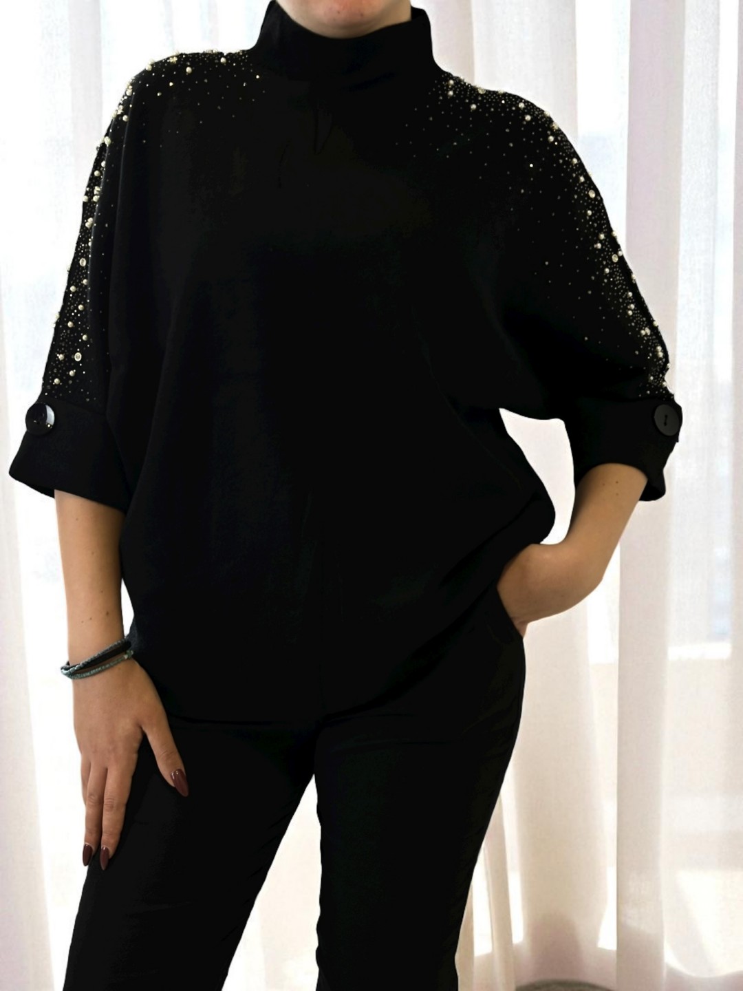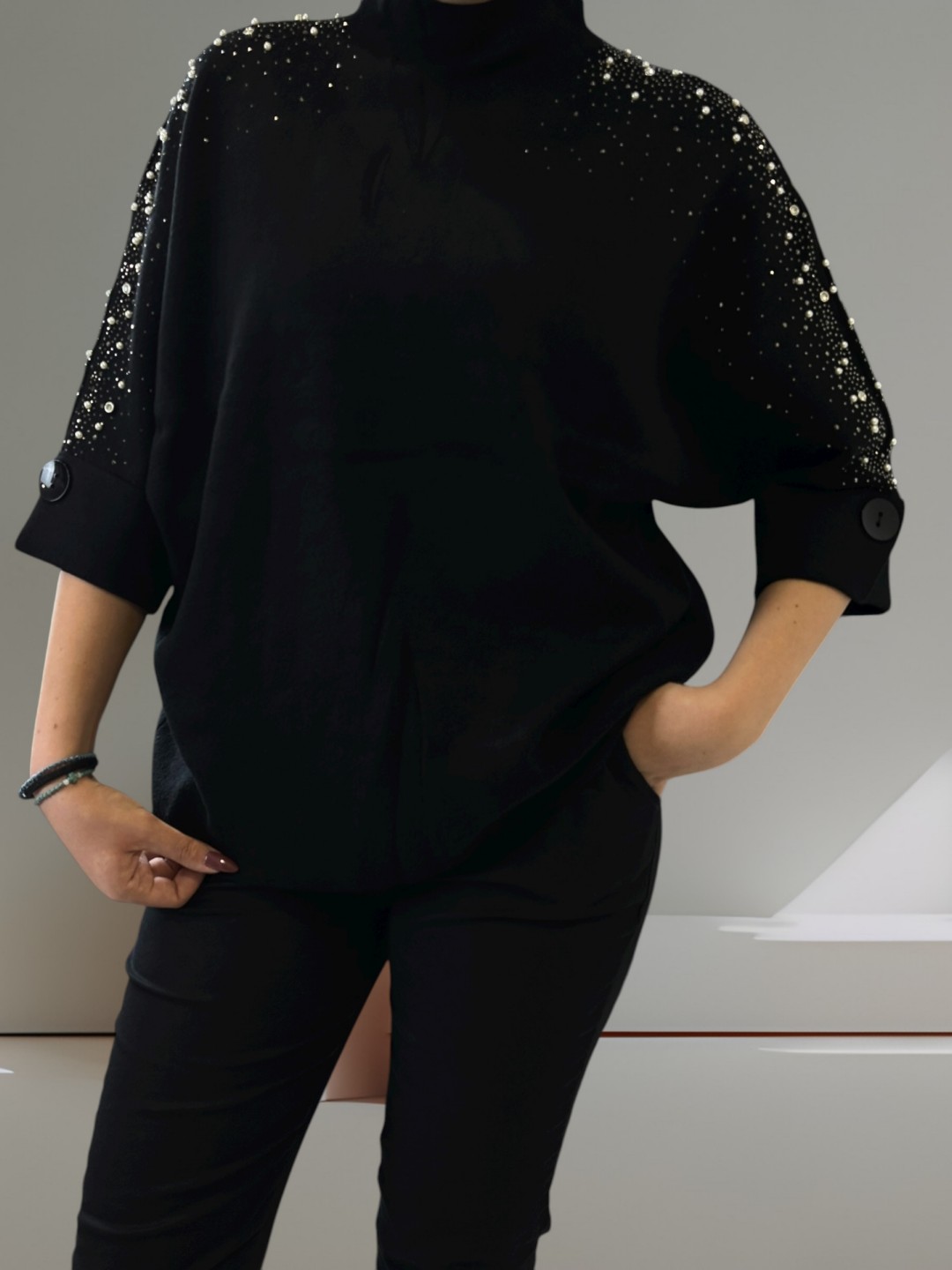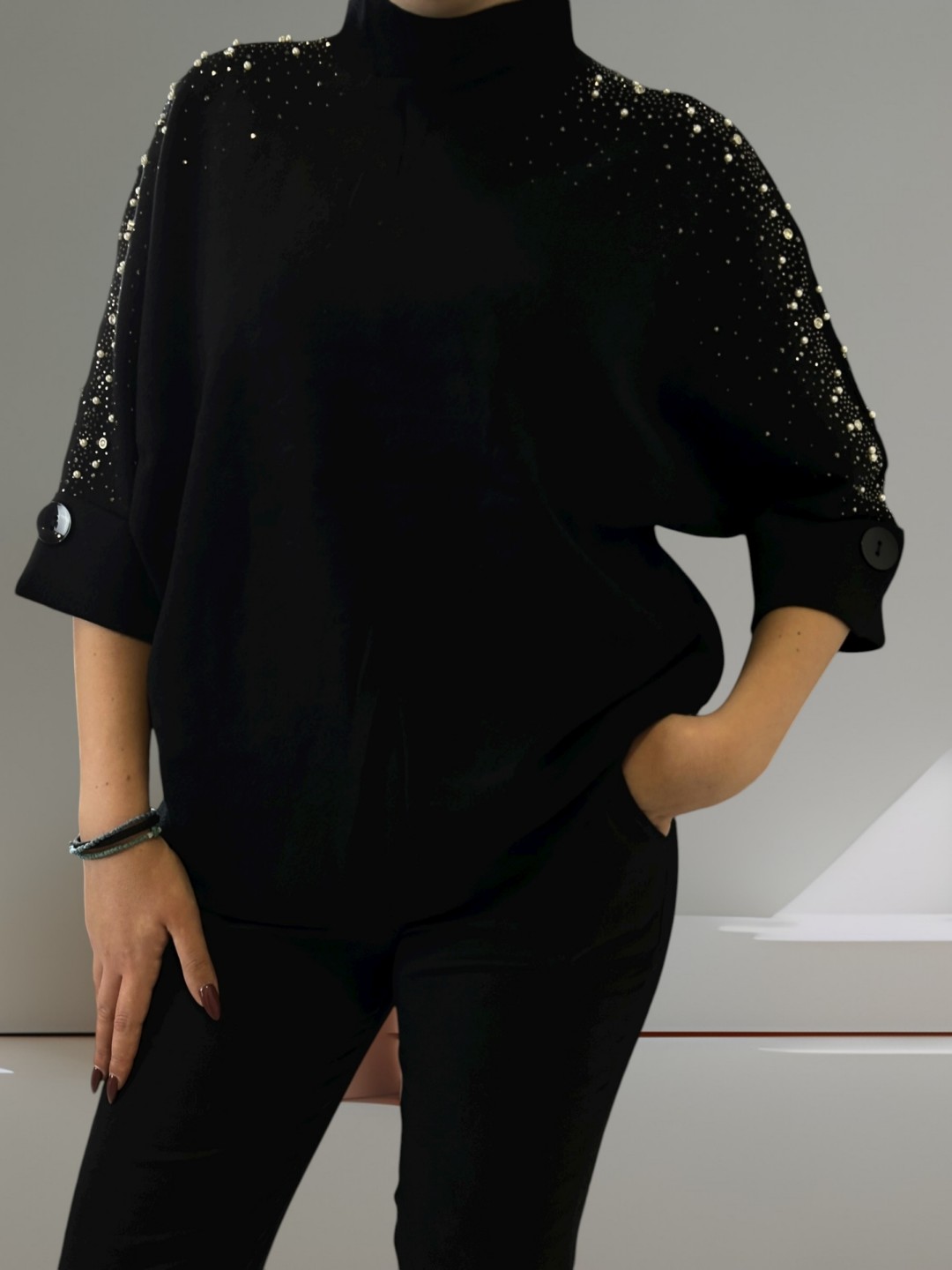Fashion μπλούζα με στρας & στυλάτα μανίκια
