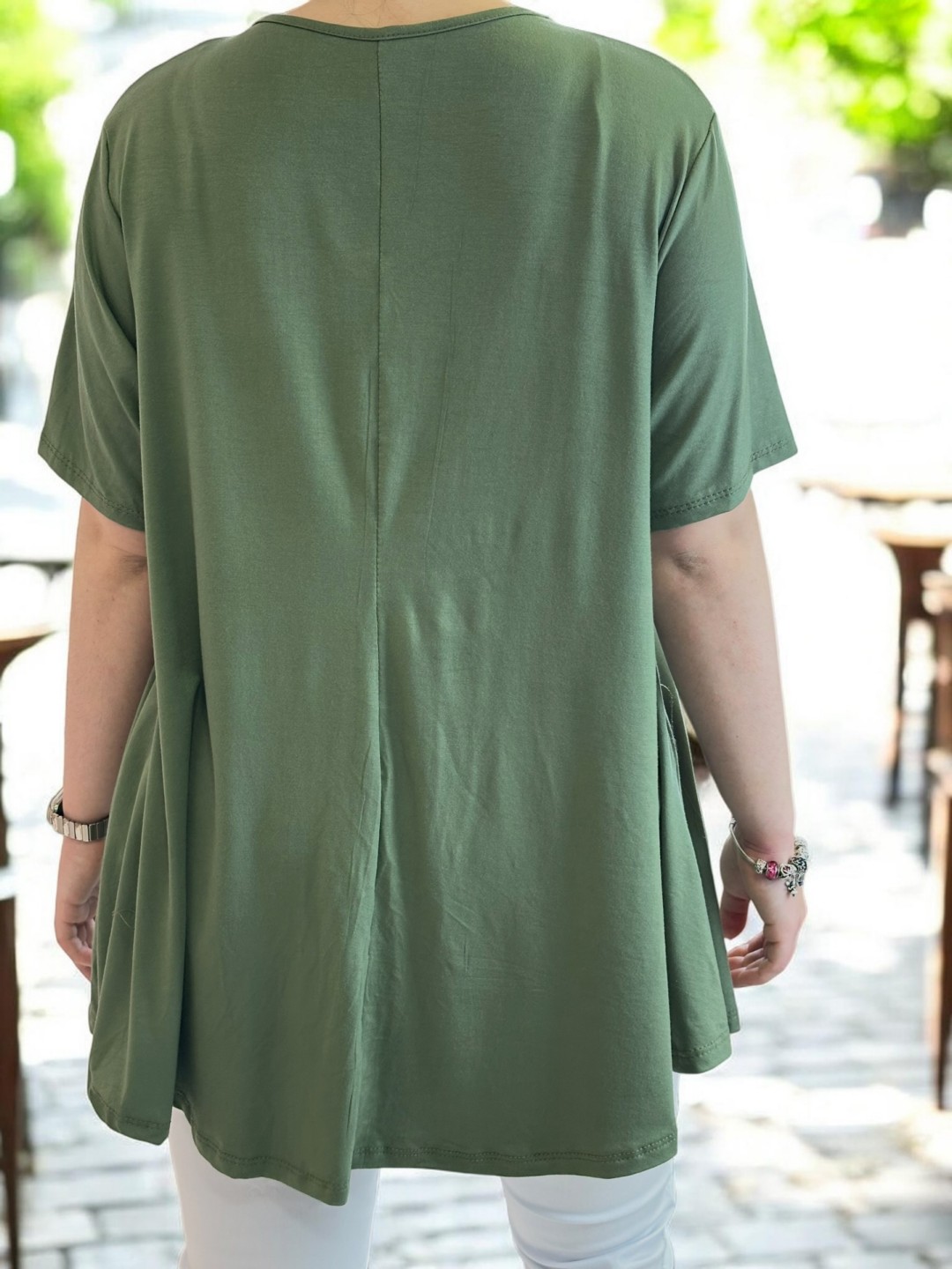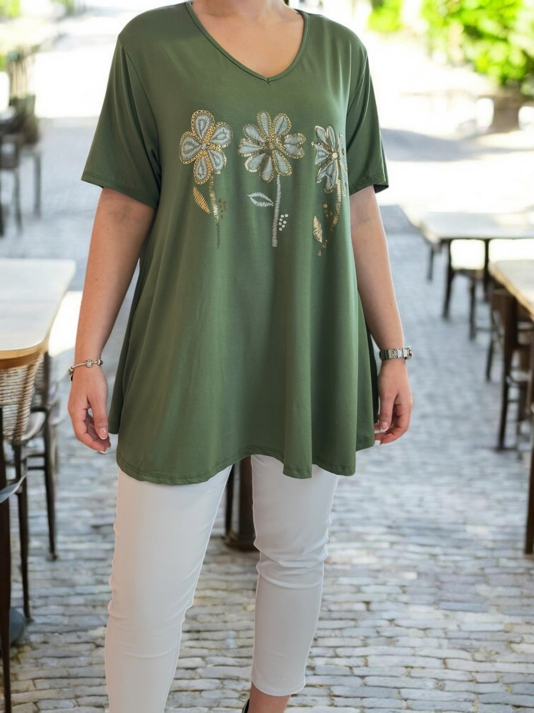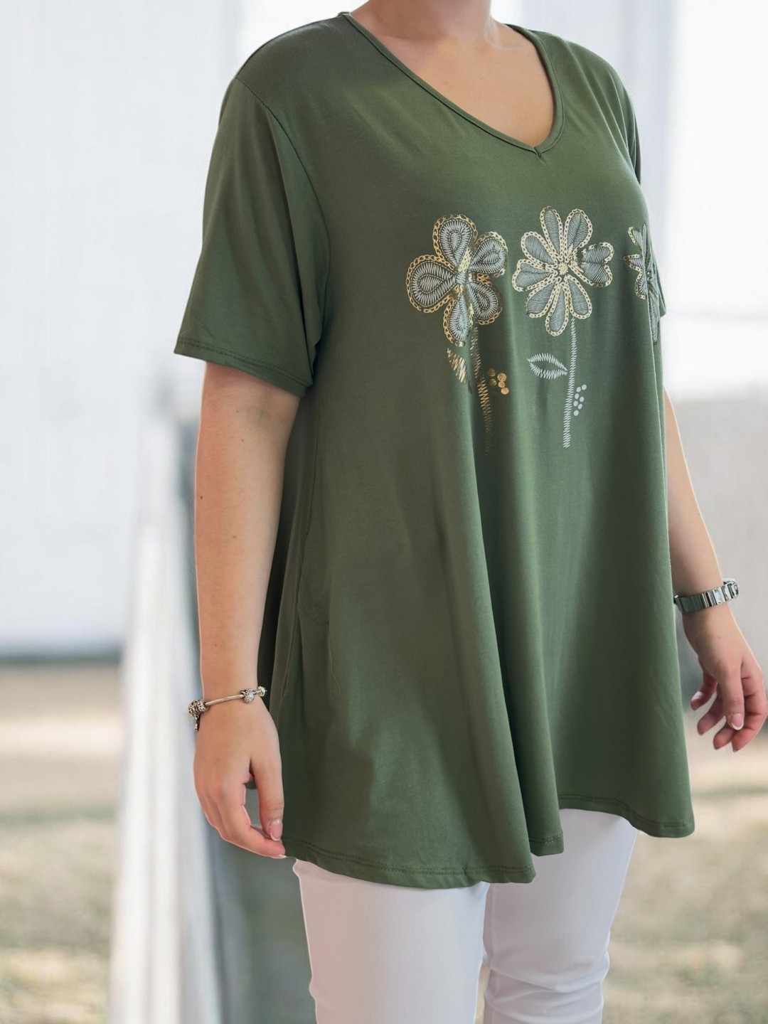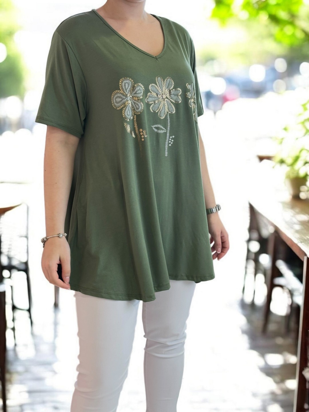Fashion μπλούζα με V και τρισδιάστατα λουλούδια