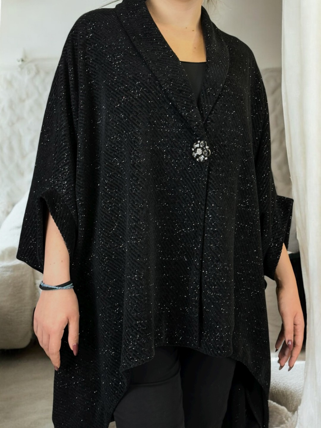 Fashion κάπα με λαμπερή καρφίτσα και χρυσή κλωστή