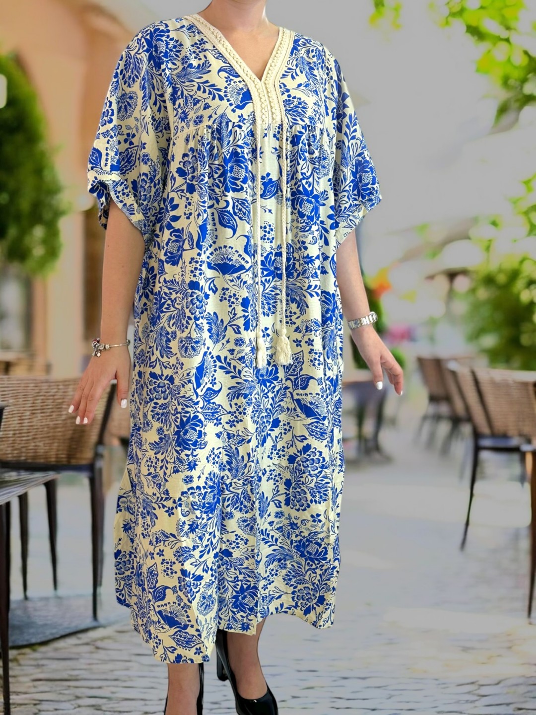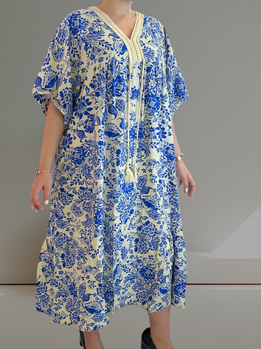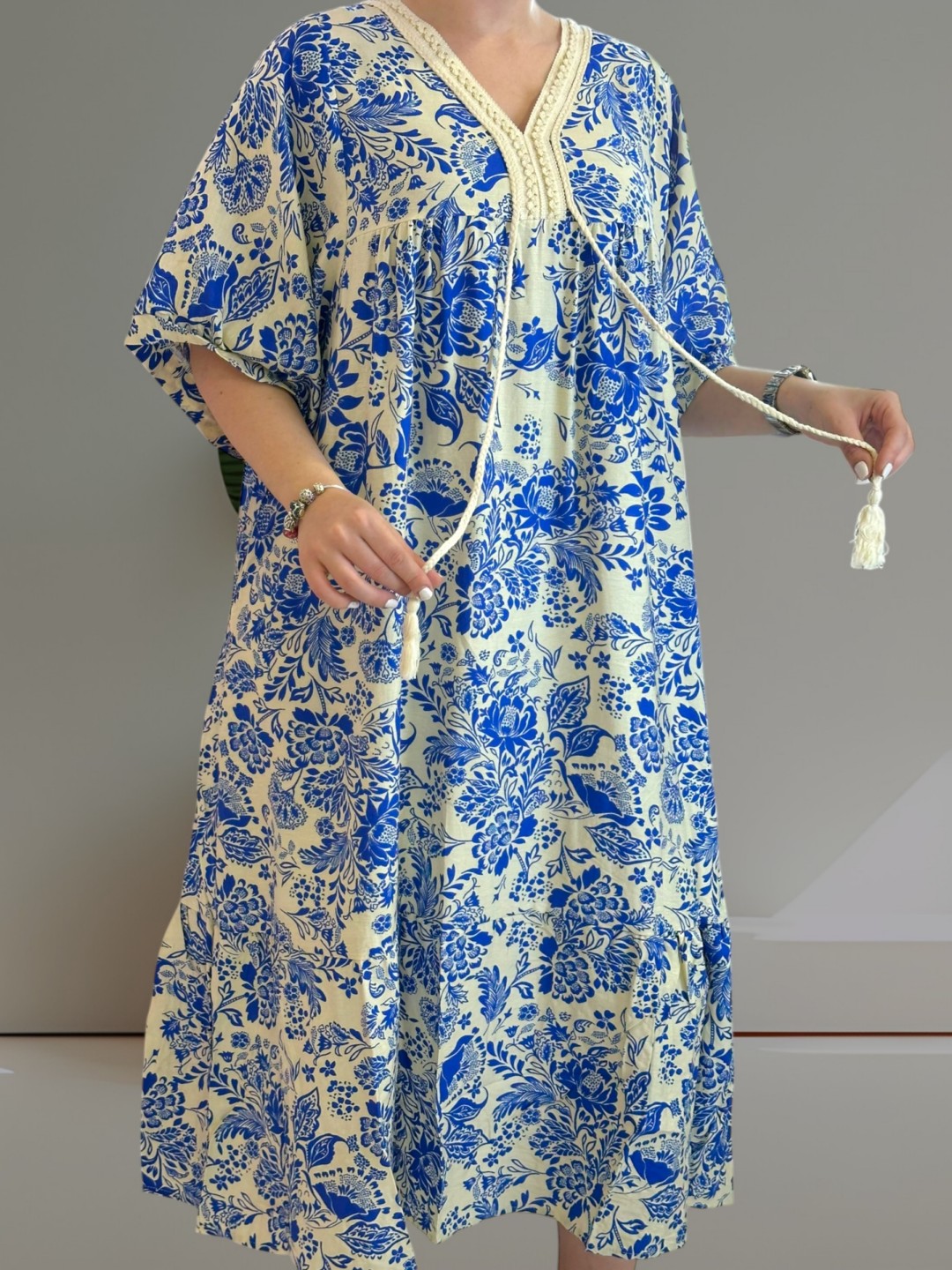 Αέρινο μάξι φόρεμα με φουντίτσες