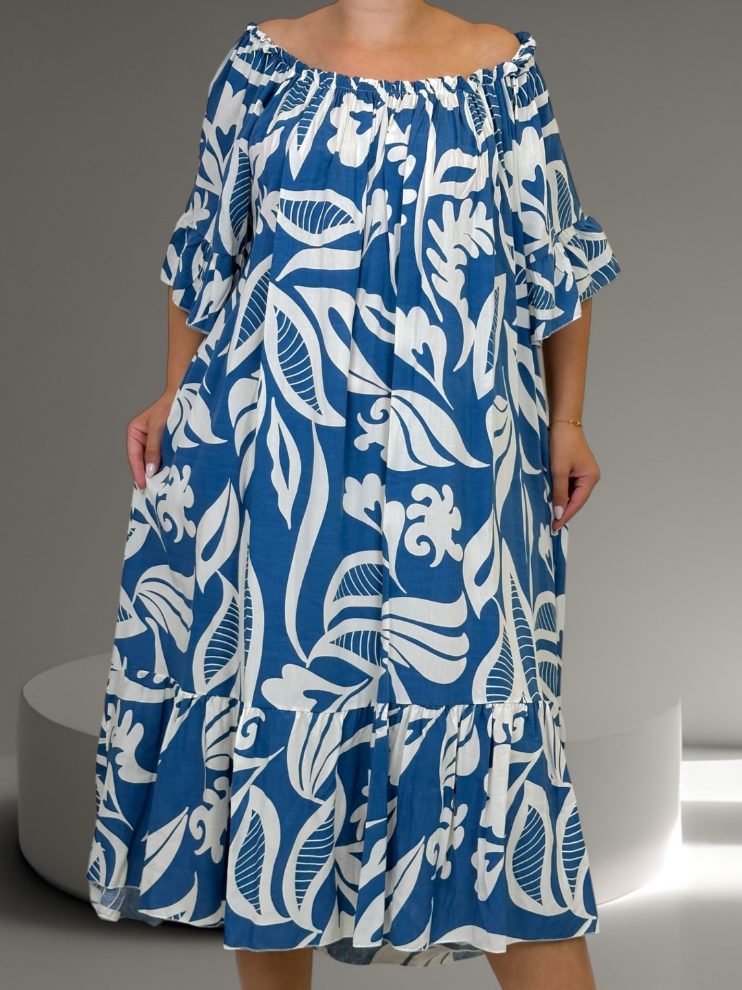 Αναδείξτε την ιδιαίτερη ομορφιά σας με αυτό το εύκολο στο φόρεμα βισκόζης plus size. Με μοναδικό μοτίβο που αγκαλιάζει διακριτικά τις καμπύλες σας και one size που ταιριάζει σε όλους, θα σας κάνει να αισθάνεστε άνετα και κομψά ταυτόχρονα.