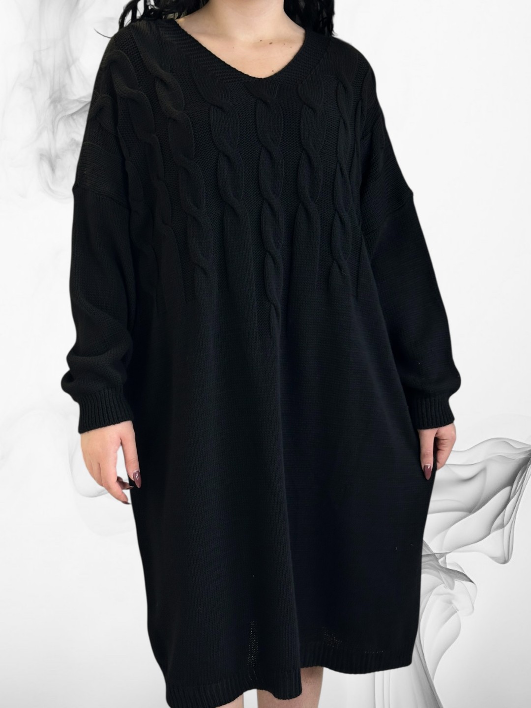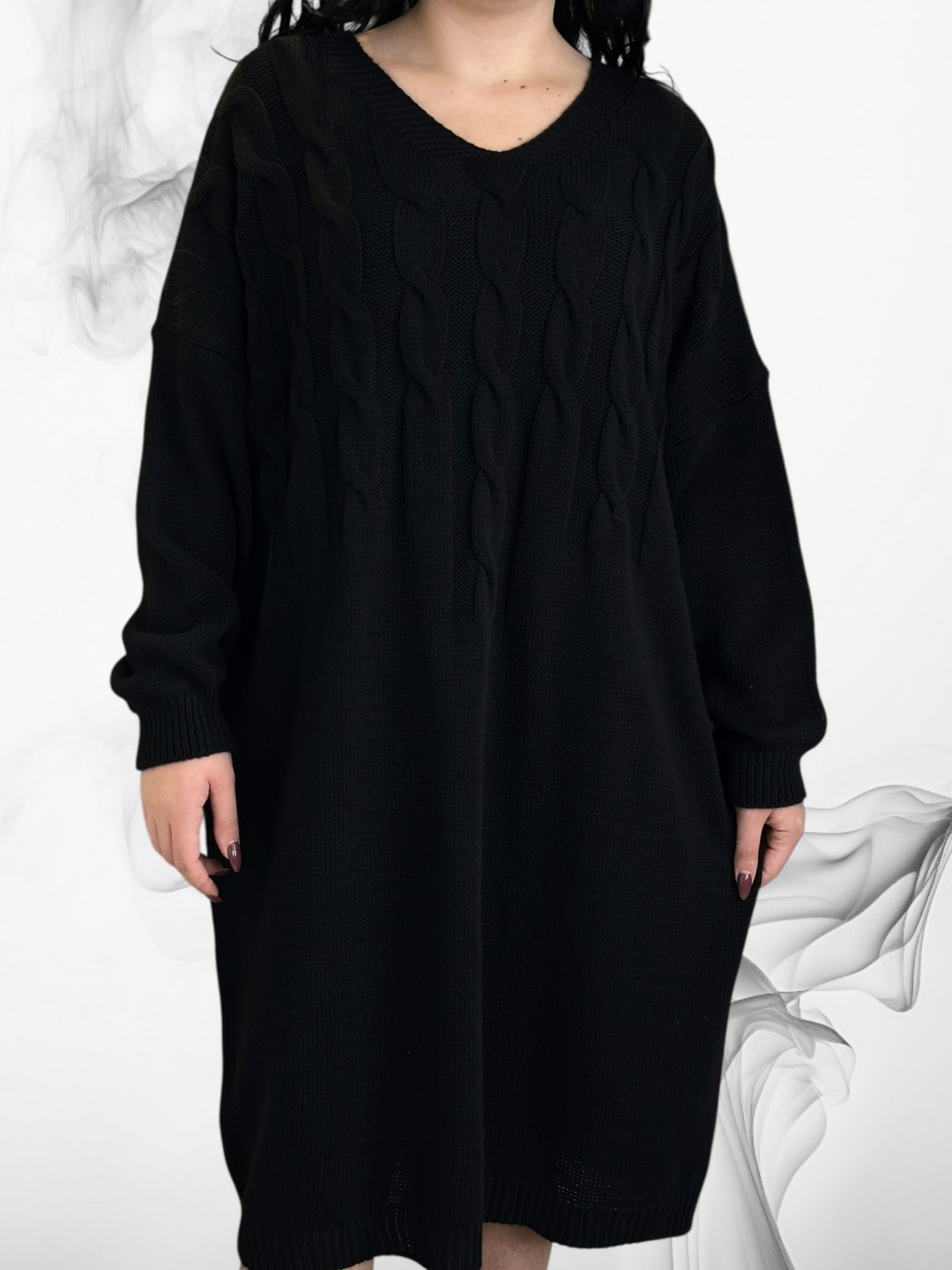 Απογείωσε την προσωπικότητά σου με αυτό το plus size φόρεμα! Σχεδιασμένο για να τραβά τα βλέμματα, το εντυπωσιακό πάνω μέρος με πλέξη δίνει μία σοφιστικέ εικόνα. One size, χαρίζει άνετη εφαρμογή.