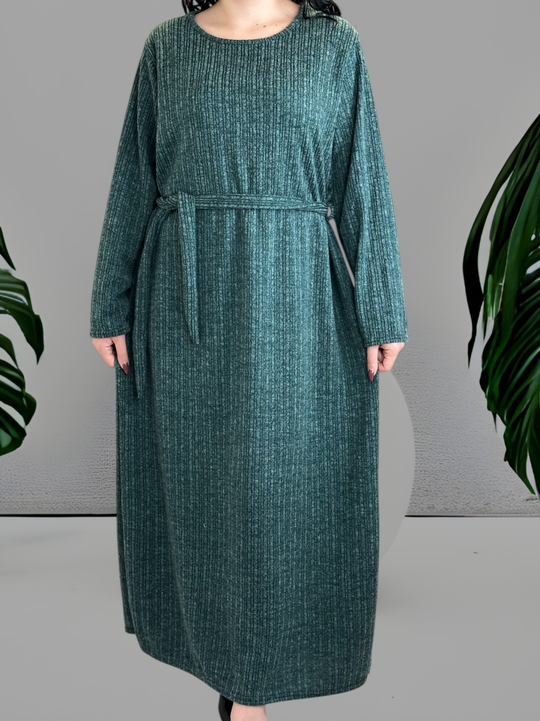 Φόρεμα plus size σε φίνα πλέξη, αναδεικνύει την θηλυκότητά σας σε κάθε all day εμφάνιση. Σύνθεση από 94% poliester 6% elastan, εξασφαλίζει τέλεια εφαρμογή. Διαθέσιμο σε One size μέγεθος.