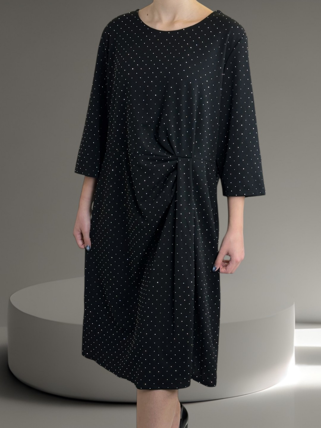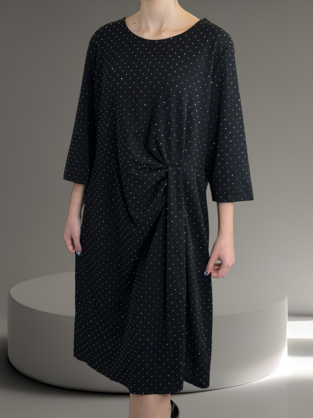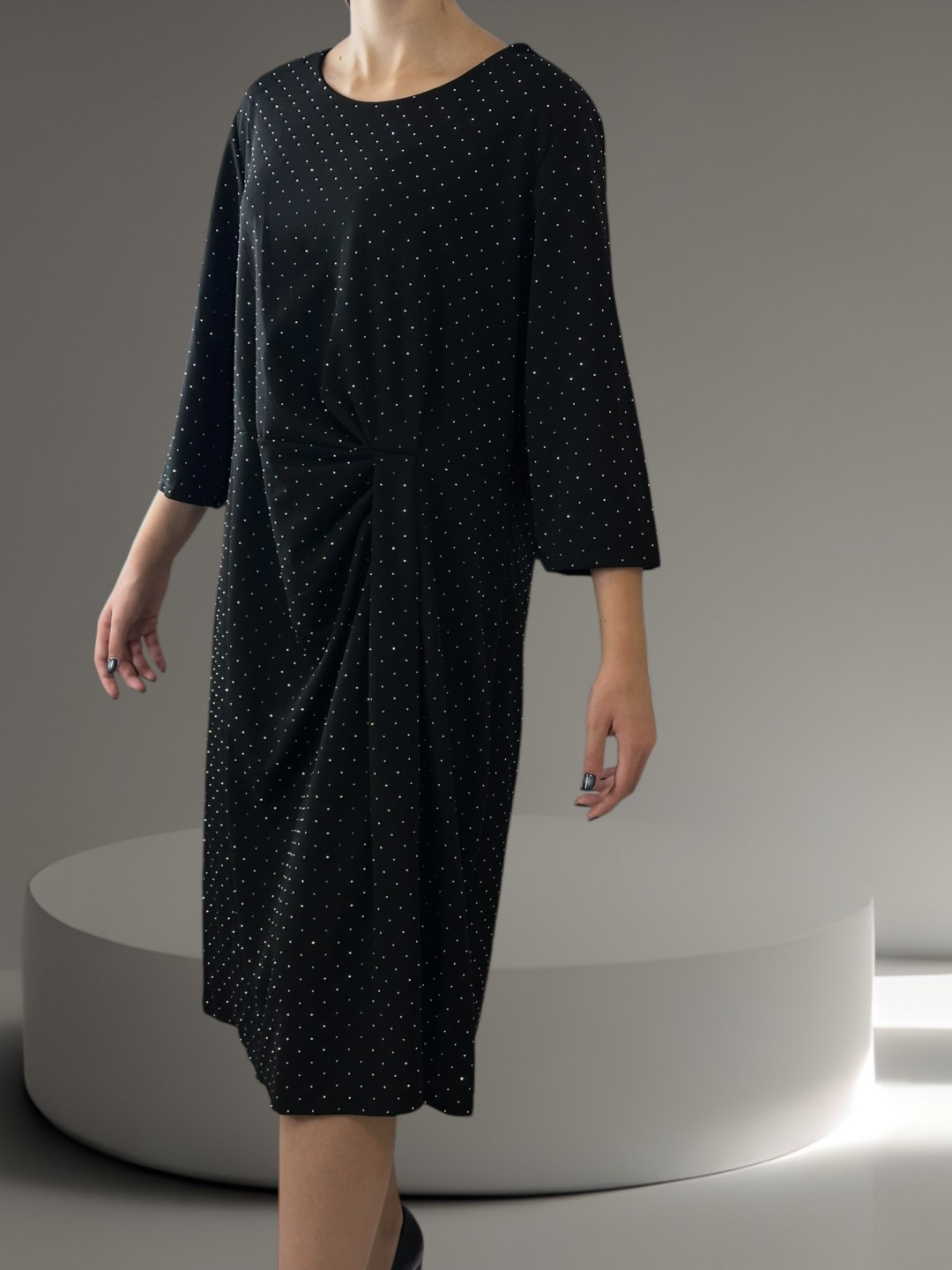 Γιορτινό φόρεμα plus size, πλήρες στρας, δίνει ένα λαμπερό και κομψό αποτέλεσμα. Η διακριτική κομψότητα του σκισίματος αναδεικνύει τη θηλυκότητα σας. Διαθέσιμο σε one size, ιδανικό για κάθε σωματότυπο. Ξεχωρίστε σε κάθε γιορτινή σας εμφάνιση!