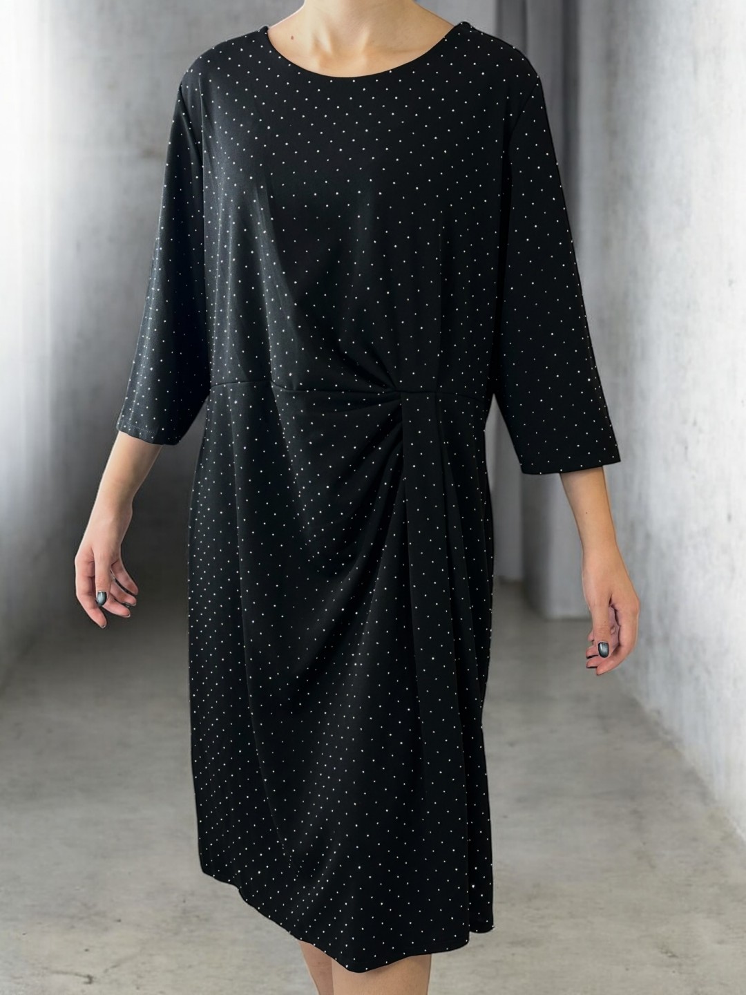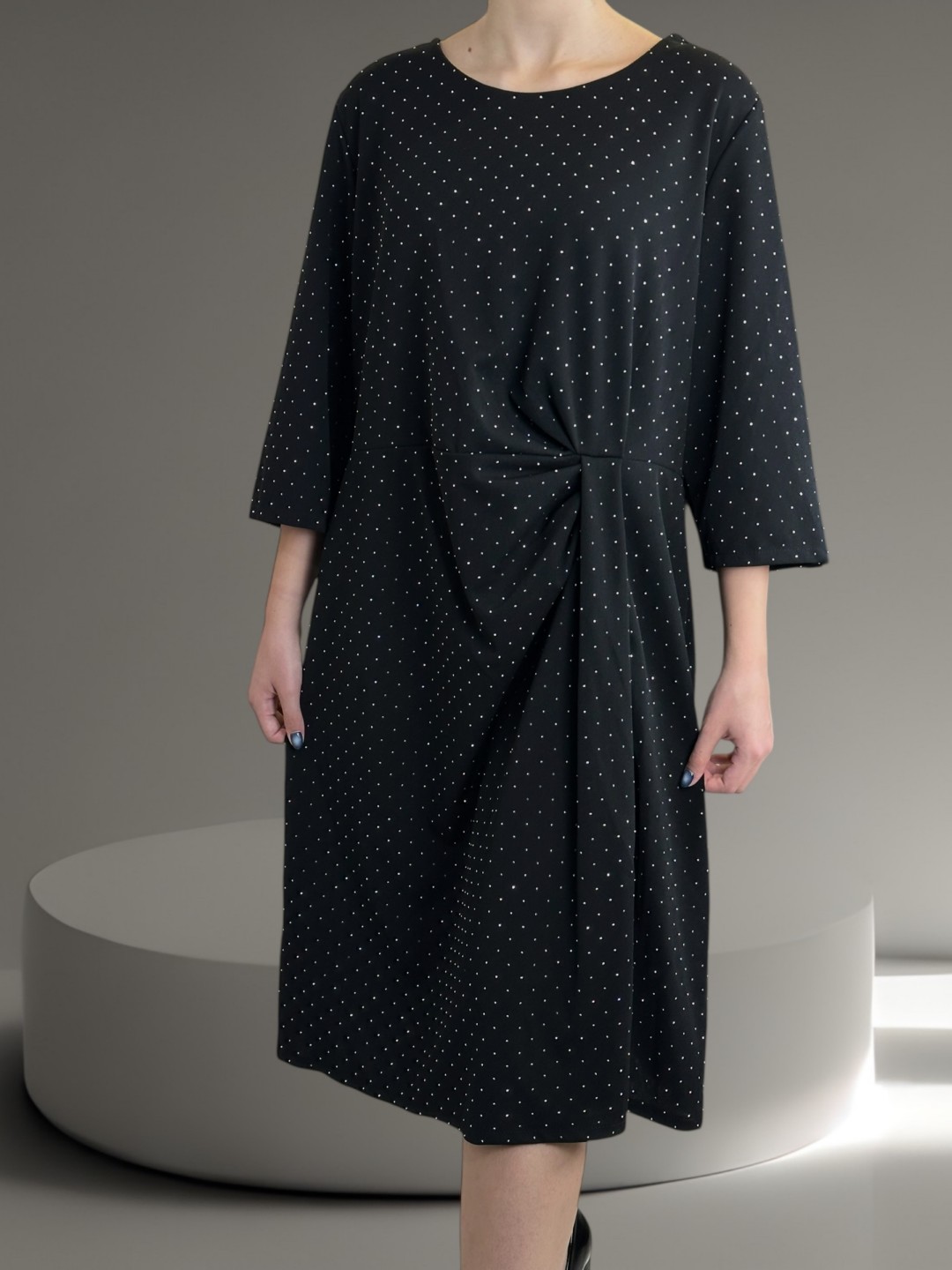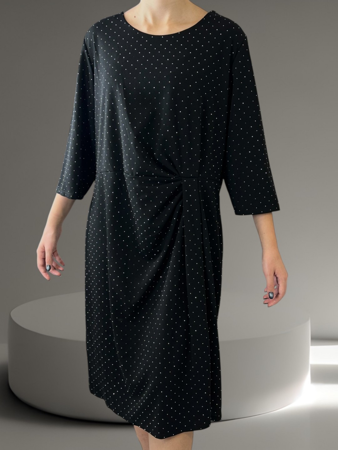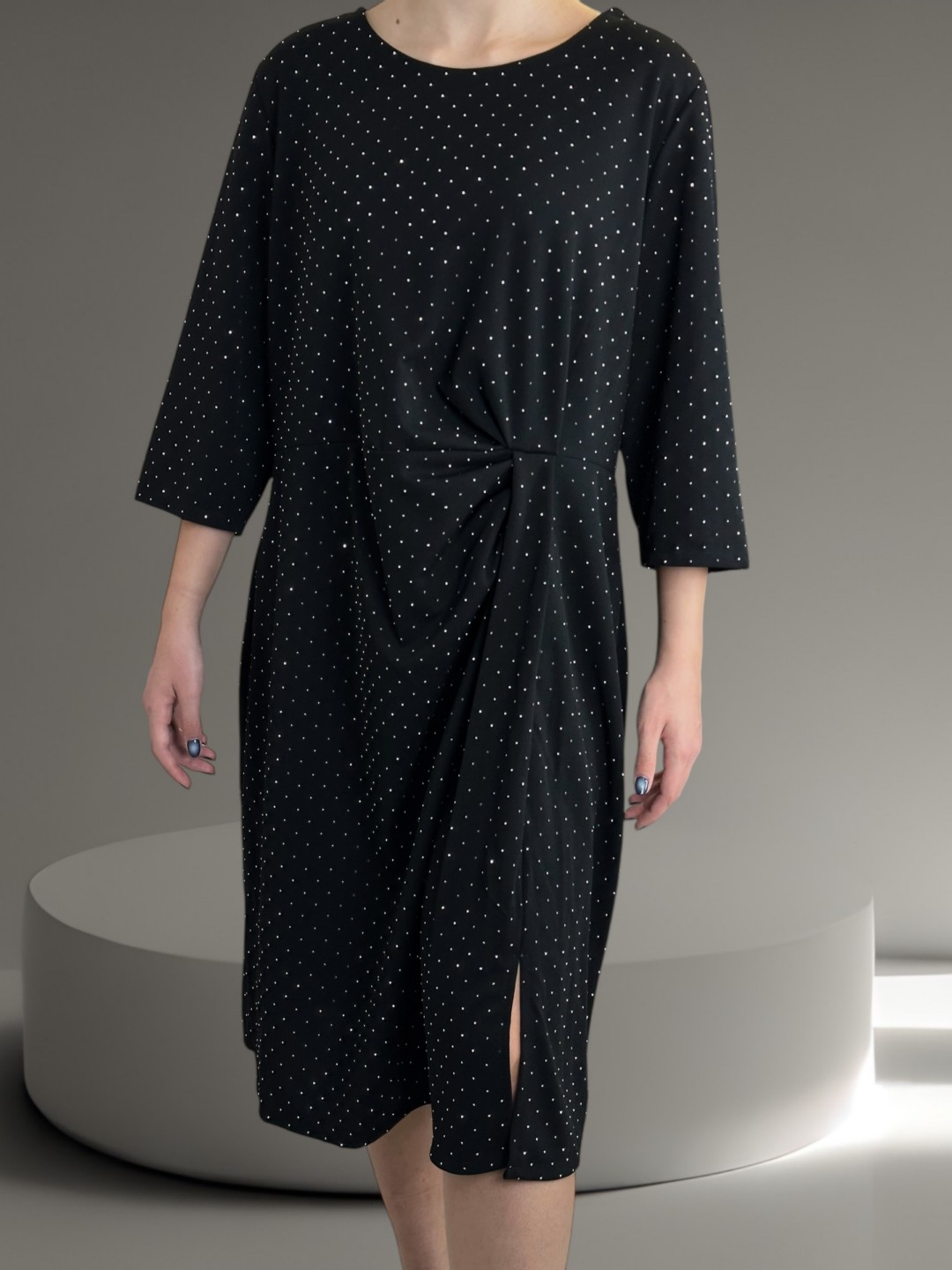Γιορτινό φόρεμα plus size, πλήρες στρας, δίνει ένα λαμπερό και κομψό αποτέλεσμα. Η διακριτική κομψότητα του σκισίματος αναδεικνύει τη θηλυκότητα σας. Διαθέσιμο σε one size, ιδανικό για κάθε σωματότυπο. Ξεχωρίστε σε κάθε γιορτινή σας εμφάνιση!