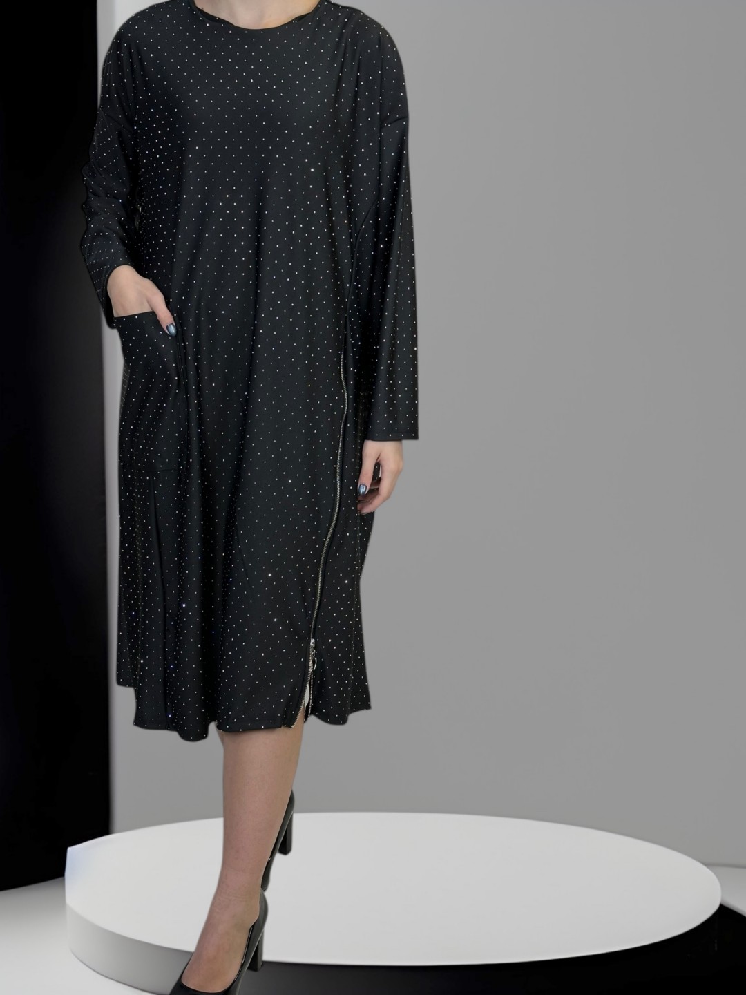 Glam Φόρεμα με Λάμψη Στρας και Μοντέρνα Τσέπη