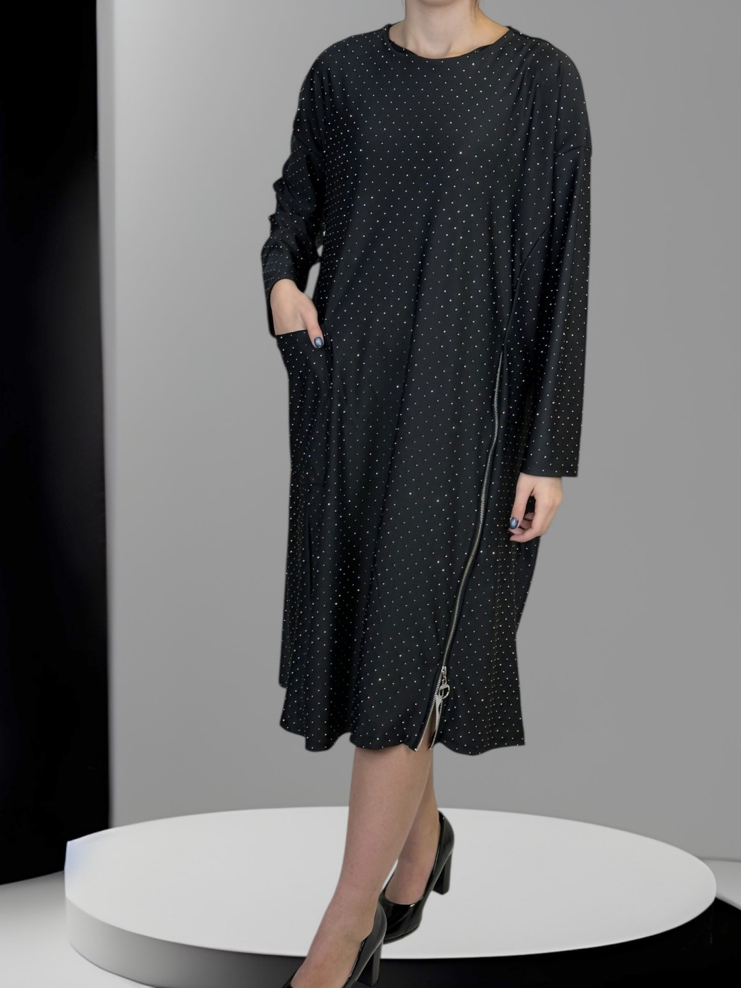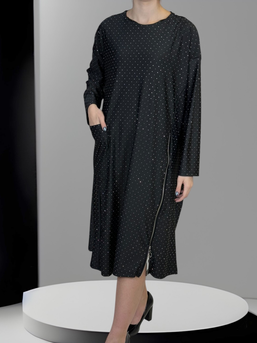 Glam Φόρεμα με Λάμψη Στρας και Μοντέρνα Τσέπη