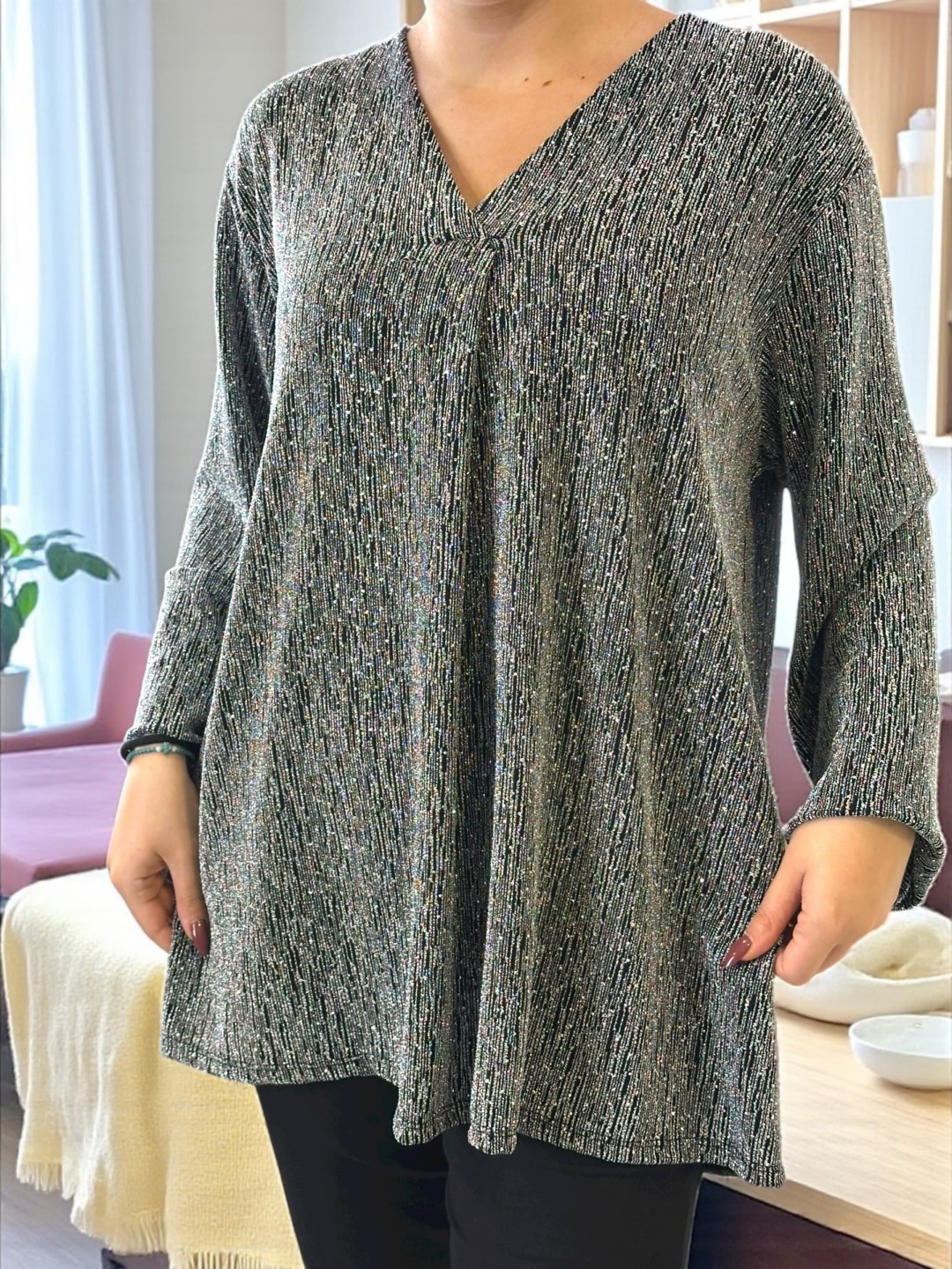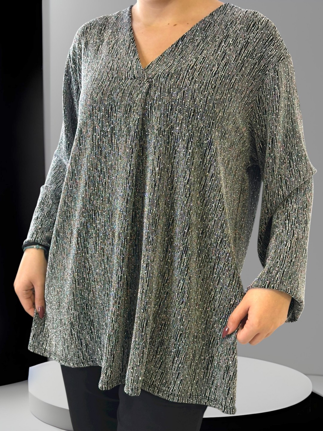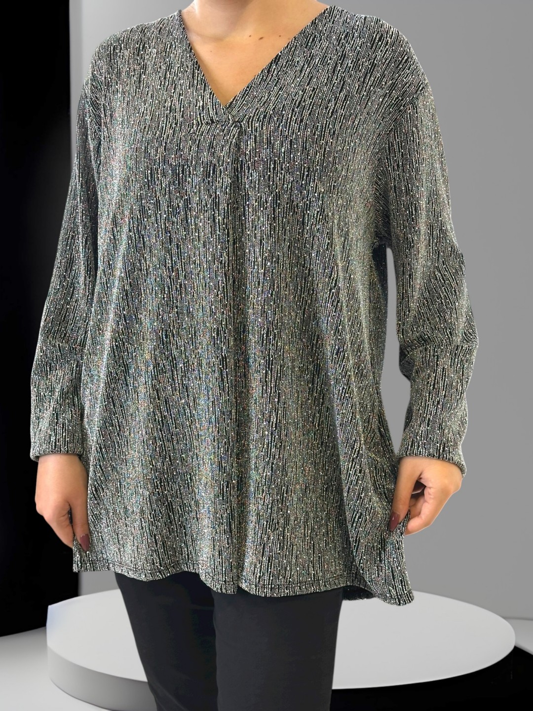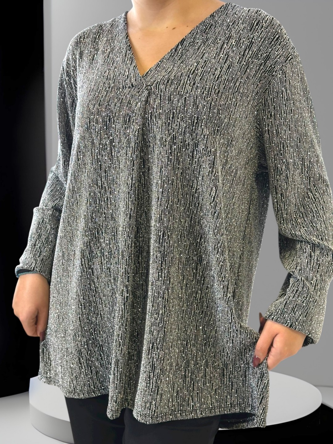 Glam λουρεξ μπλούζα με ντεκολτέ V και στρας