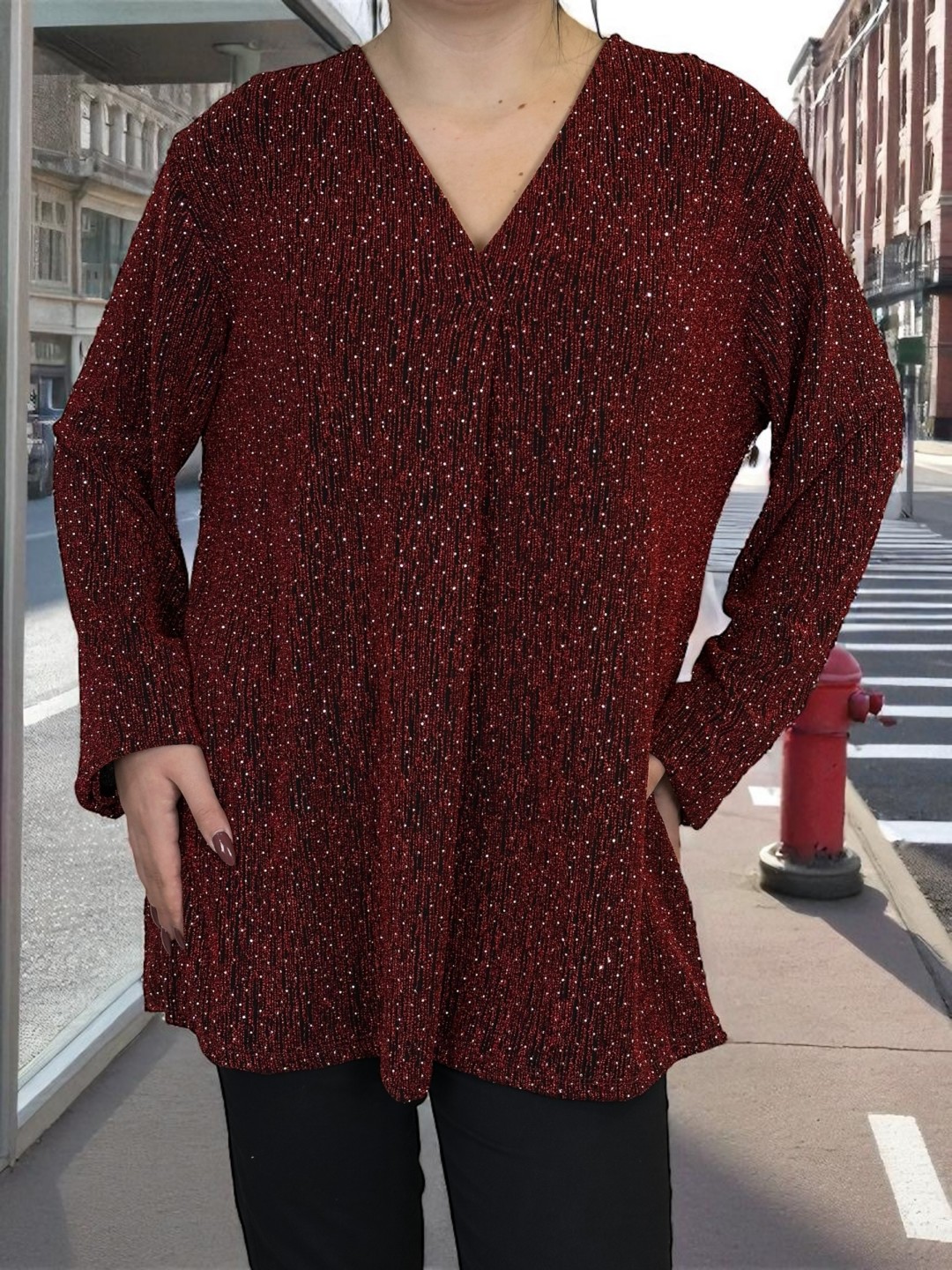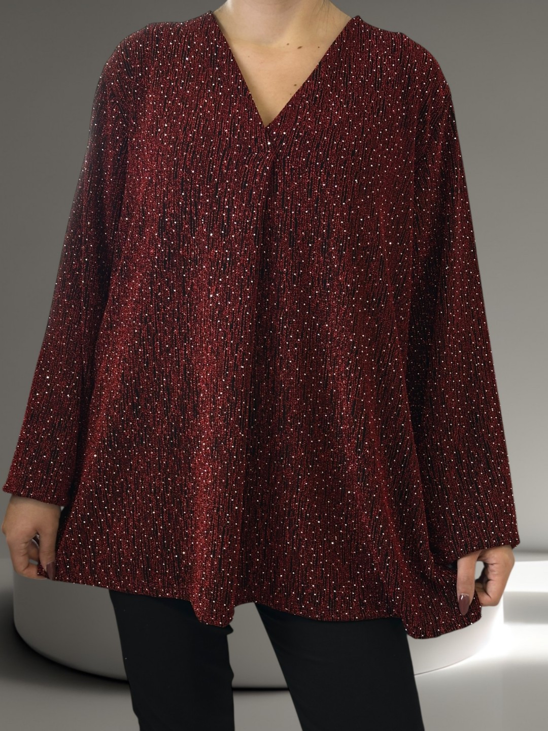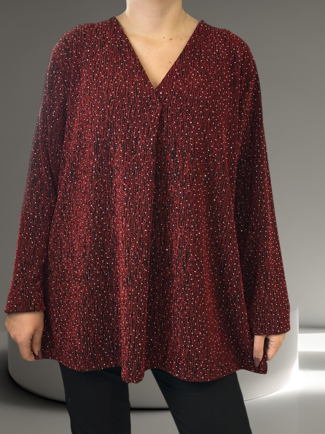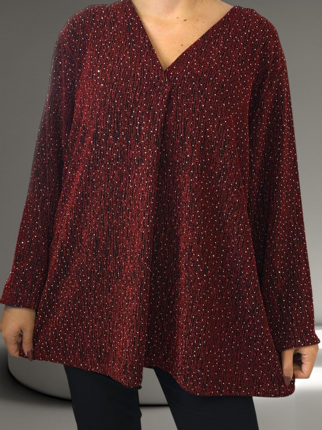 Glam λουρεξ μπλούζα με ντεκολτέ V και στρας