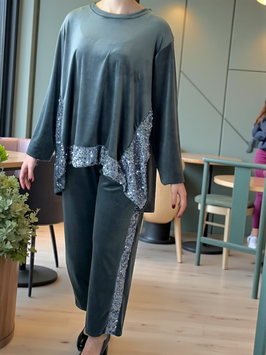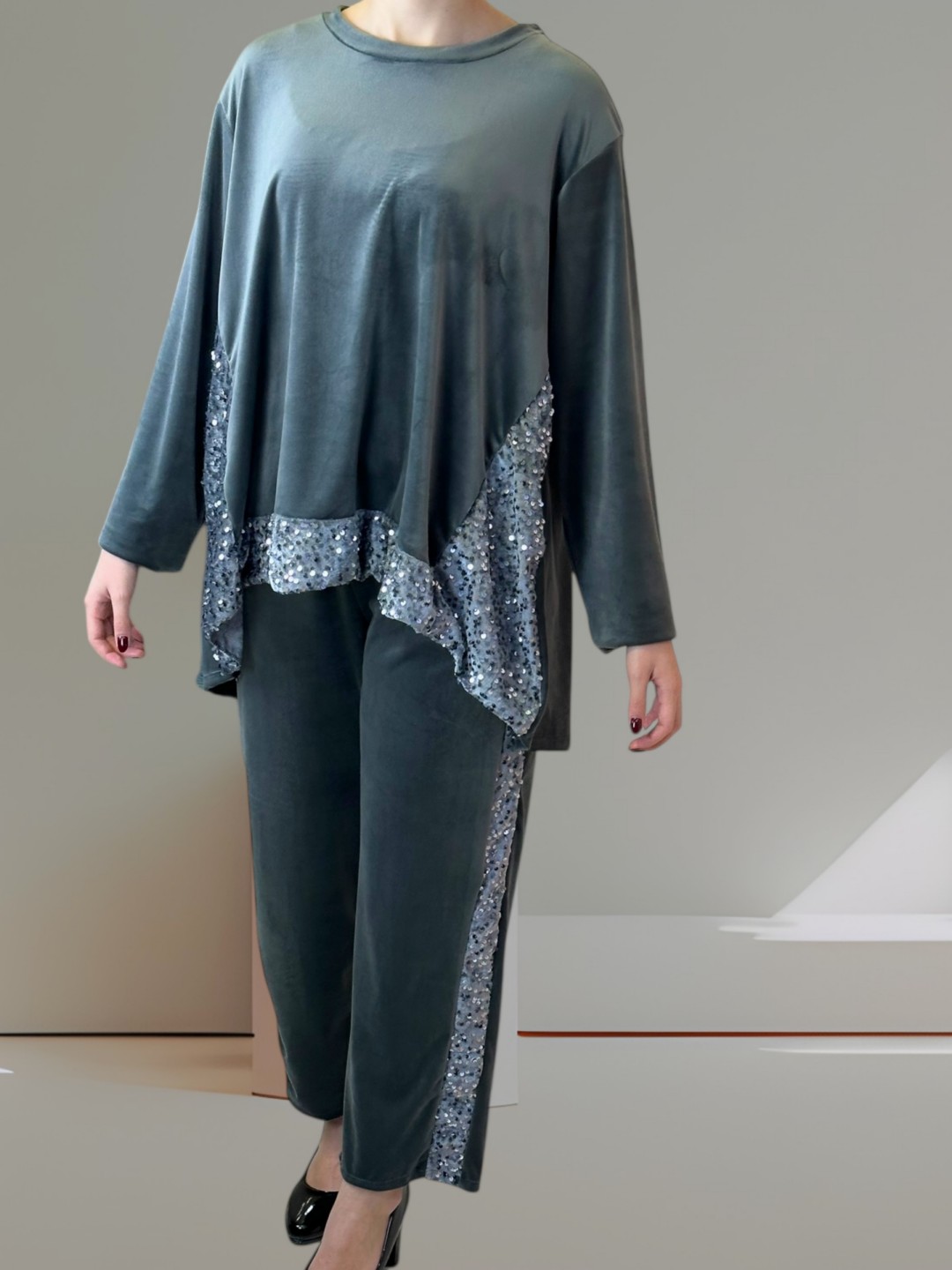 Glam Βελούδινο Σετ με Λάμψη Παγιέτας