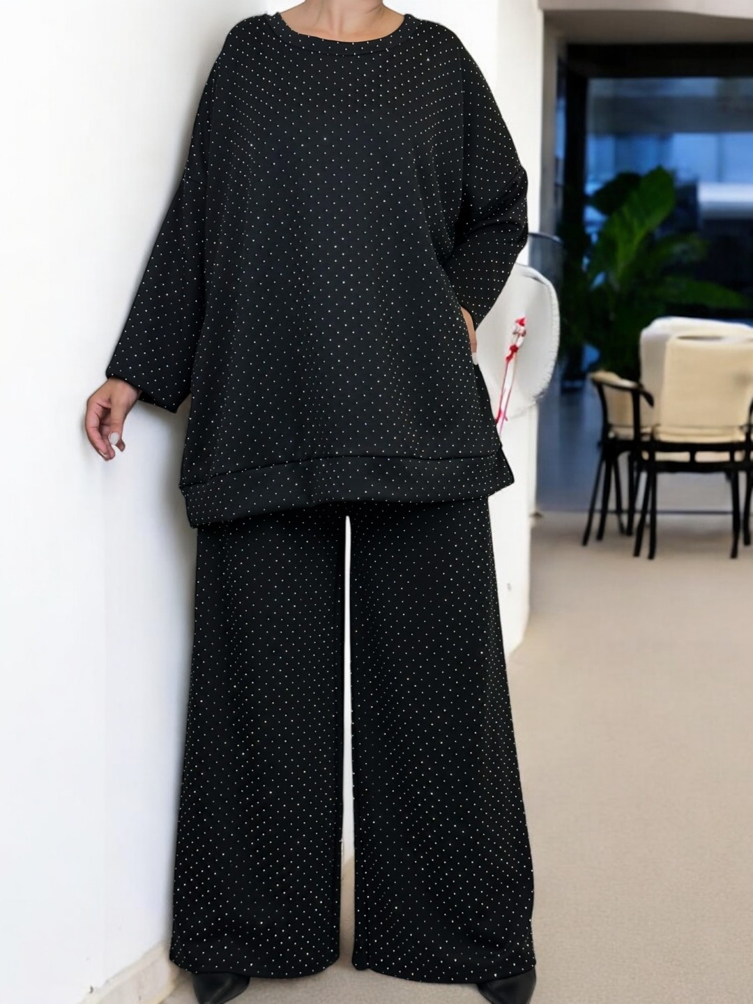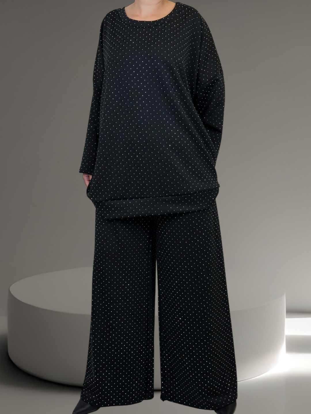 Αναδείξτε τη λάμψη σας με το Glamorous Σετ με Στρας plus size. Η κομψότητα συναντά την άνεση σε ένα σετ που ταιριάζει σε όλα τα μεγέθη (One size). Ιδανικό για κάθε ευκαιρία, προσφέρει εκλεπτυσμένη γοητεία και αψεγάδιαστη εφαρμογή.