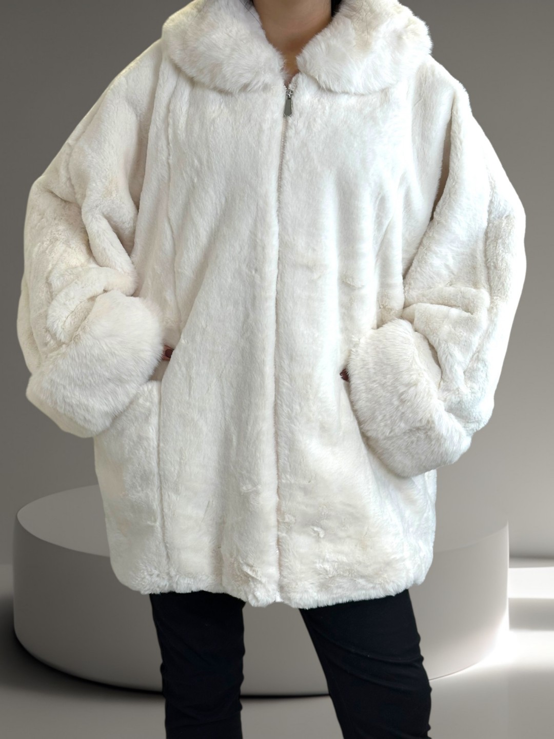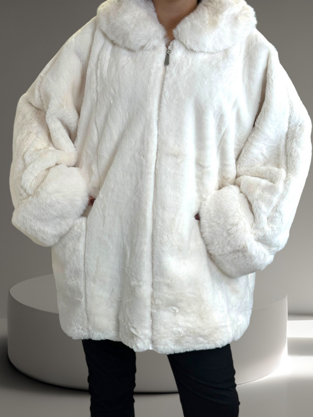 Αποδείξτε πως η άνεση συναντά το πολυτέλεια με αυτήν την εντυπωσιακή γυναικεία γούνα plus size. Διαθέτει φερμουάρ για εύκολη χρήση, κατασκευασμένη από 100% poliester, προσφέρει απαλότητα & luxury look. Διατίθεται σε One size.
