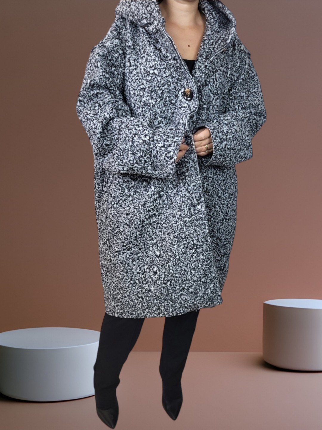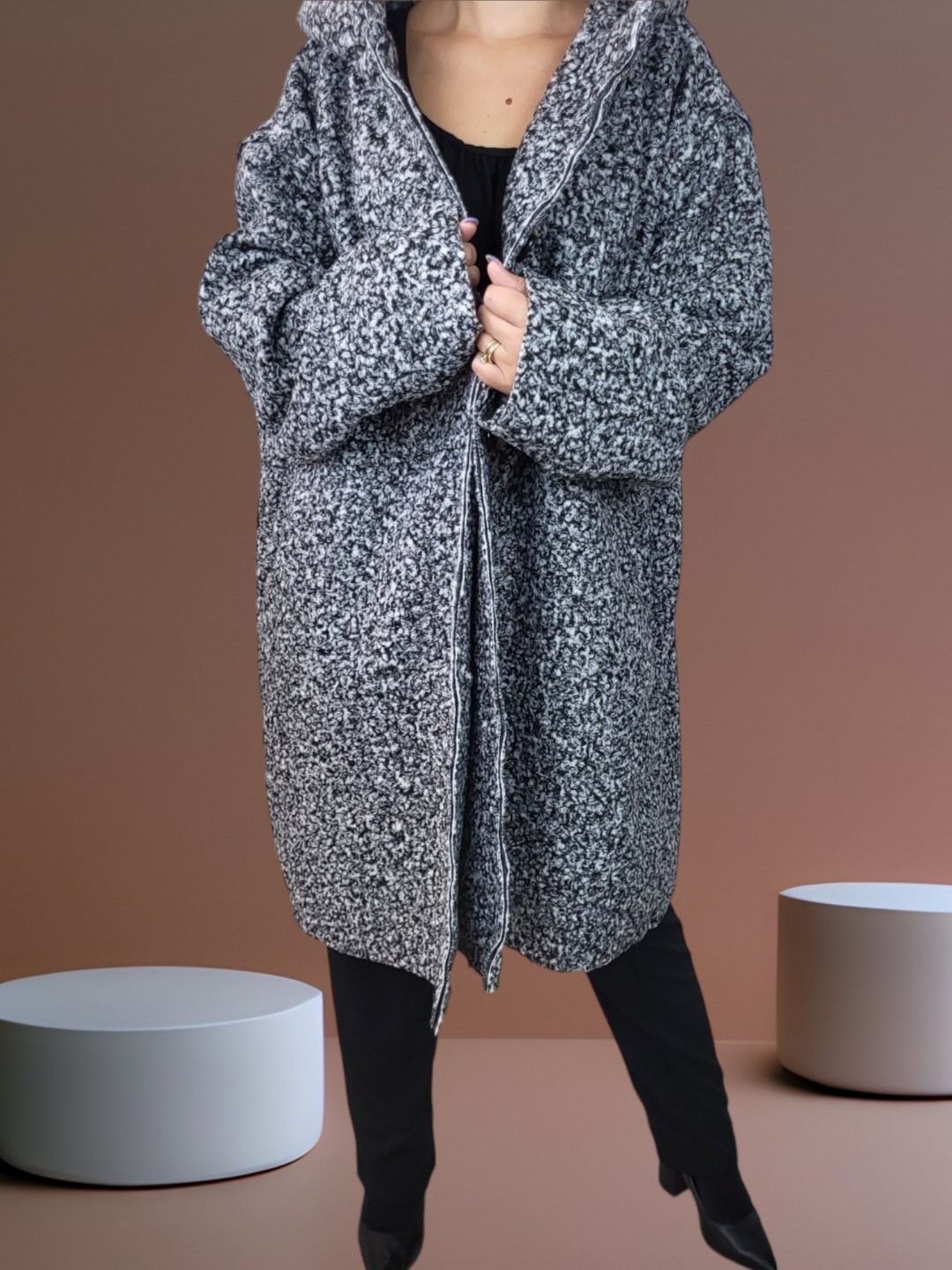 Γυναικείο παλτό μακρύ χνουδωτό με κουκούλα
