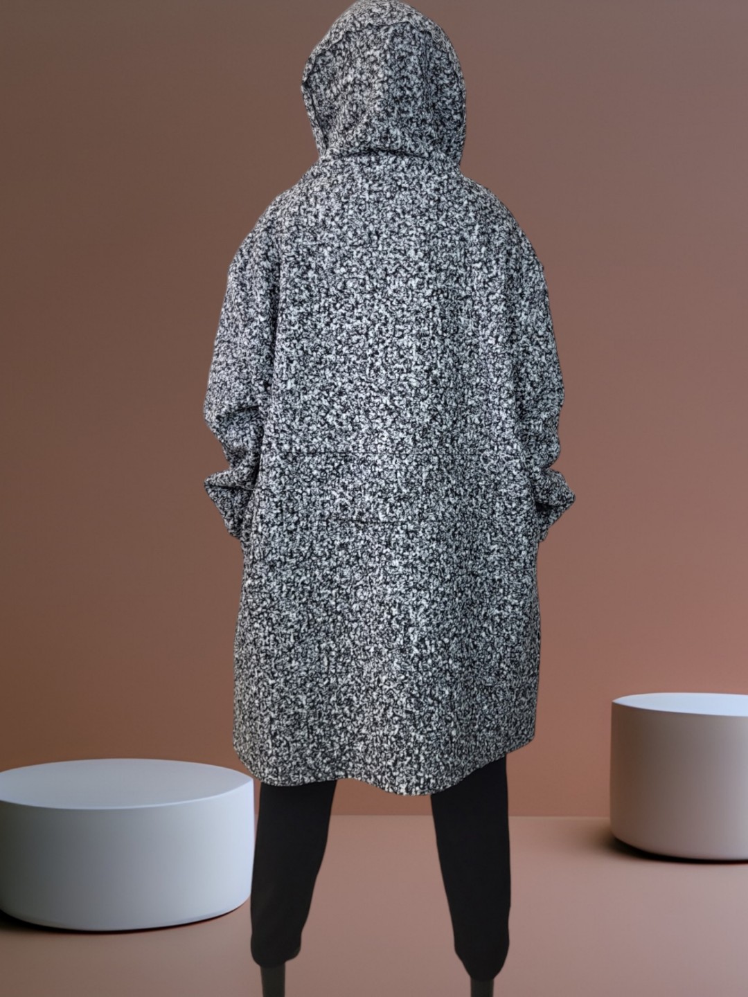 Αποκτήστε αυτό το μακρύ, χνουδωτό γυναικείο παλτό με κουκούλα, ιδανικό για plus size. Από 100% πολυεστέρα, εξασφαλίζει υψηλή αίσθηση άνεσης και ζεστασιάς. Το One size καλύπτει κάθε σωματότυπο.