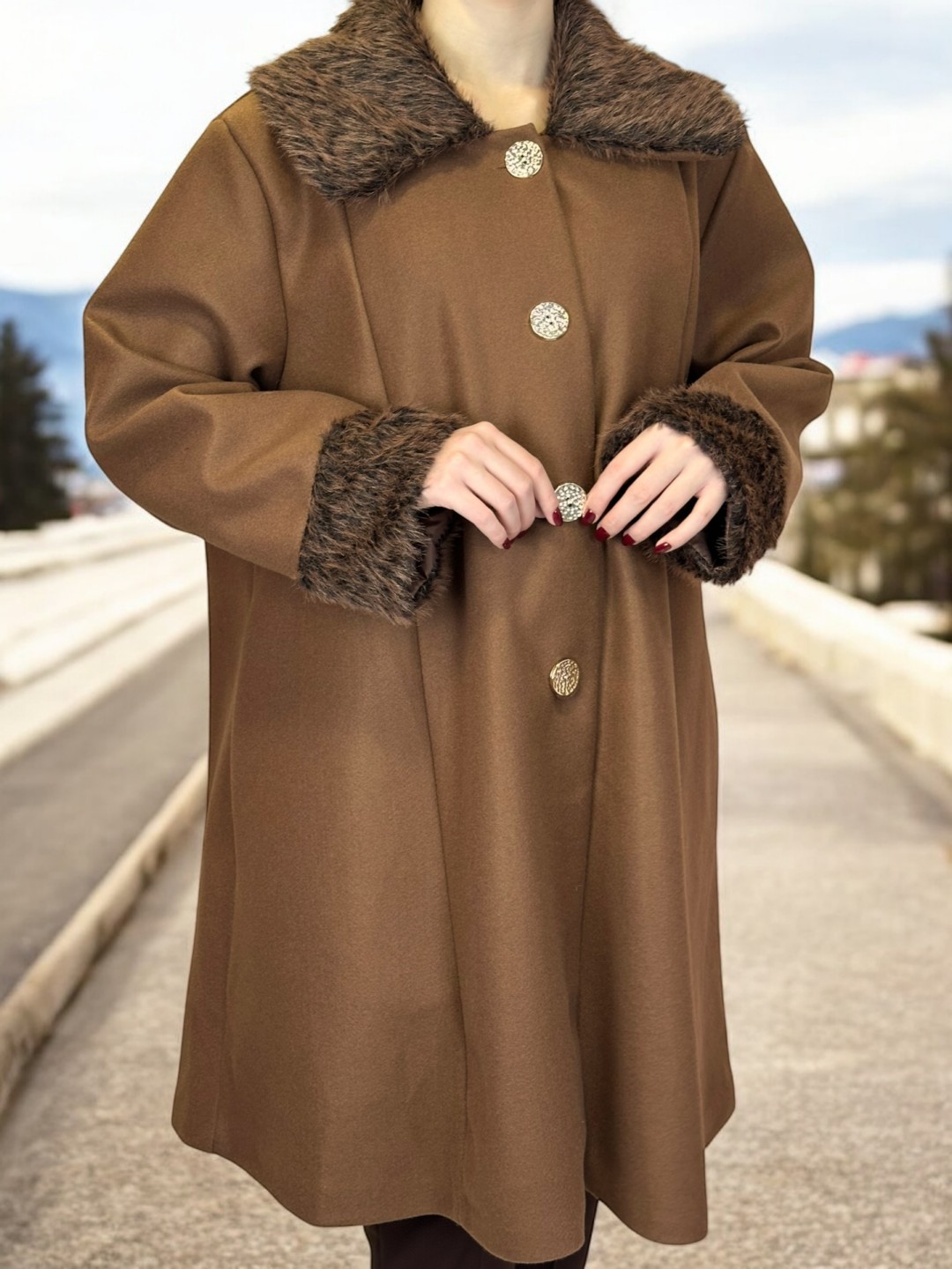 Γυναικείο Παλτό με Γούνινο Γιακά