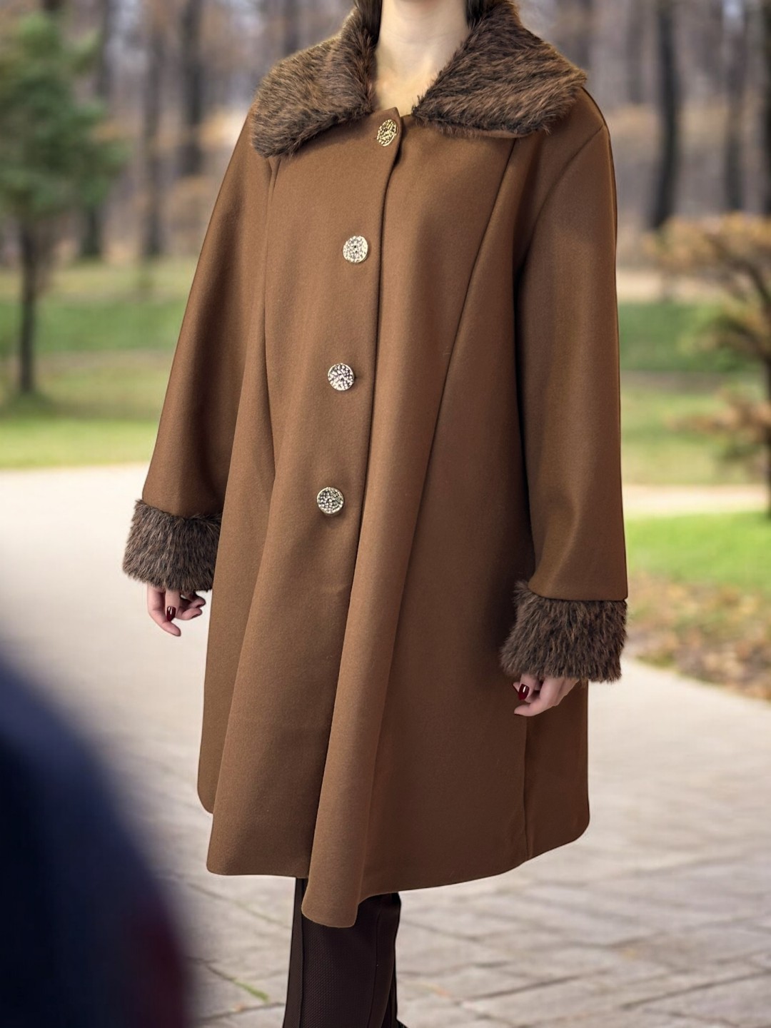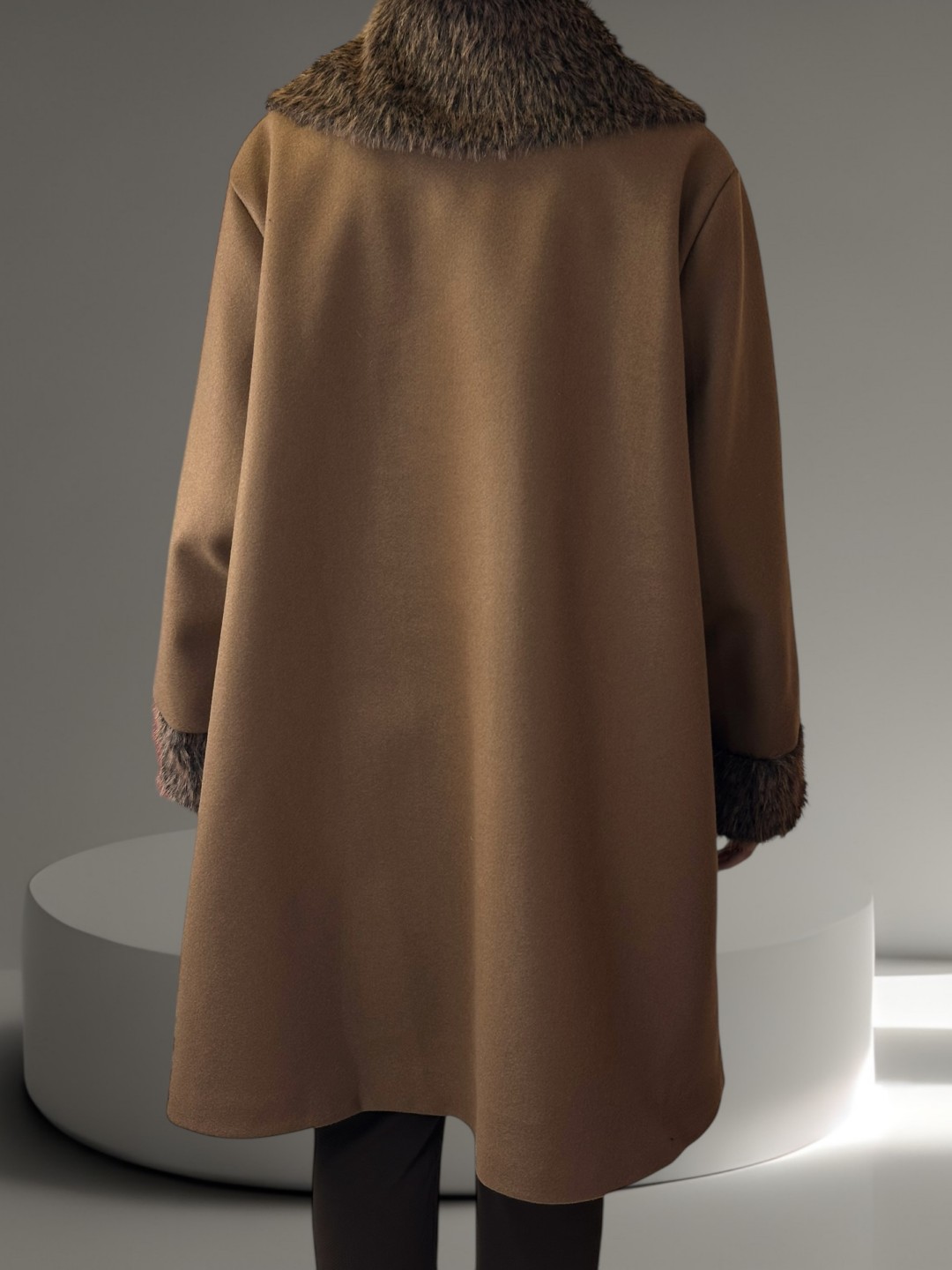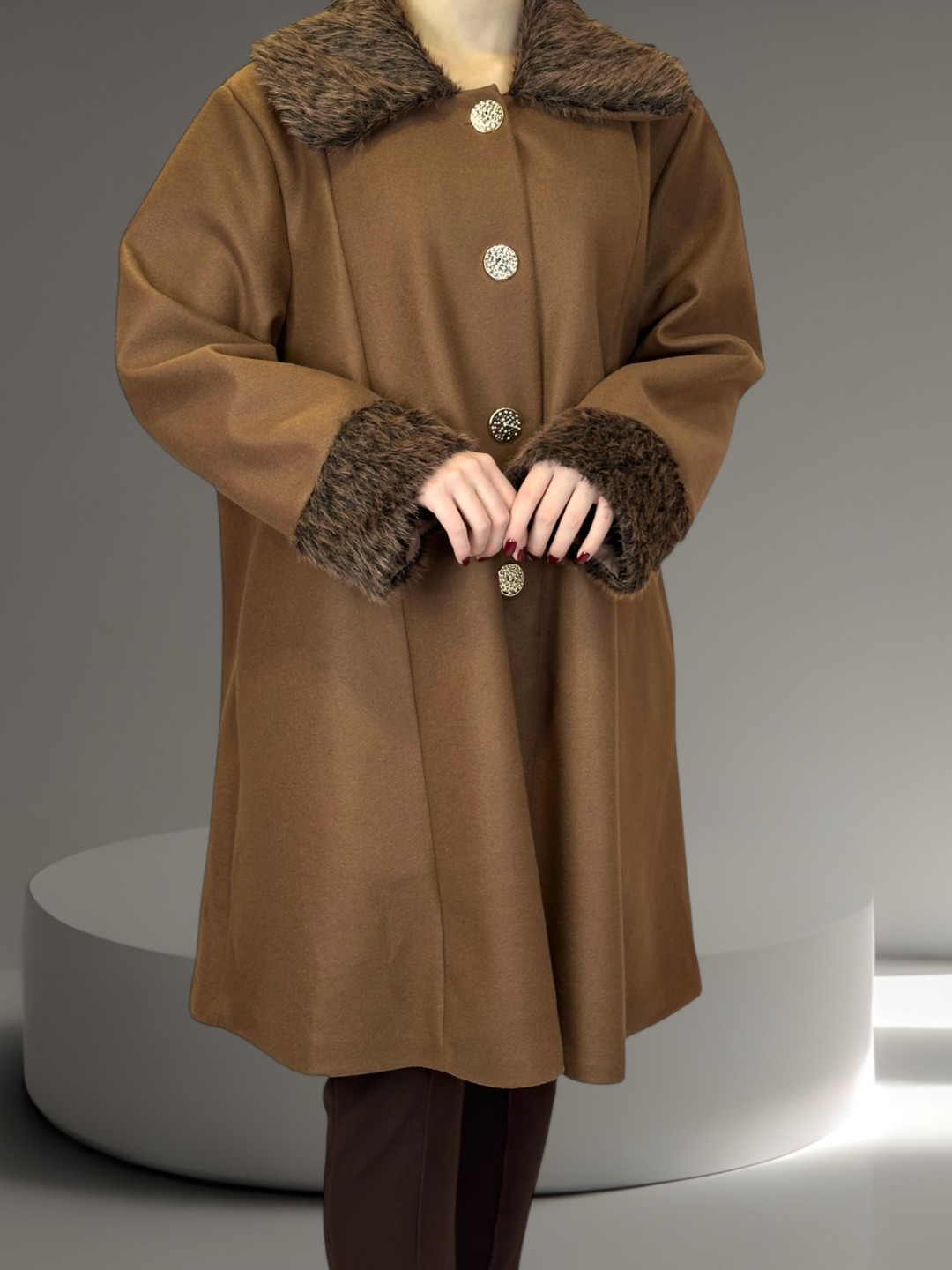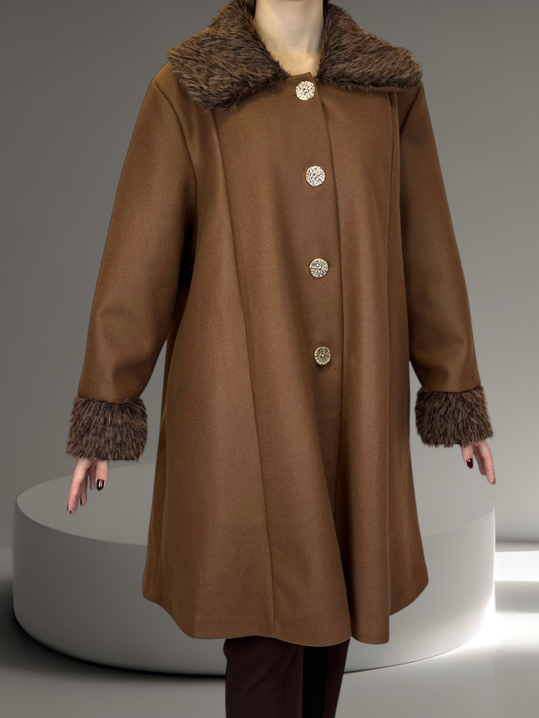 Μεγαλοπρεπές plus size παλτό με γούνινο γιακά! Είναι κατασκευασμένο από 100% πολυεστέρα για μέγιστη ζεστασιά και άνεση. One size, αλλά σχεδιασμένο να ταιριάζει κομψά σε πληθωρικές φιγούρες. Στυλάτο, σίγουρα θα κερδίσει κομπλιμέντα.