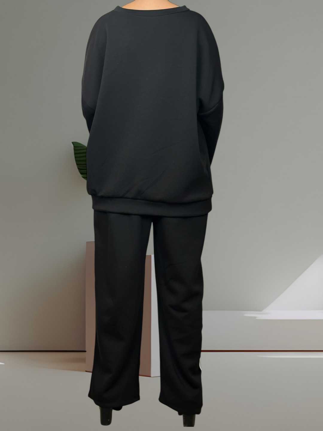 Κάντε δικό σας αυτό το εξαιρετικά στιλάτο σετ δύο τεμαχίων, με αθλητική ρίγα στα πλαϊνά. Ιδανικό για plus size, προσφέρει άνεση και εφαρμογή σε μέγεθος One size. Ξεχώρισε με την κομψότητα που προσφέρει το σύνολο αυτό.