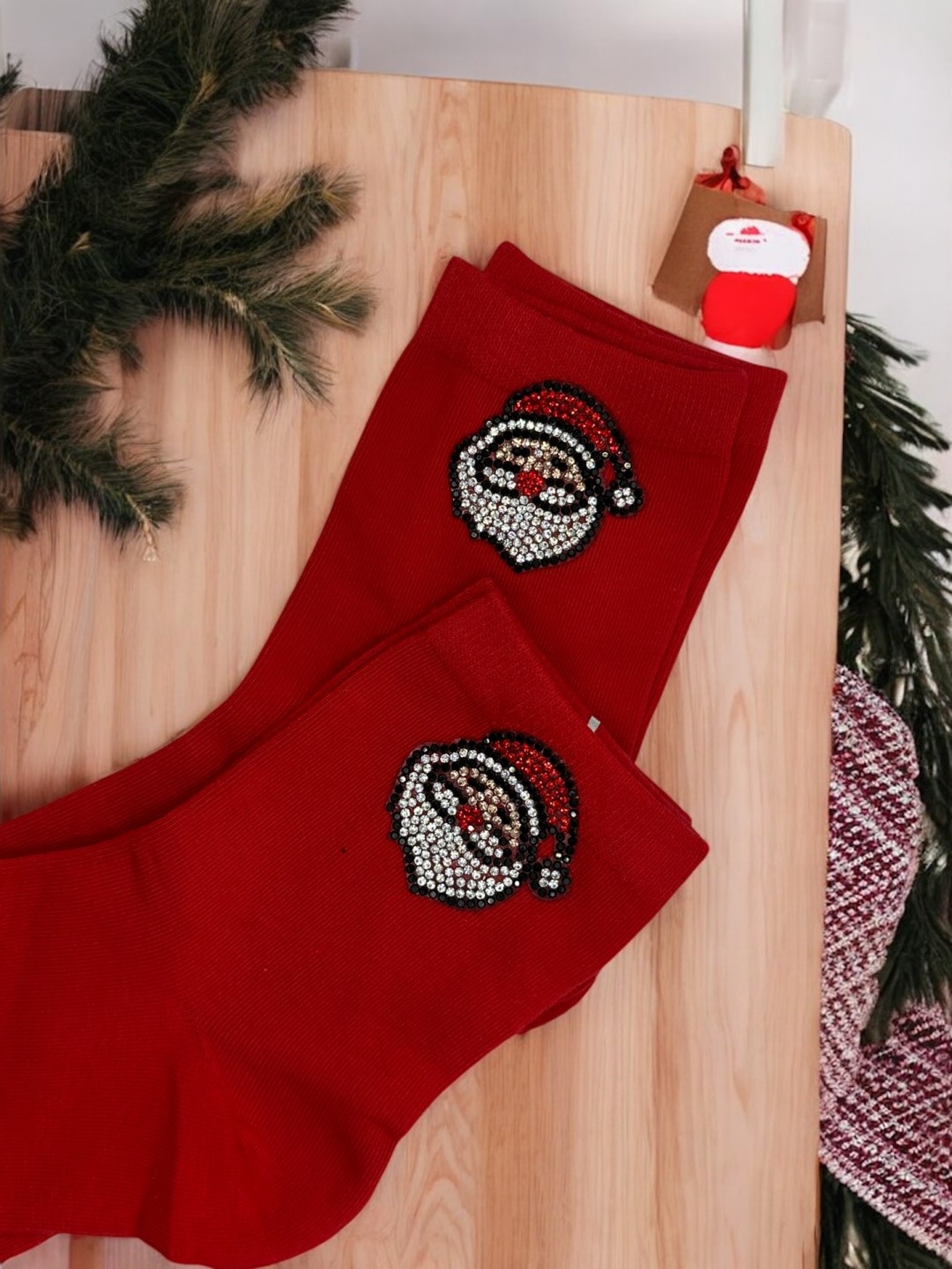 Holiday Κάλτσες με Λαμπερό Santa Σχέδιο