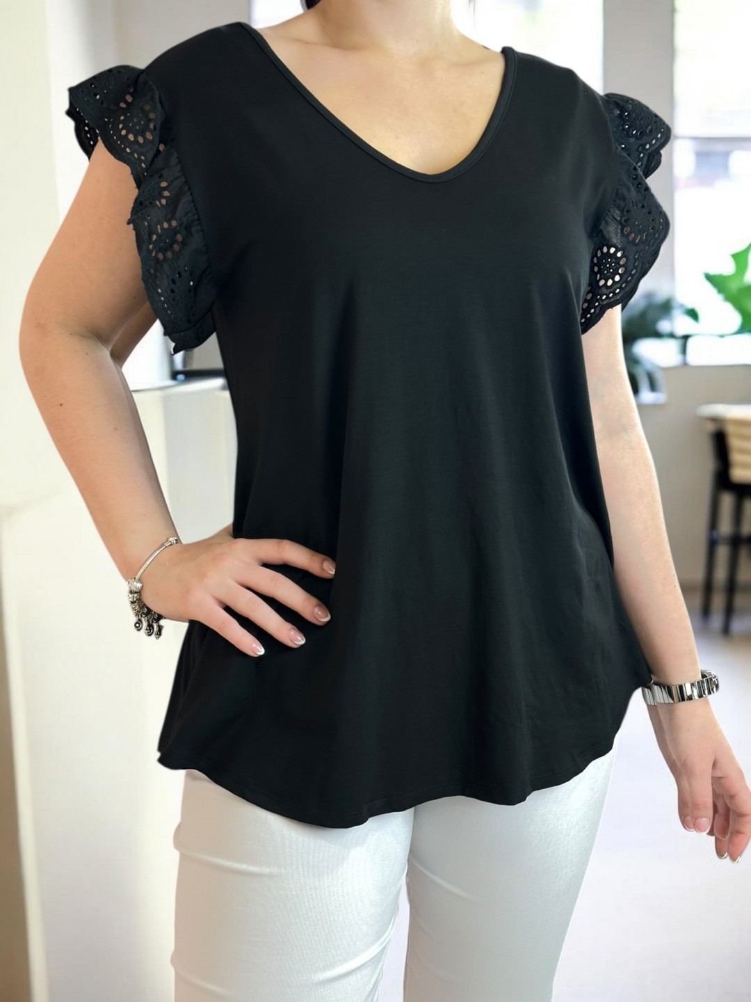 17.00 €Original price was: 17.00 €.9.90 €Η τρέχουσα τιμή είναι: 9.90 €. Chic μπλούζα με pearl λεπτομέρειες στους ώμους