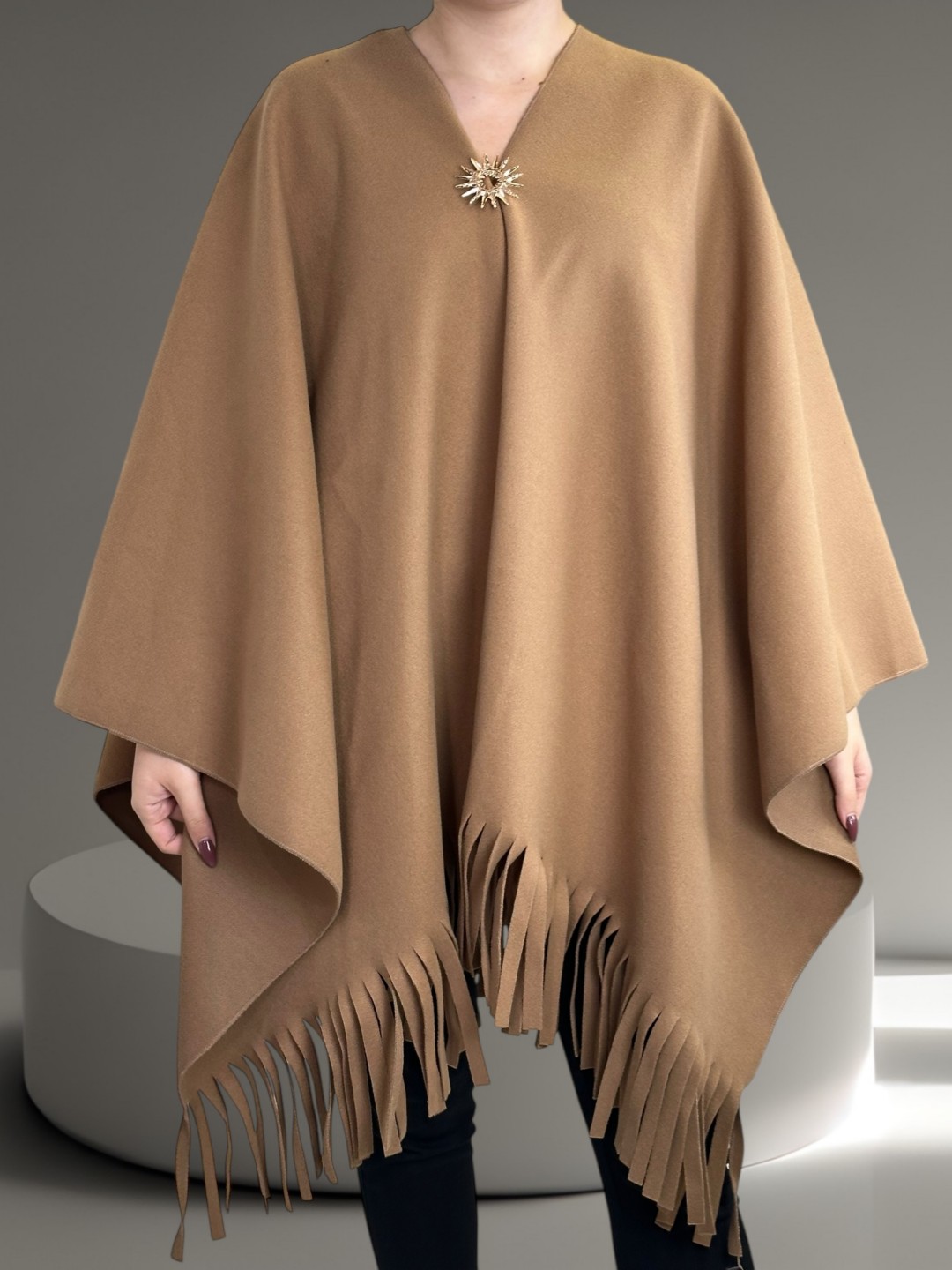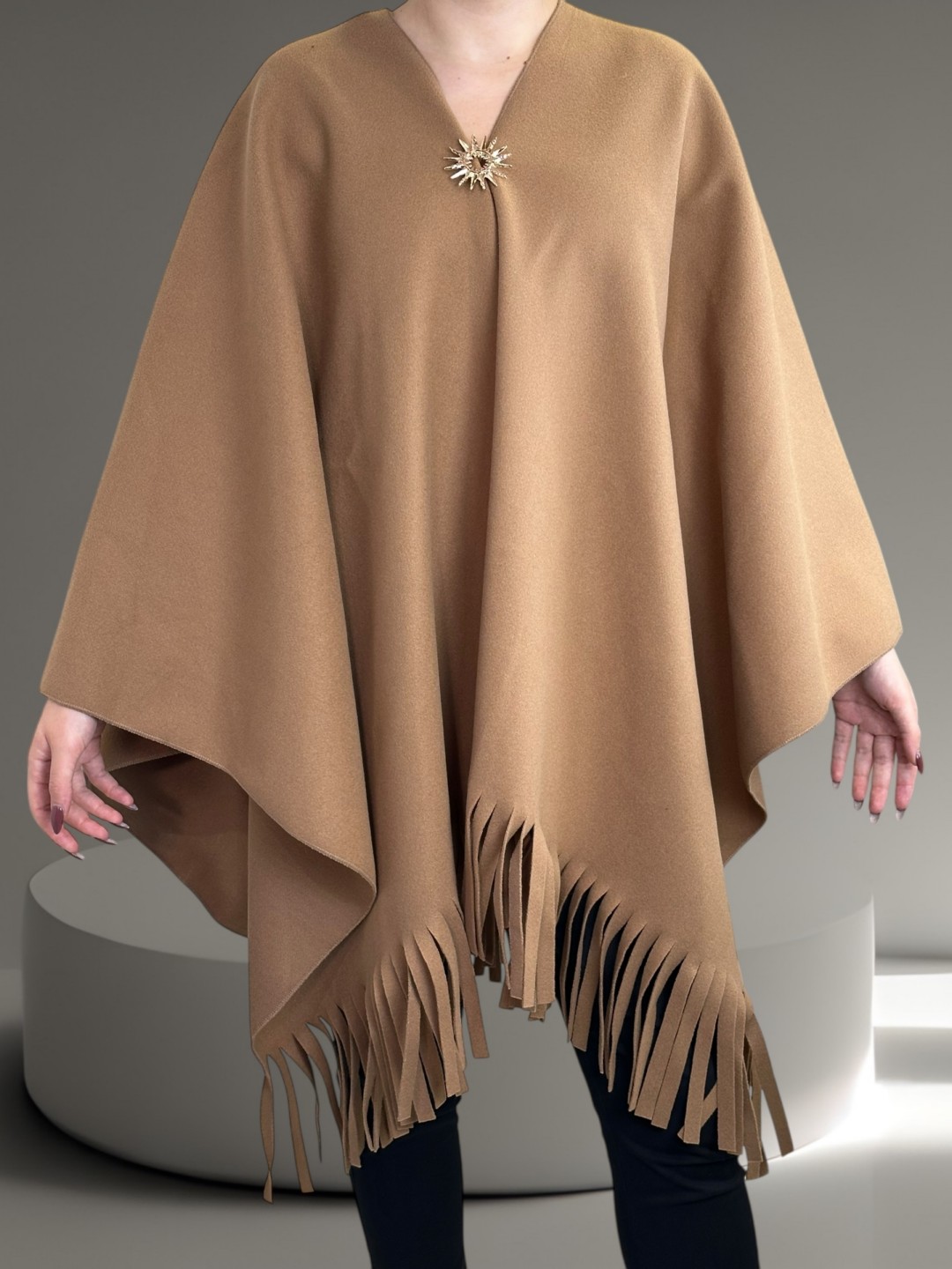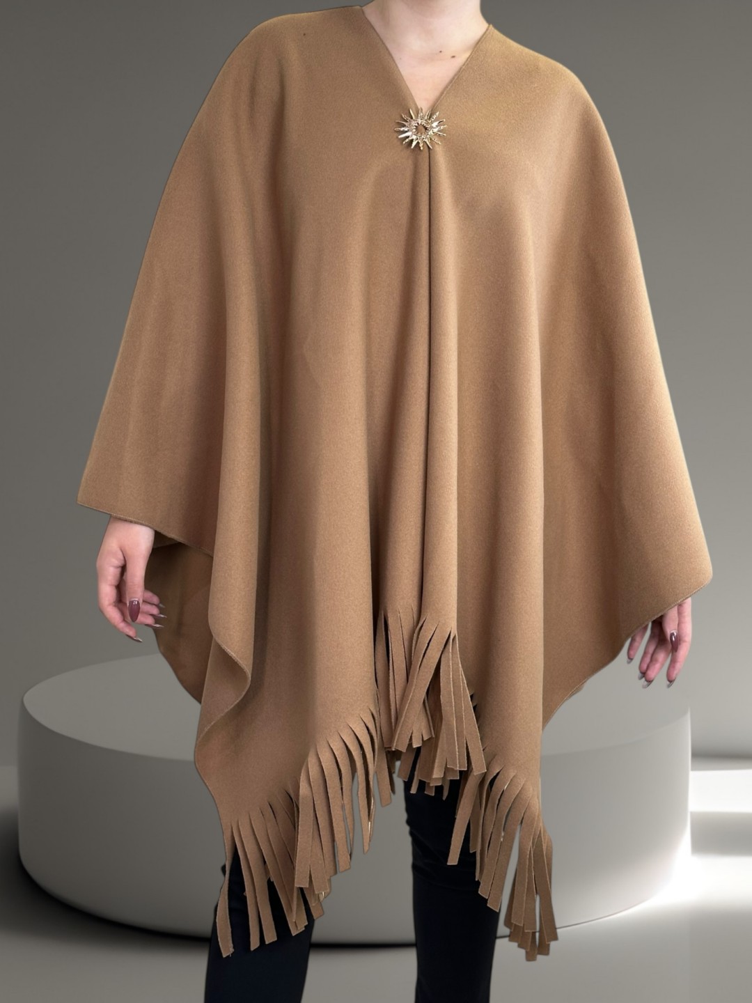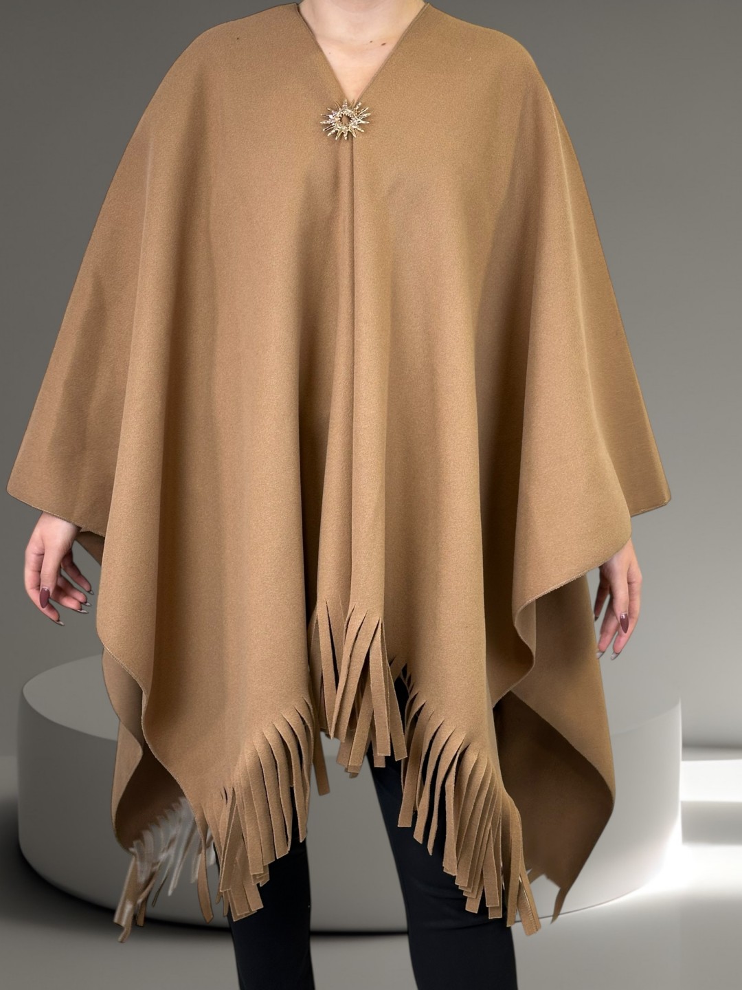 Κάπα με λαμπερή καρφίτσα και μοντέρνο τελείωμα με κρόσσια