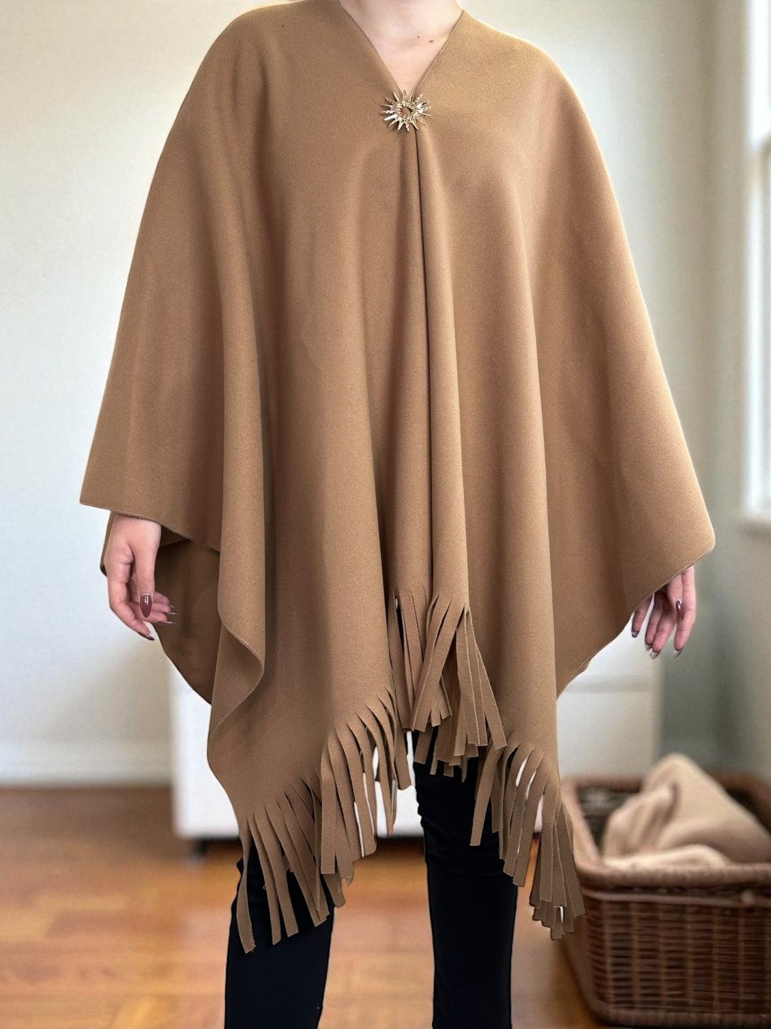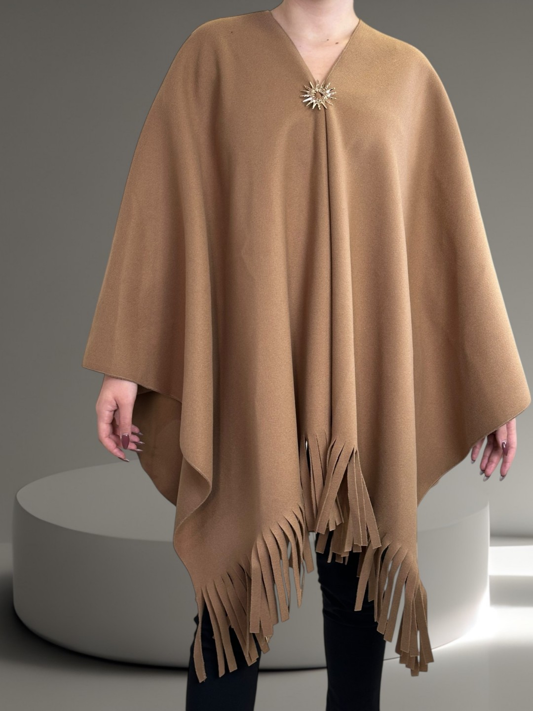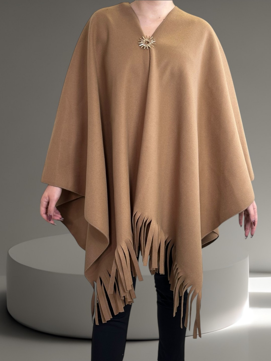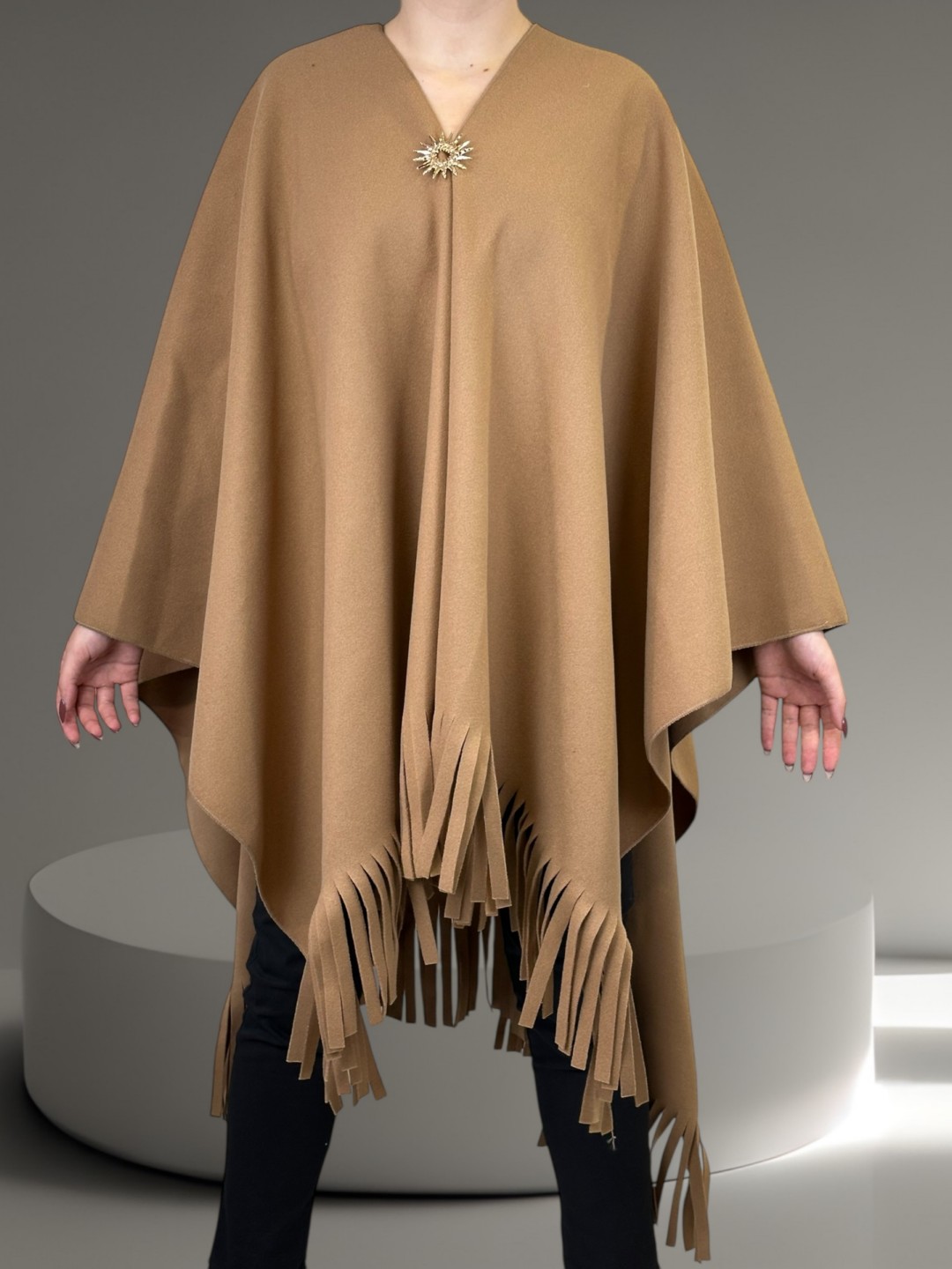 Κάπα με λαμπερή καρφίτσα και μοντέρνο τελείωμα με κρόσσια
