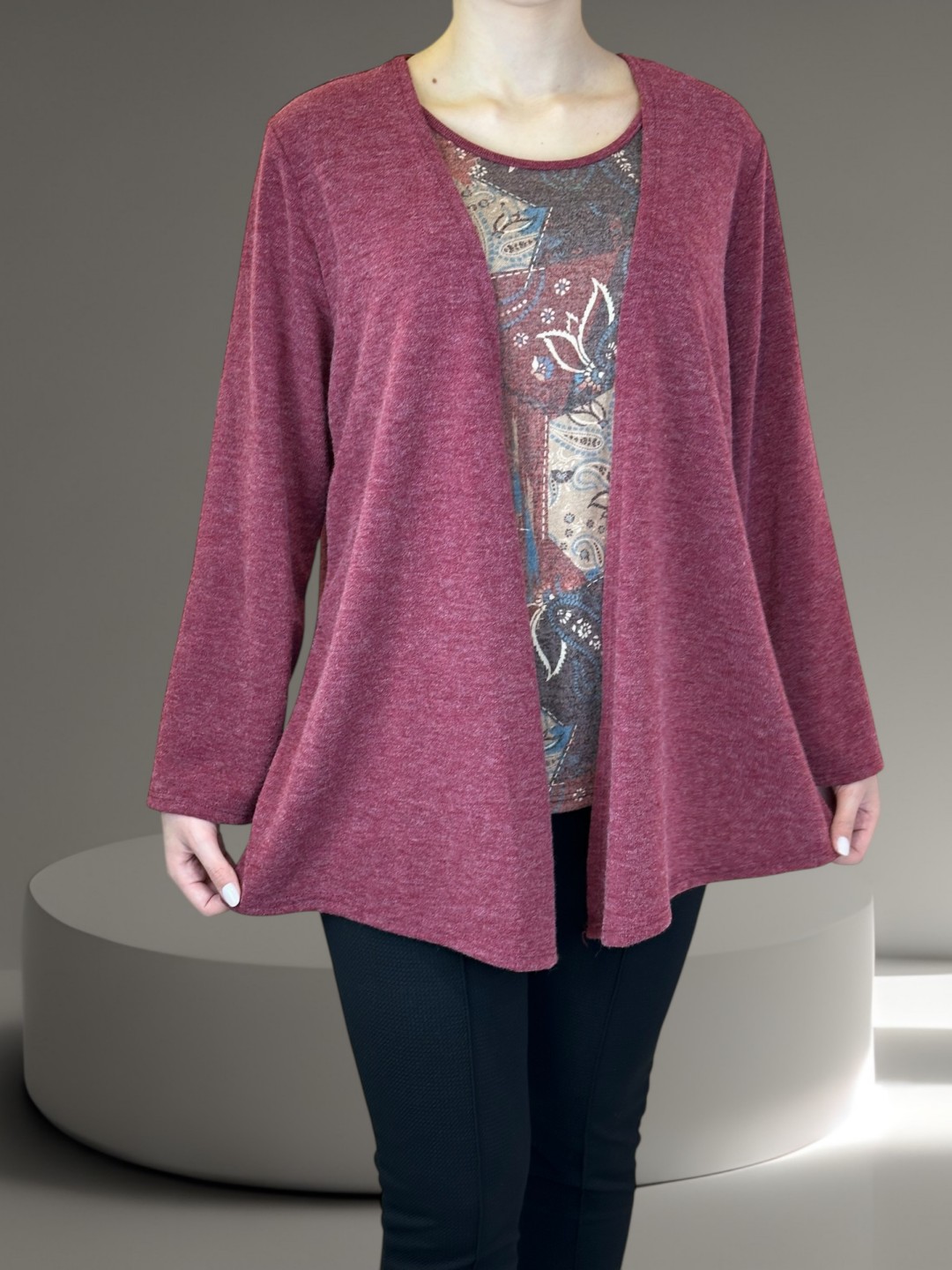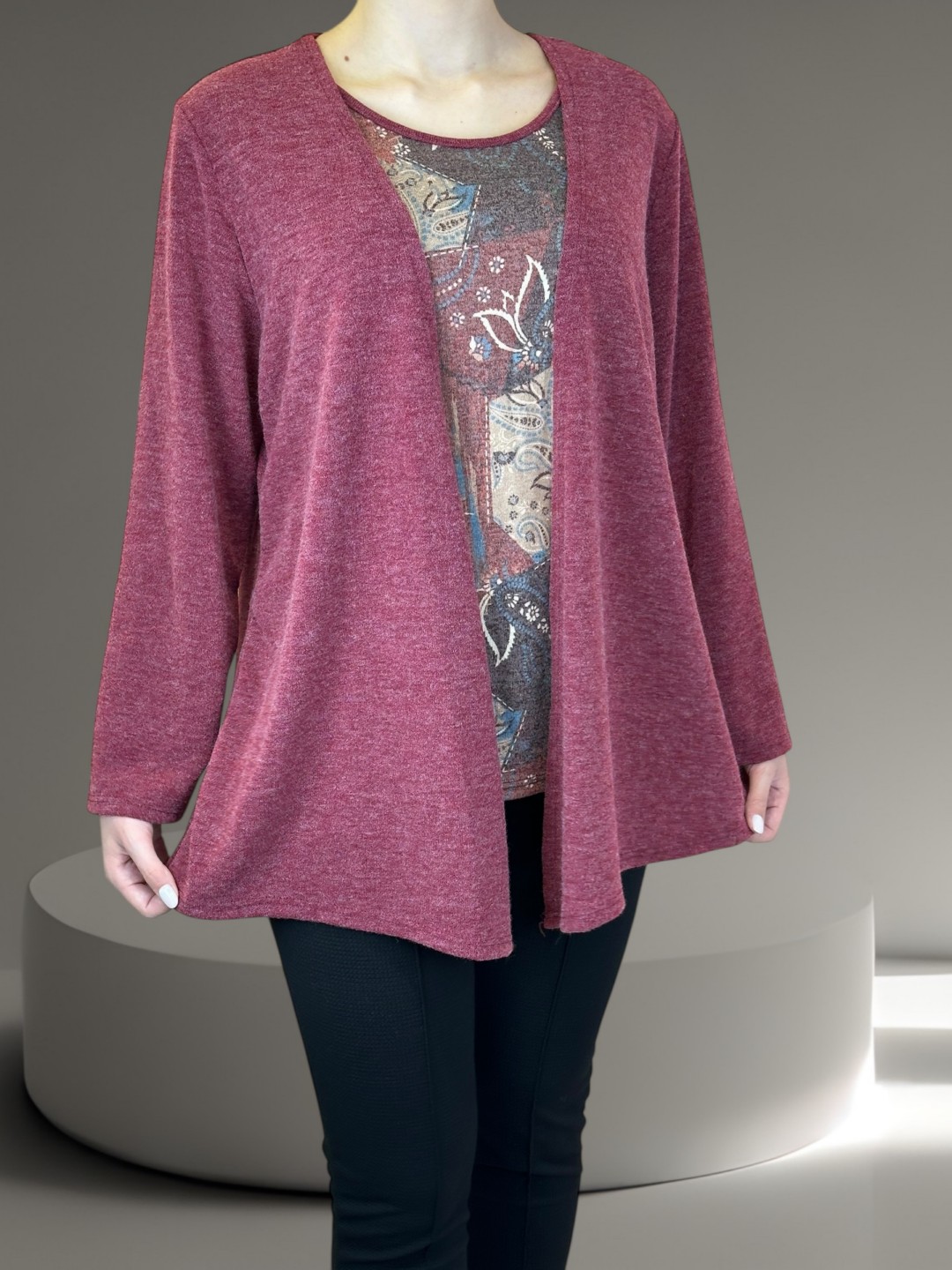 Μοναδική καθημερινή μπλούζα 2 σε 1 plus size, αναδεικνύει τη γυναικεία σιλουέτα. Φτιαγμένη από απαλό ύφασμα 75% viscoza, 5% ελασταν, 20% poliester, προσφέρει άνεση και στυλ. Ιδανική για κάθε εμφάνιση, διατίθεται σε μέγεθος One size.