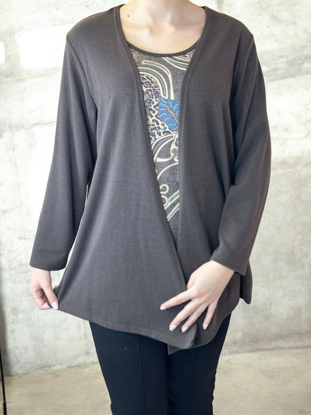 Ανανέωσε την καθημερινή σου γκαρνταρόμπα με την κομψή μπλούζα 2 σε 1 plus size. Σχεδιασμένη για να τονίζει τις καμπύλες σου με άνεση, χάρη στη σύνθεσή της από 75% ζεστή viscose, 5% ελαστικό ελαστάν και 20% μαλακό πολυεστέρα. Διαθέσιμη σε One Size. Θα γίνει η αγαπημένη σου επιλογή!
