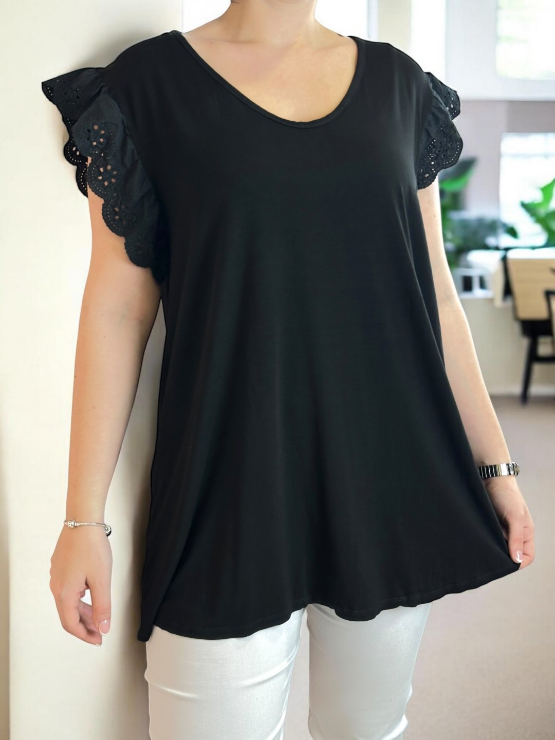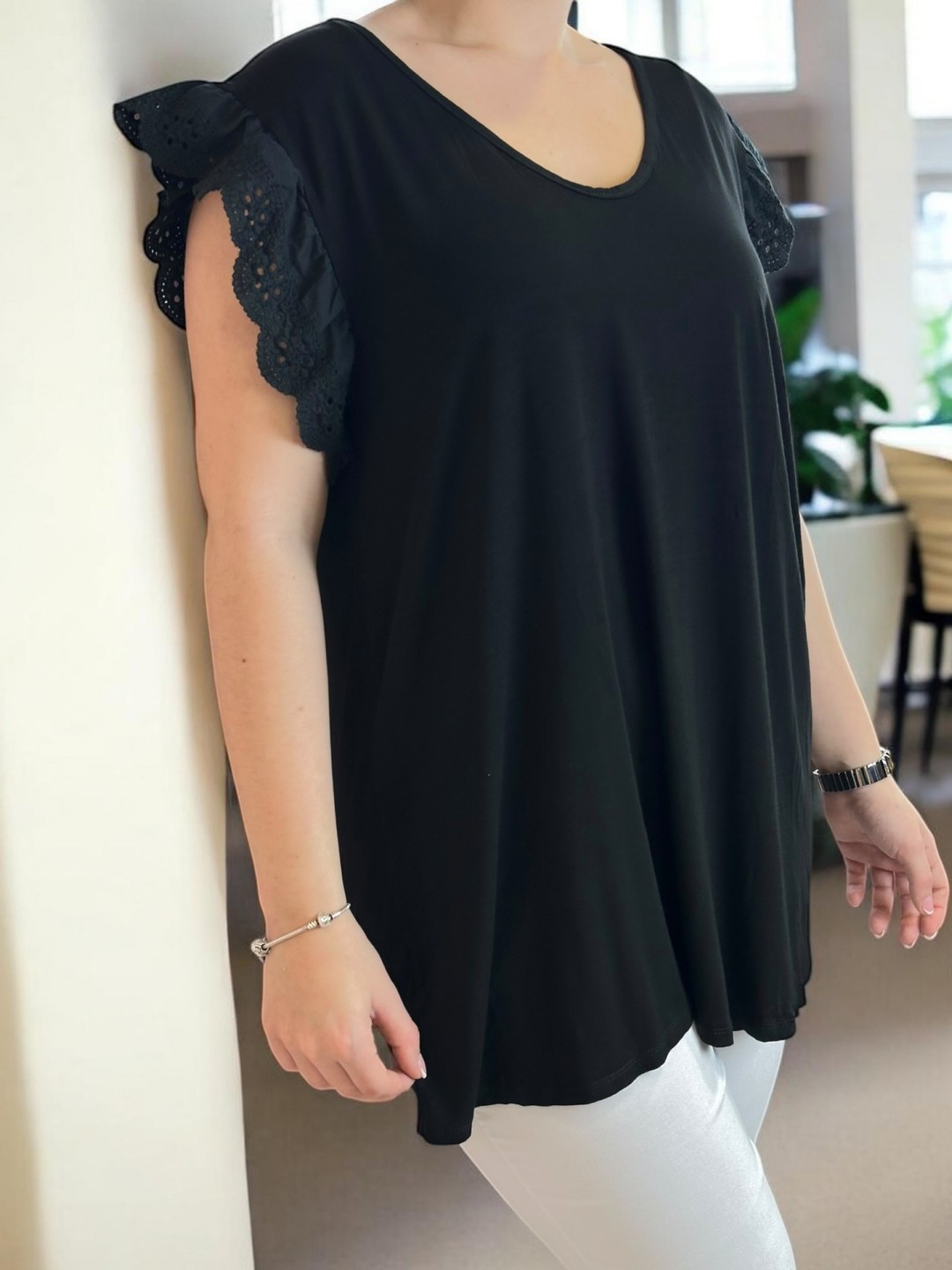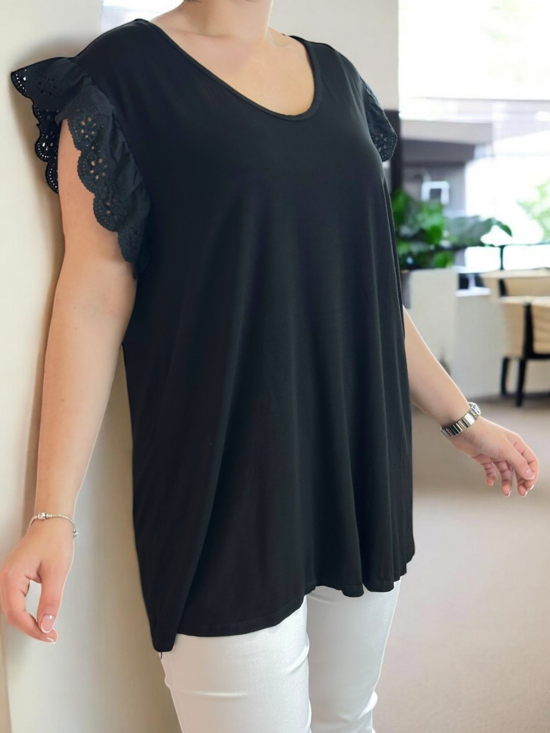 Κομψή μπλούζα με δαντελένια λεπτομέρεια στο μανίκι