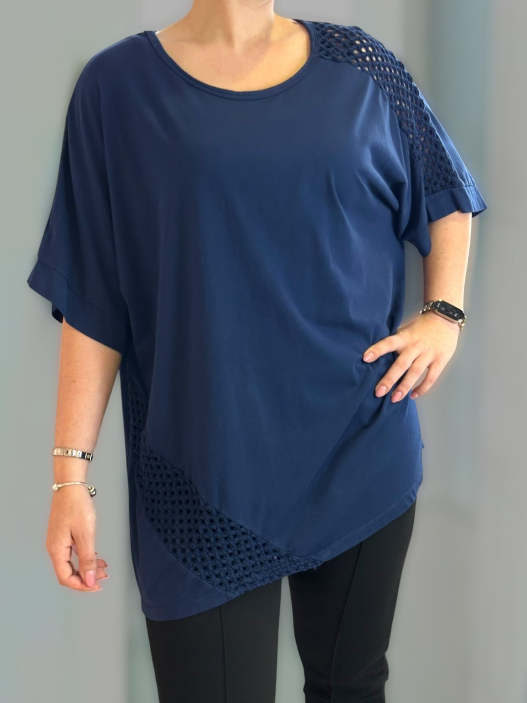 Κομψή μπλούζα με διαφάνεια στα μανίκια και στο πλάι