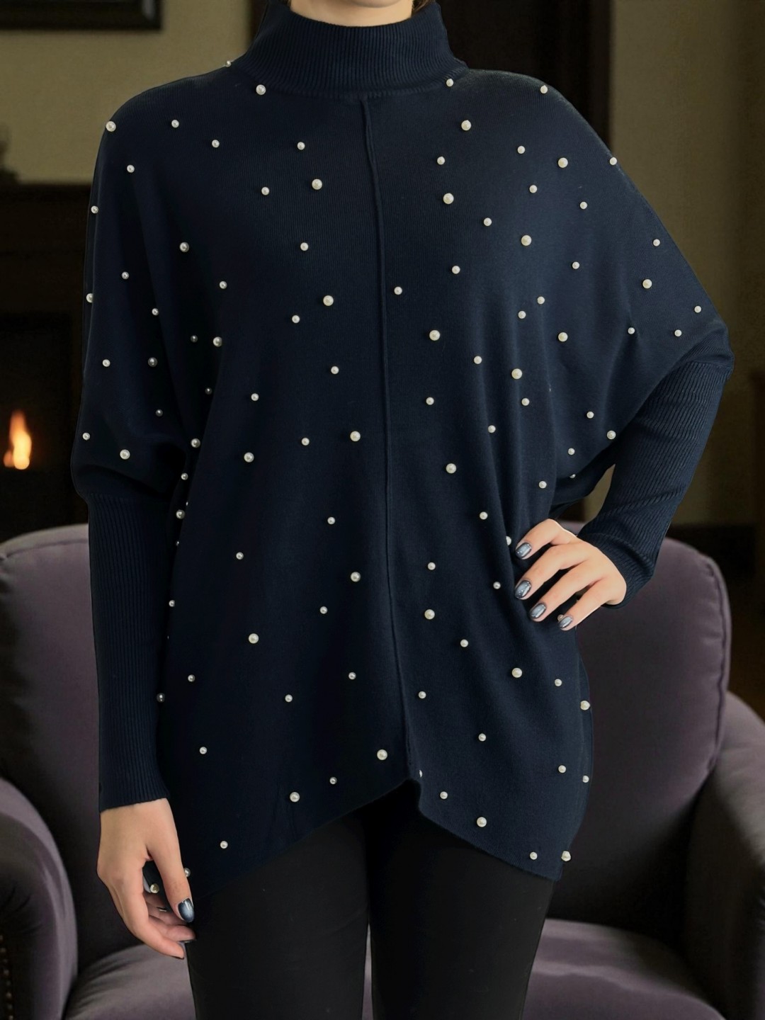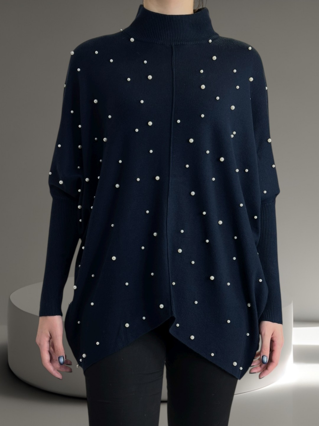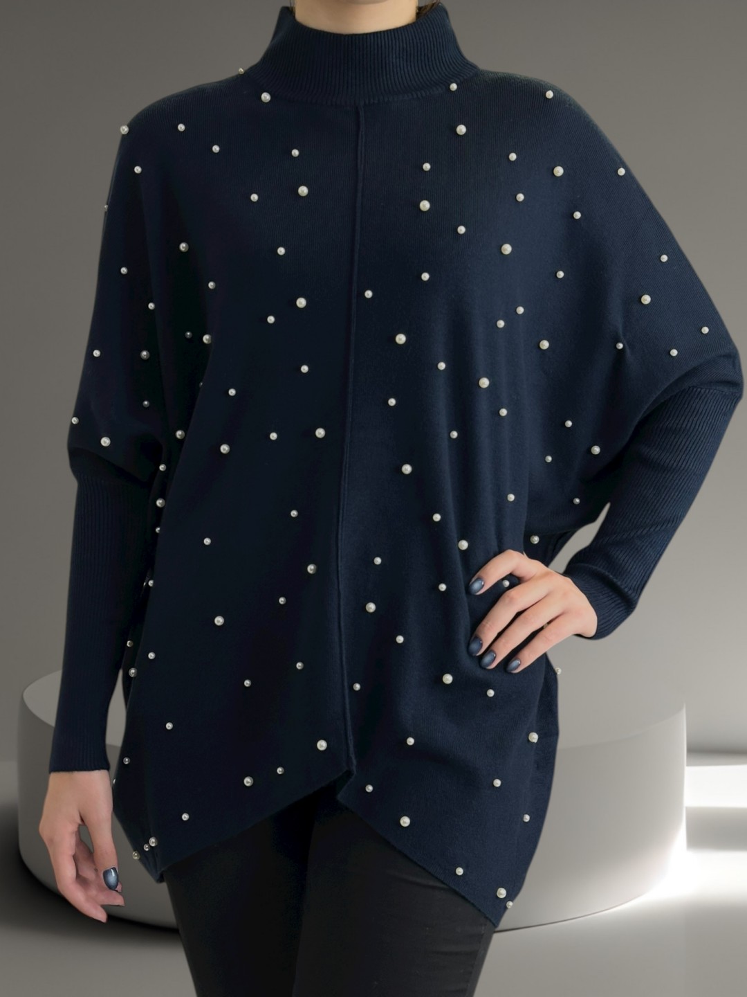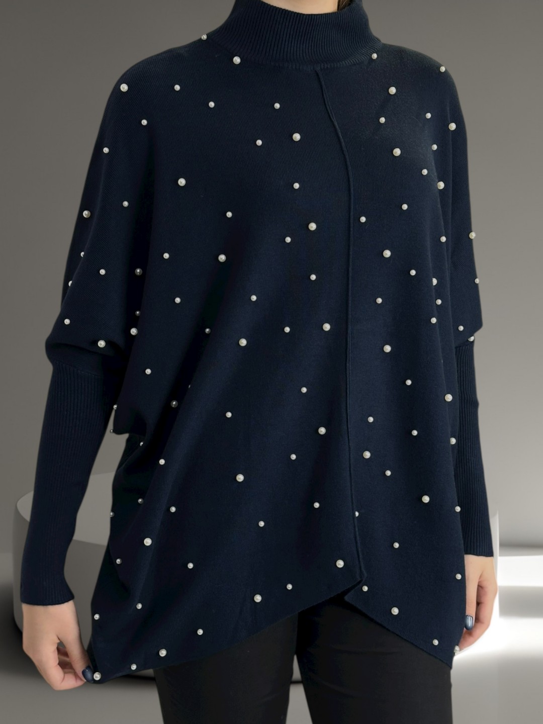 Δώστε στην καθημερινή σας εμφάνιση μια αίσθηση πολυτέλειας με την κομψή μπλούζα plus size με κοντό ζιβάγκο και πέρλες. Πλούσια αναδεικνύοντας τις καμπύλες σας, αυτό το κομμάτι είναι κατασκευασμένο από ένα μείγμα 30% poliamide, 20% modal, 20% elastan και 30% viscoza για απαλή εφαρμογή. Μέγεθος One Size.