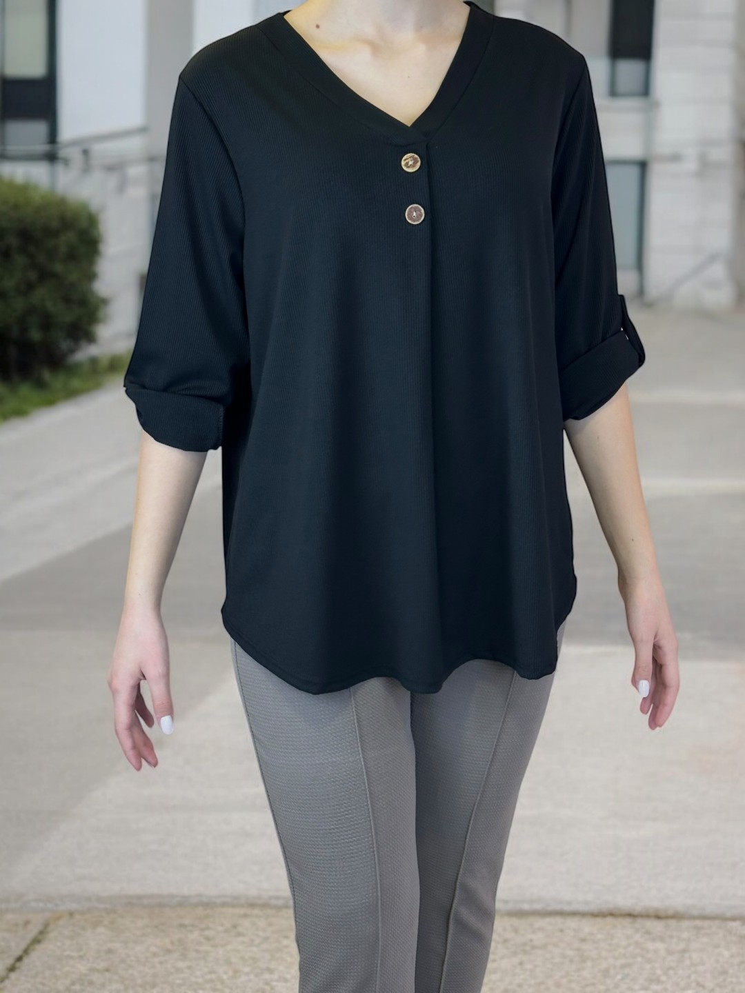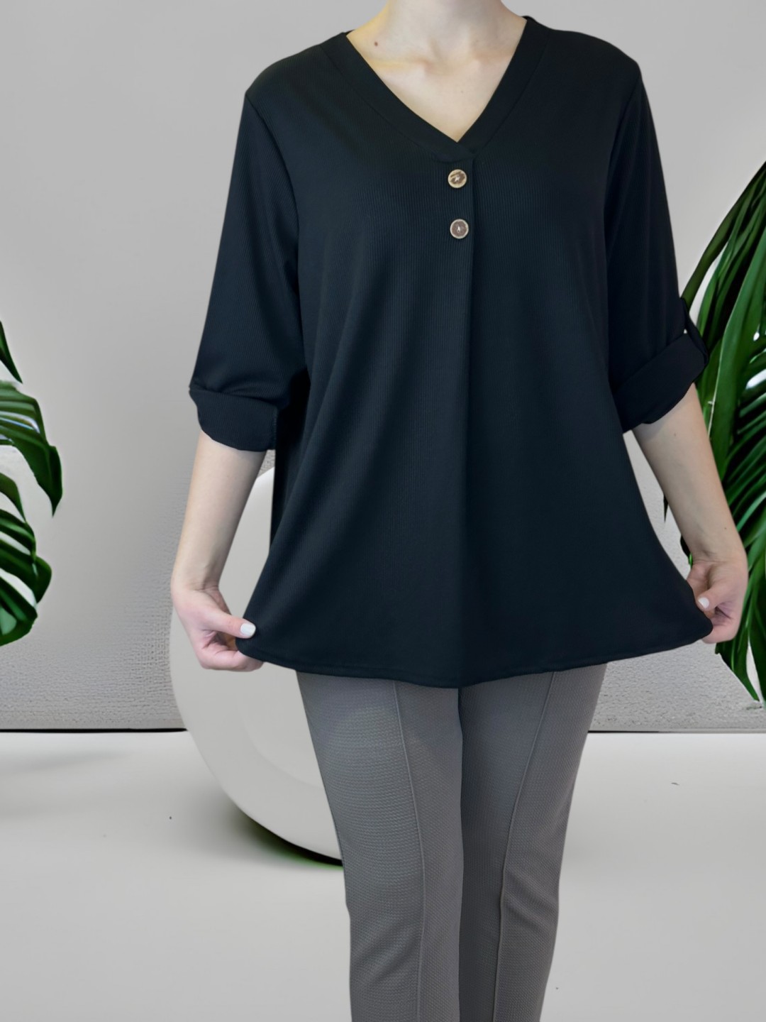 Κομψή μπλούζα με V και διακοσμητικά κουμπιά