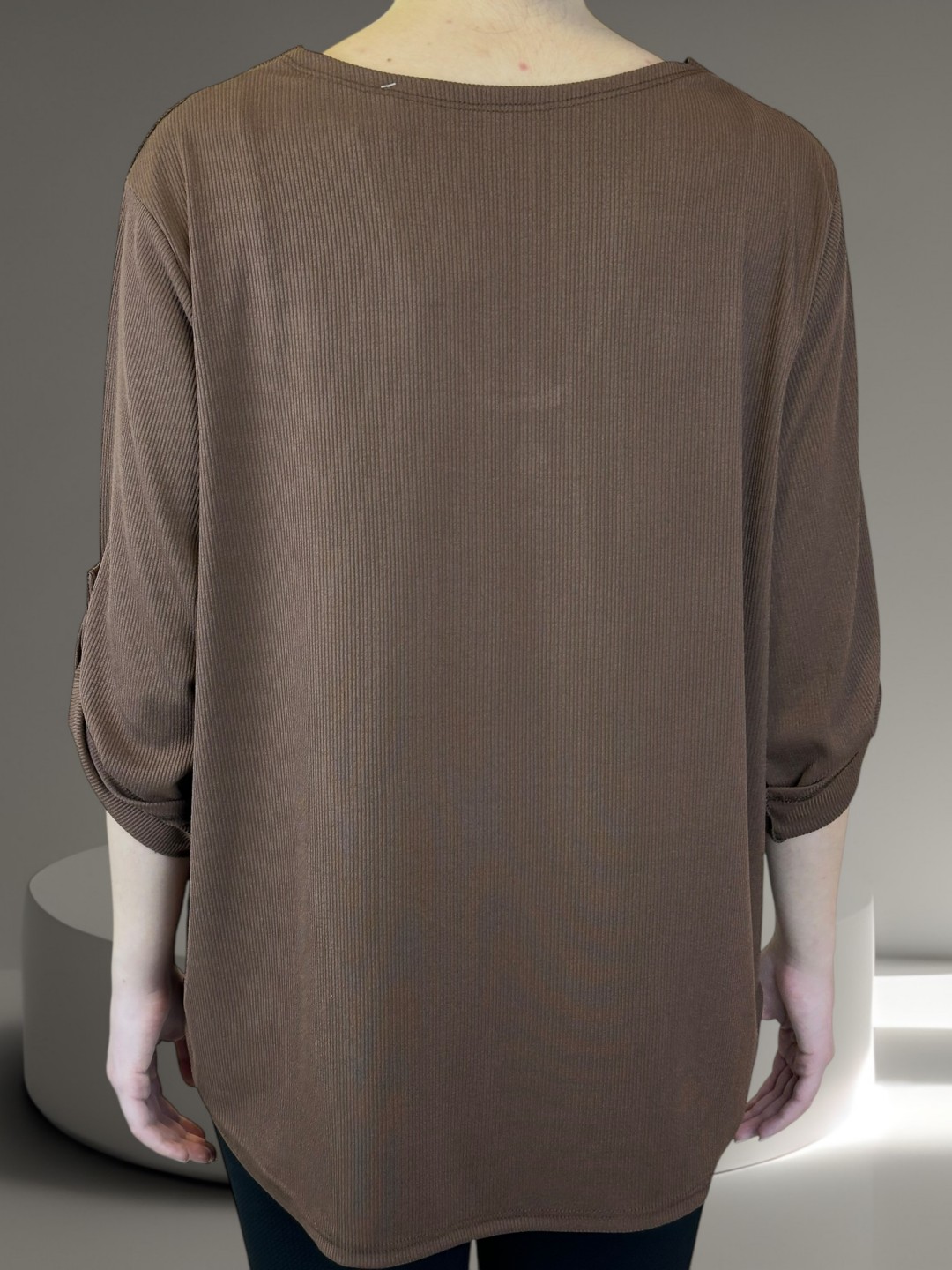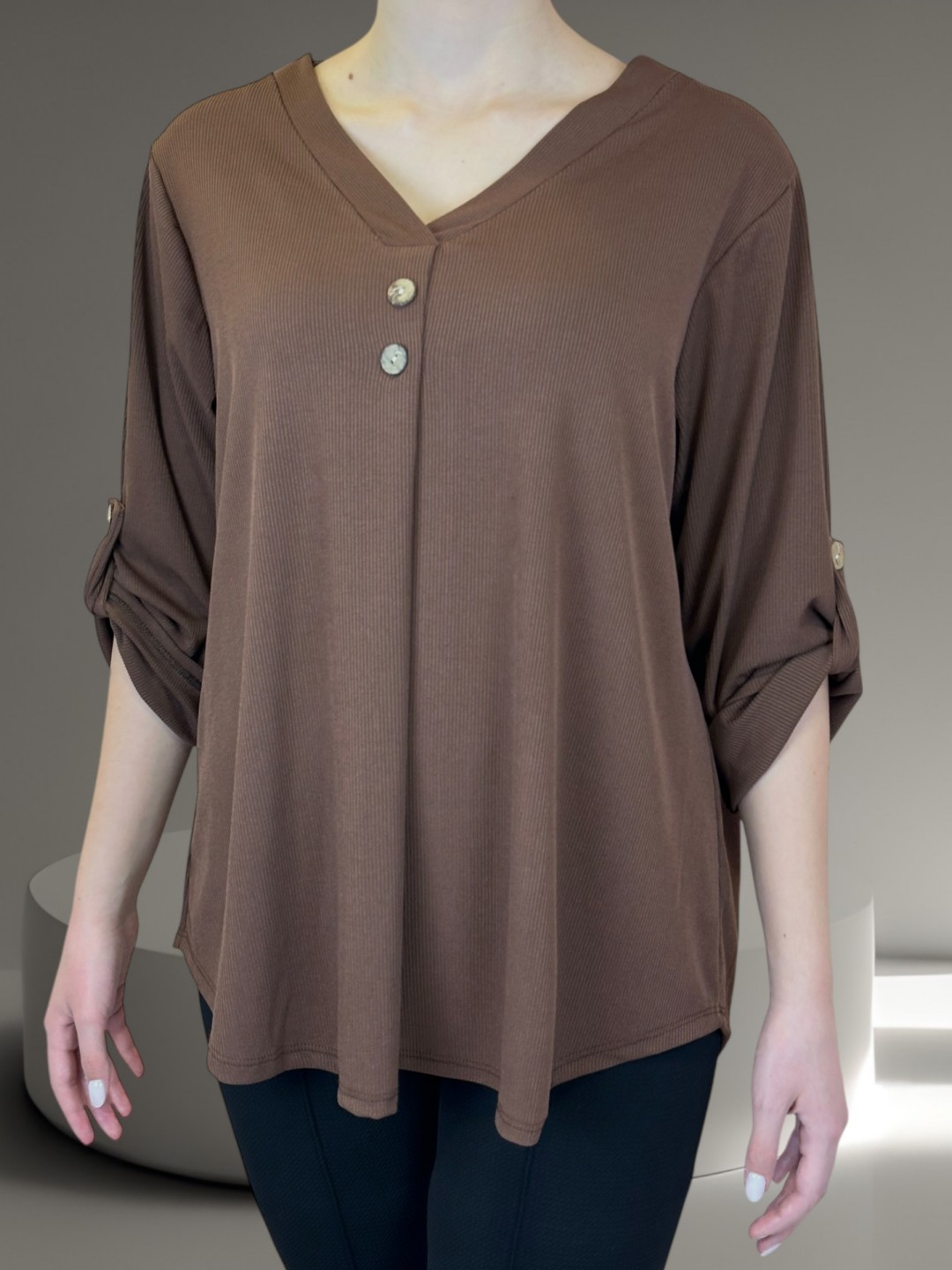 Κομψή μπλούζα plus size με V ντεκολτέ και διακοσμητικά κουμπιά, προσθέτει ιδιαίτερη λάμψη στο στιλ σας. Ιδανική για κάθε περίσταση. One size για άνεση και άψογη εφαρμογή.