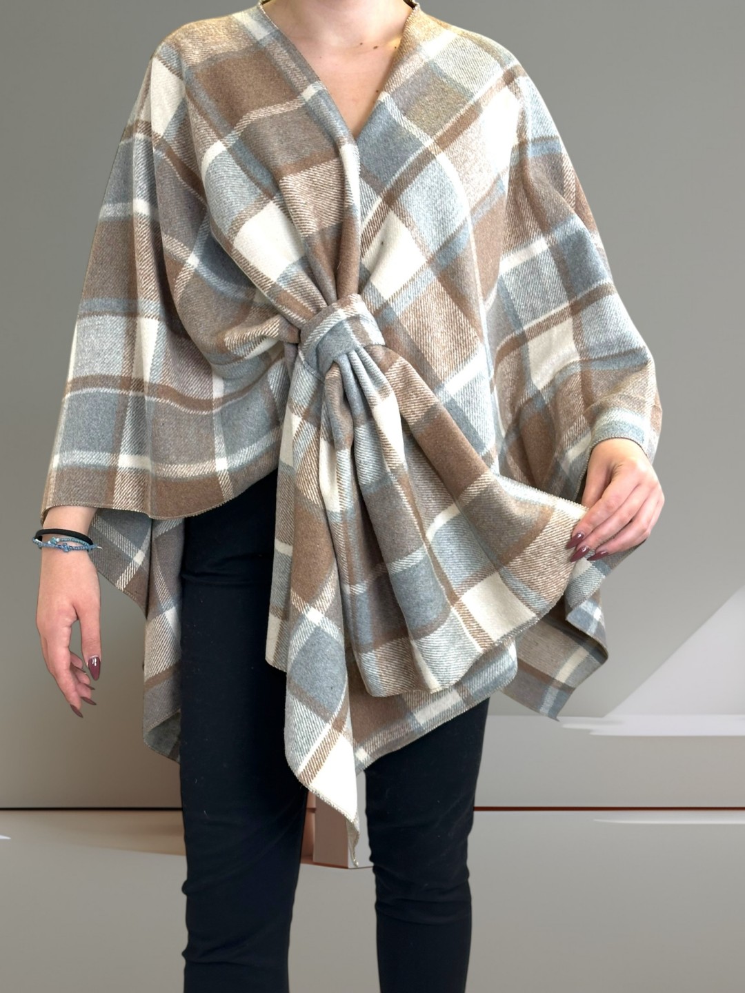 Κομψή και άνετη πι ντε πουλ κάπα, διατίθεται σε Plus Size. Το δέσιμο τύπου φιόγκο προσθέτει μια θηλυκή πινελιά. Ιδανική τόσο για κρύες μέρες όσο και για ελαφρύτερους καιρούς. Βγαίνει σε ενιαίο μέγεθος.