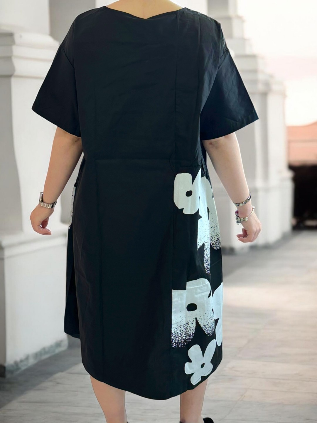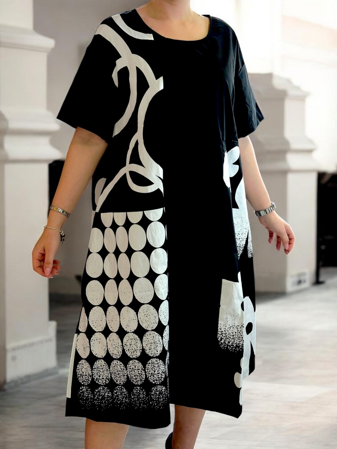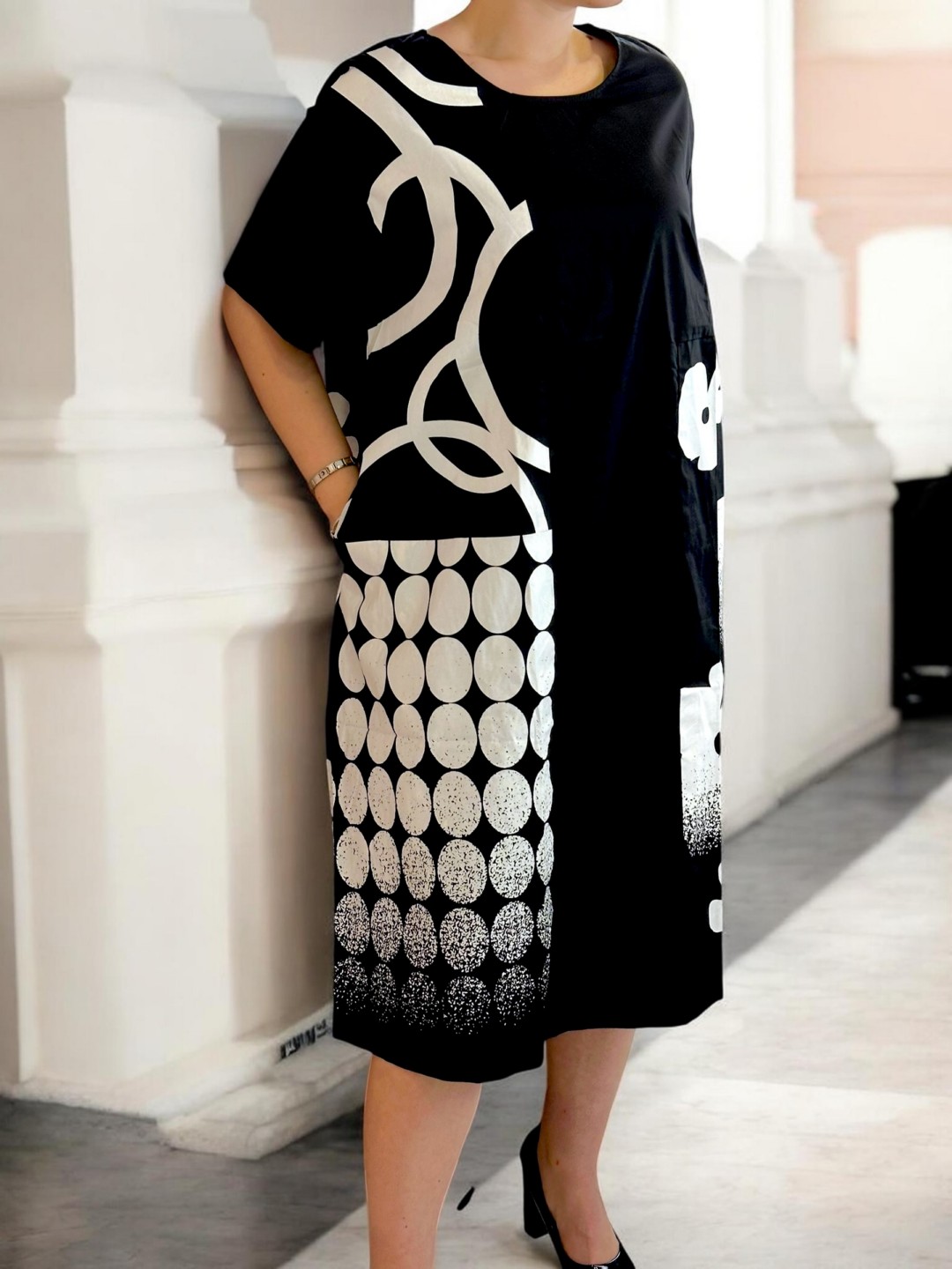 Κομψό ασπρόμαυρο φόρεμα με ιδιαίτερη υφή