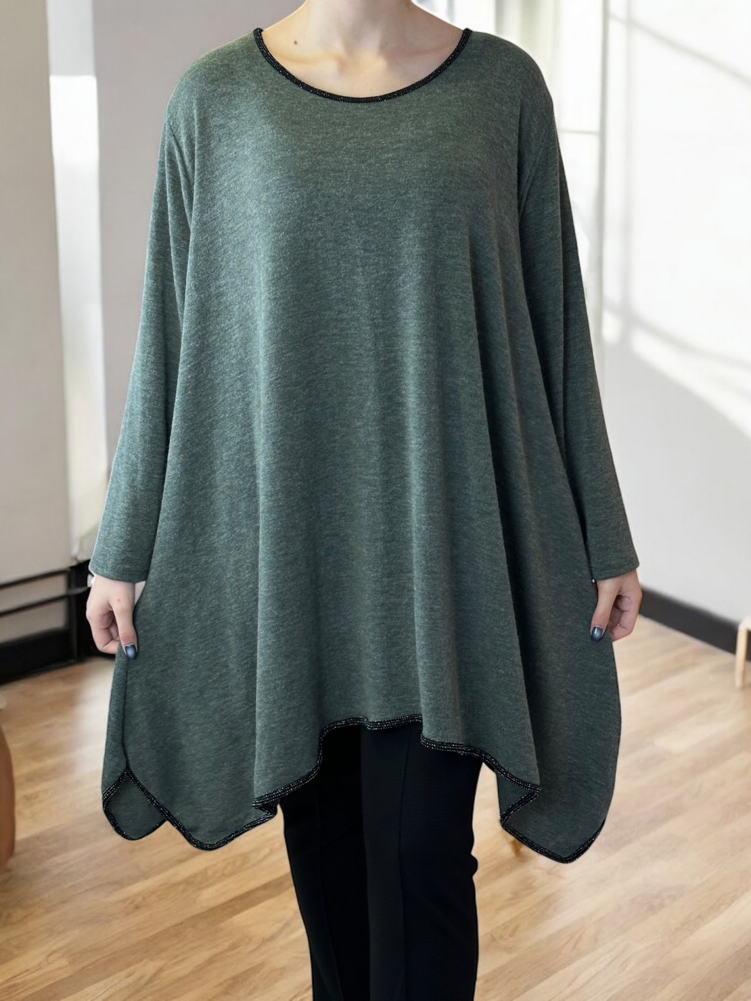 Κομψό plus size μπλουζοφόρεμα, εμπλουτισμένο με λούρεξ λεπτομέρειες που χαρίζουν λάμψη στο στυλ σας. Η σύνθεση του από 15% viscoza, 5% elastan και 50% poliester, εξασφαλίζει άνεση και άψογη εφαρμογή. Διαθέσιμο σε μέγεθος One Size, προσαρμόζεται στη θηλυκή σιλουέτα, αναδεικνύοντας με τον καλύτερο τρόπο τις καμπύλες σας. Επιλέξτε το για άψογη εμφάνιση ανά πάσα στιγμή!