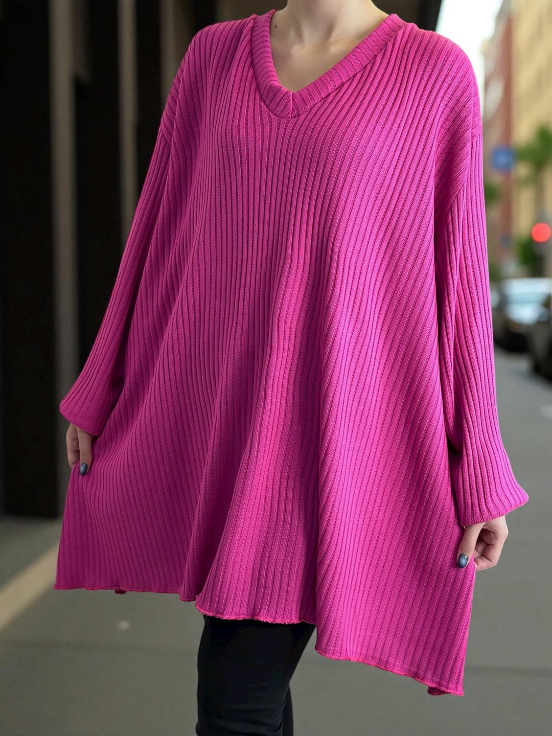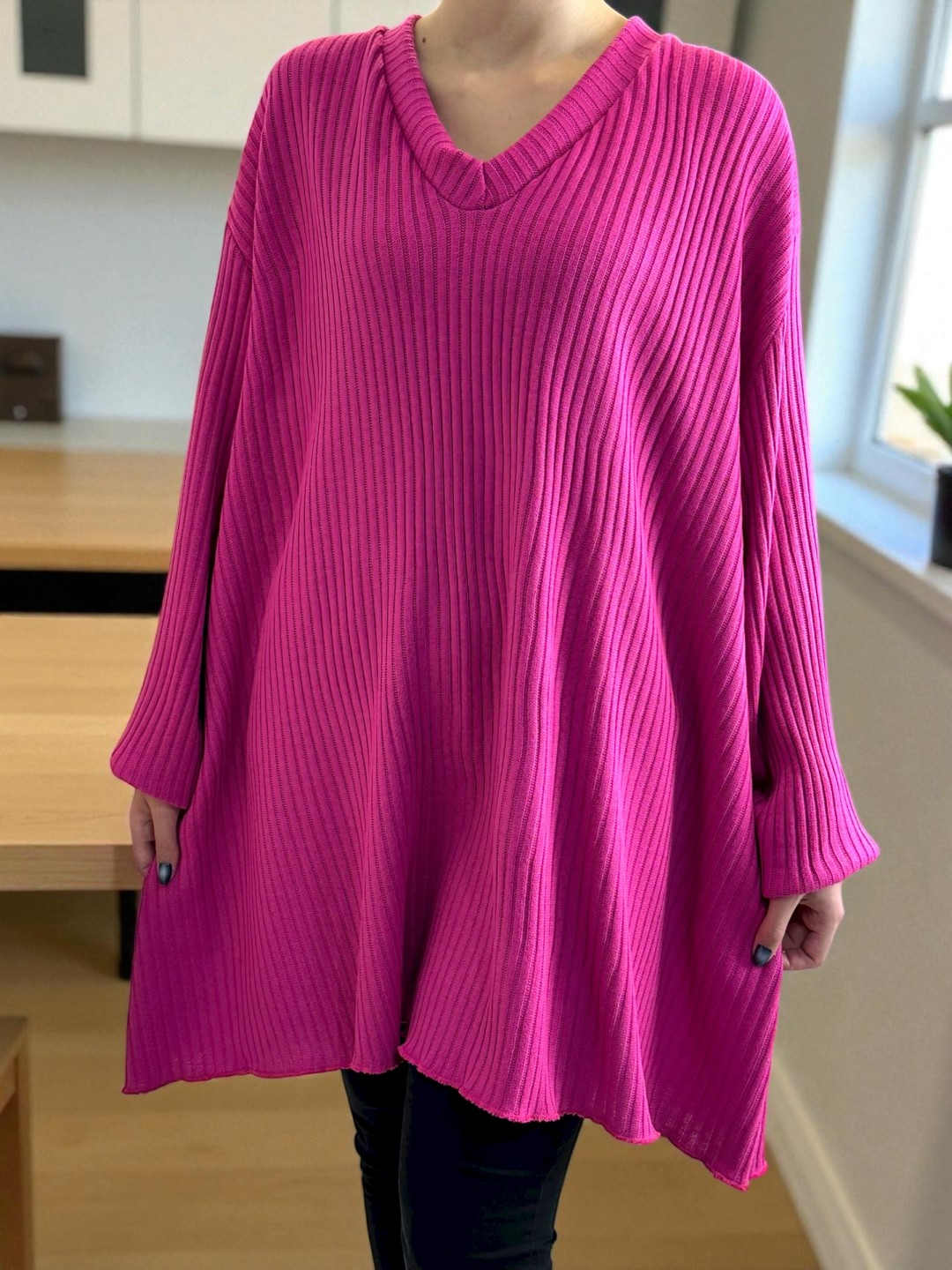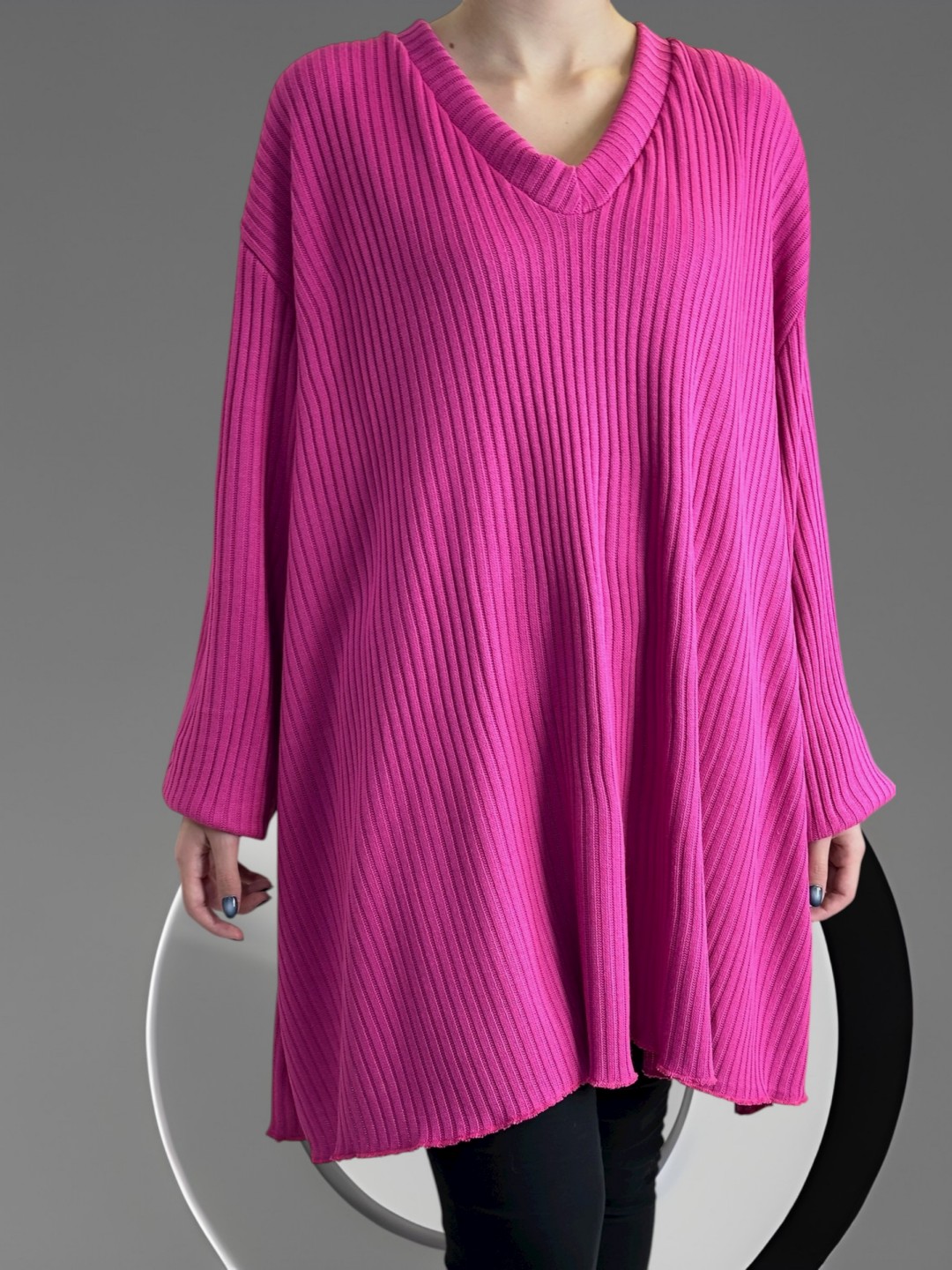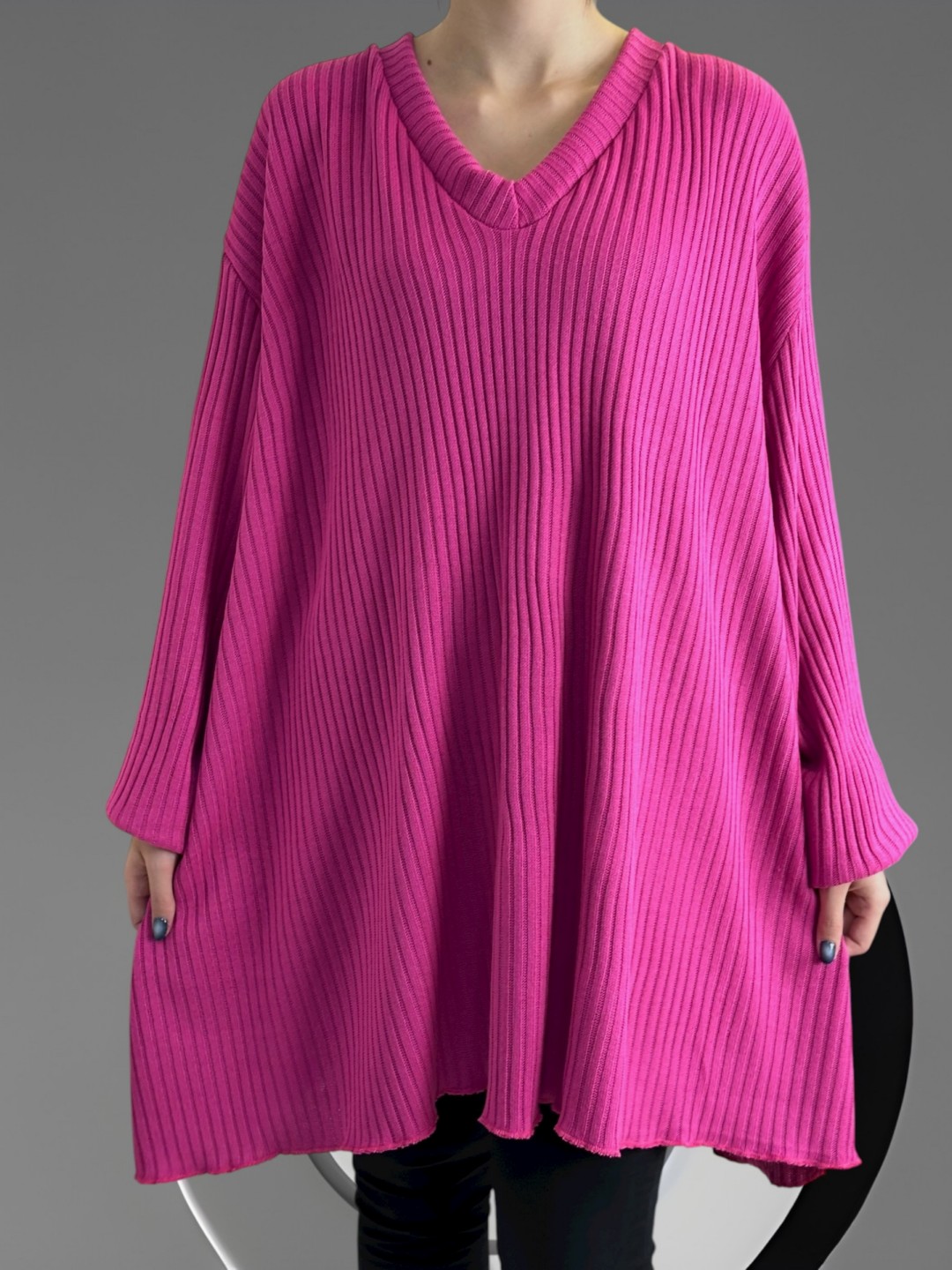 “Κομψό μπλουζοφόρεμα plus size, από υπέροχη πλεκτή υφή, προσφέρει ζεστασιά και στυλ. Με άνετη εφαρμογή και V λαιμό που κολακεύει τη σιλουέτα. Ιδανικό για εμφανίσεις που ξεχωρίζουν. One size.