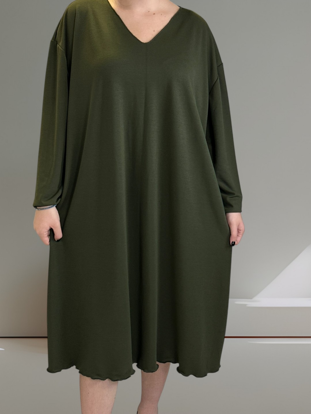 Αισθανθείτε σίγουρη και κομψή με αυτό το plus size φόρεμα με V ντεκολτέ. Κατασκευασμένο από άνετη και ελαστική βισκόζη, το φόρεμα αγκαλιάζει στυλάτα τις καμπύλες σας, ενώ το μέγεθος One size ενθαρρύνει την αυτοπεποίθηση και την κομψότητα σε κάθε σώμα.