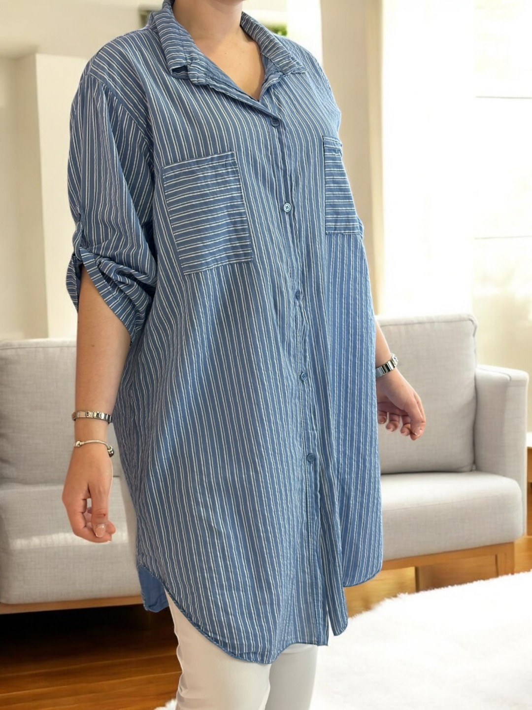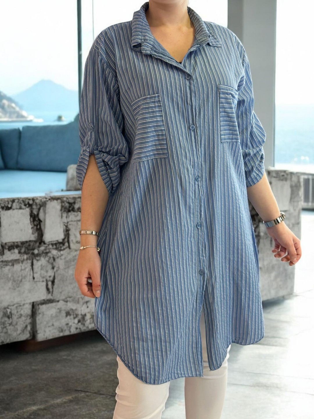 Κομψό ριγέ πουκάμισο με διακριτική τσέπη