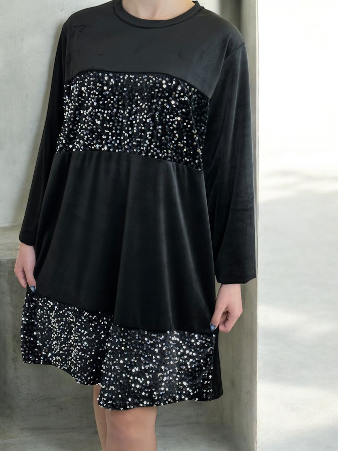 Κομψό Βελούδινο Φόρεμα με Λαμπερές Παγιέτες
