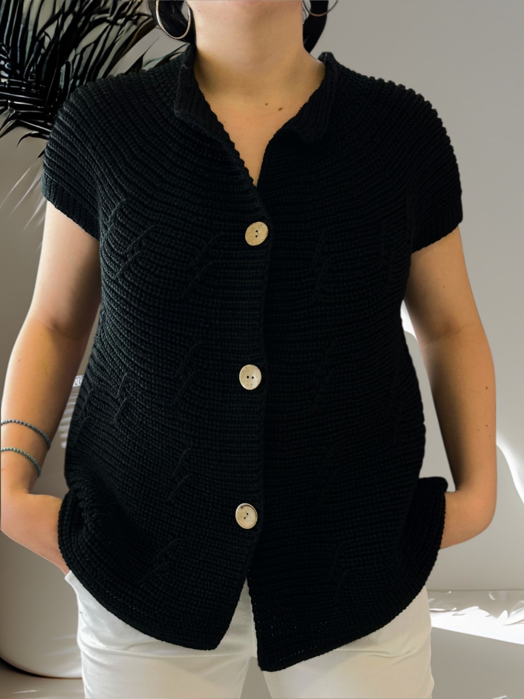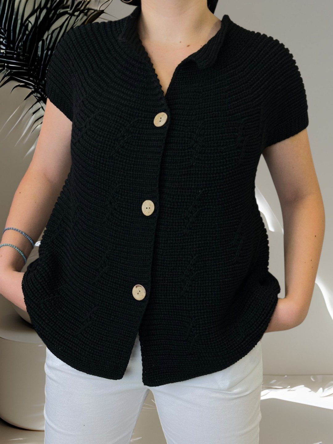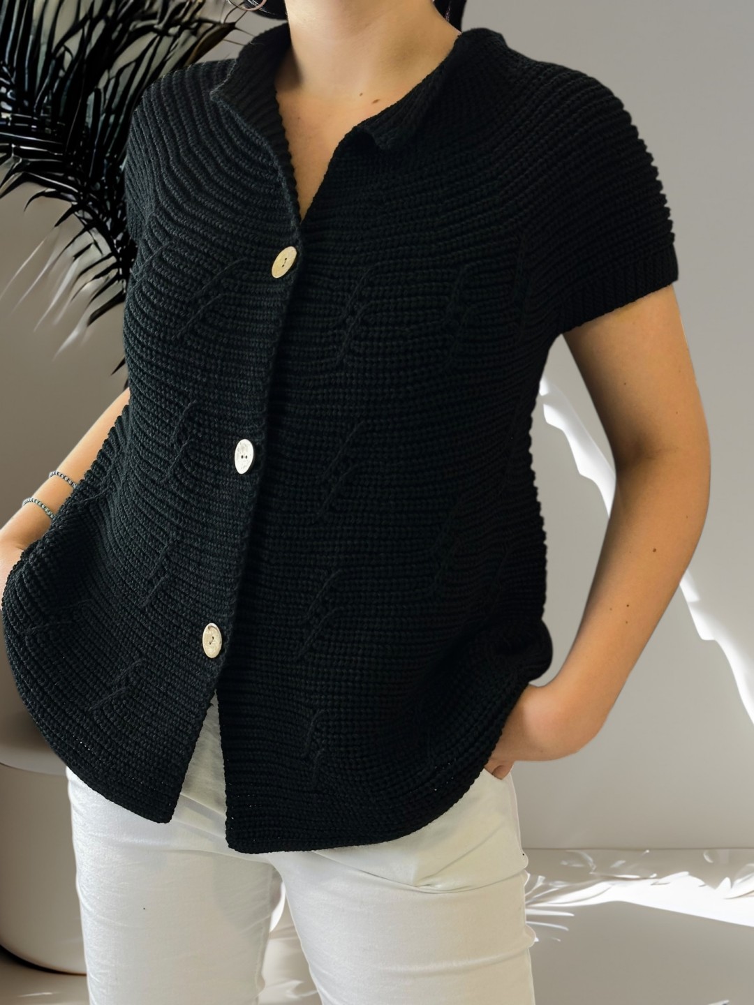 Κοντομάνικη ζακέτα από φίνα πλέξη
