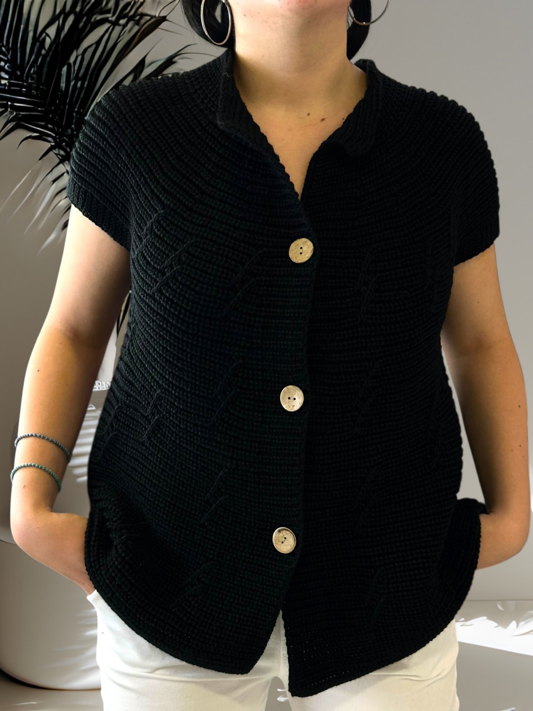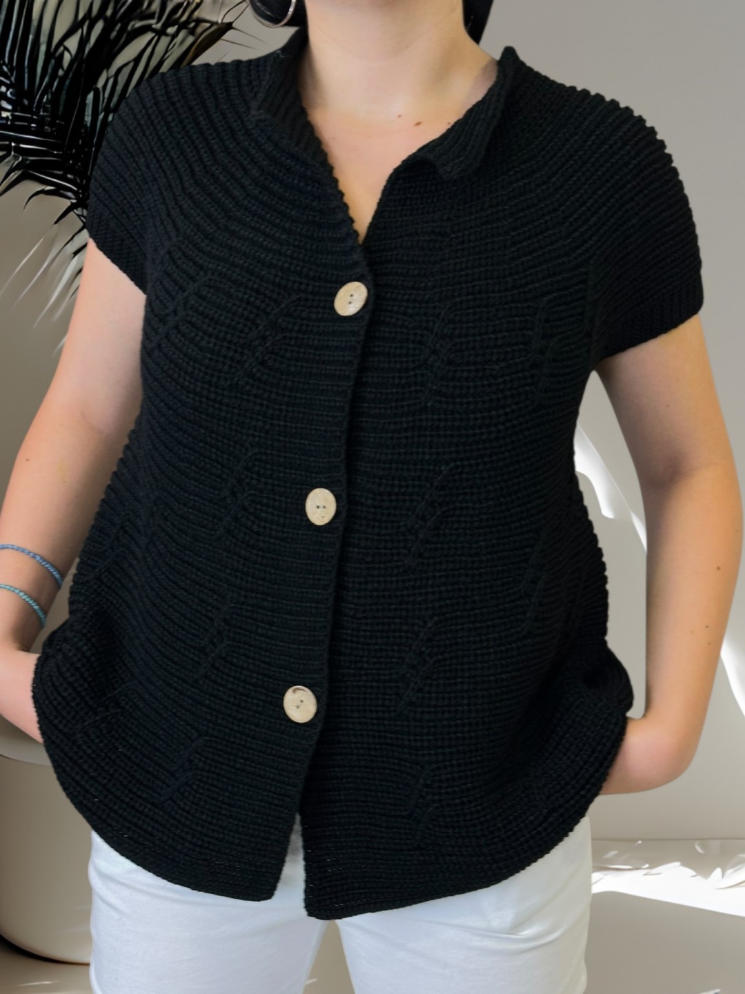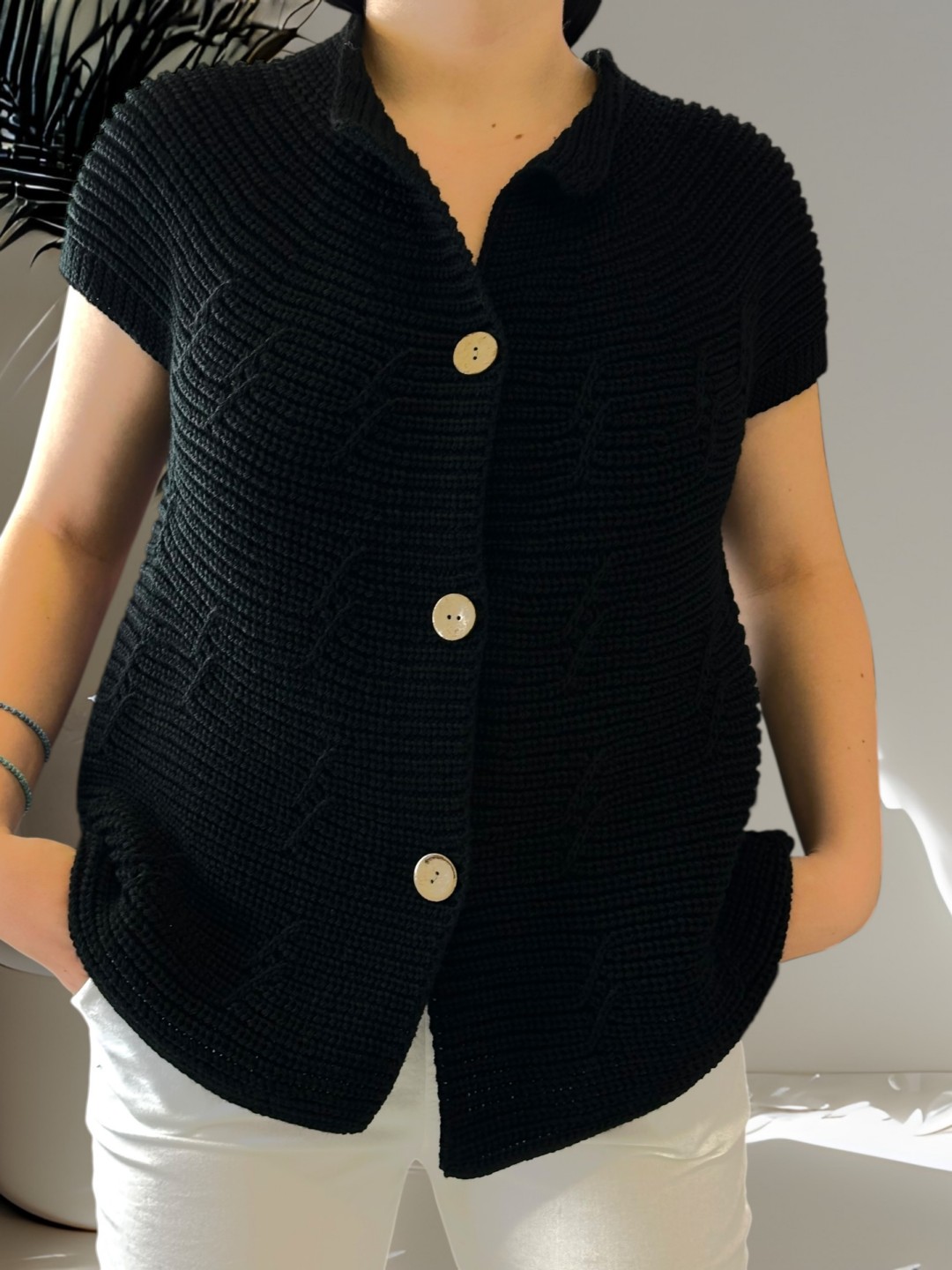 Κοντομάνικη ζακέτα από φίνα πλέξη