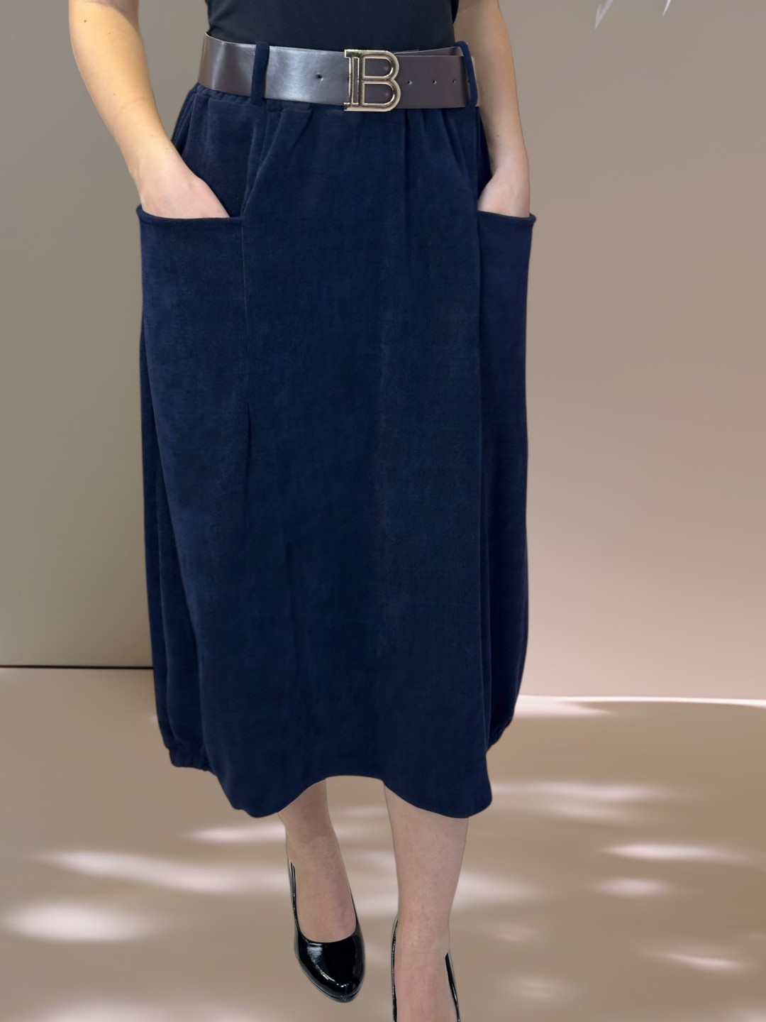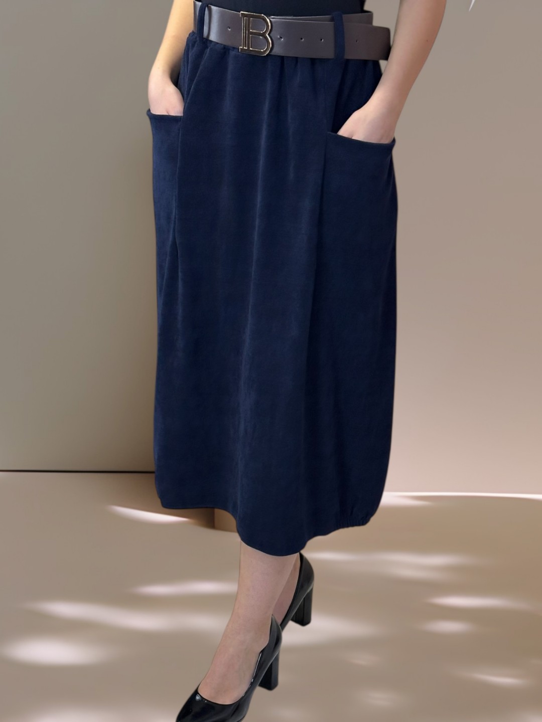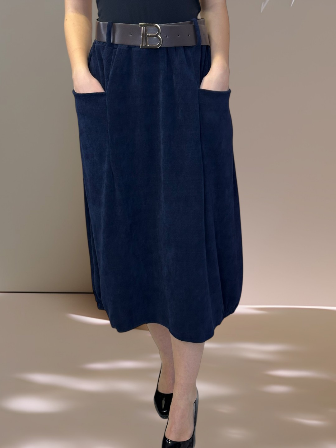 Κοτλέ Φούστα με Υφασμάτινη Ζώνη