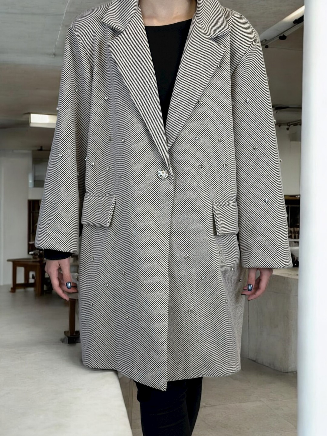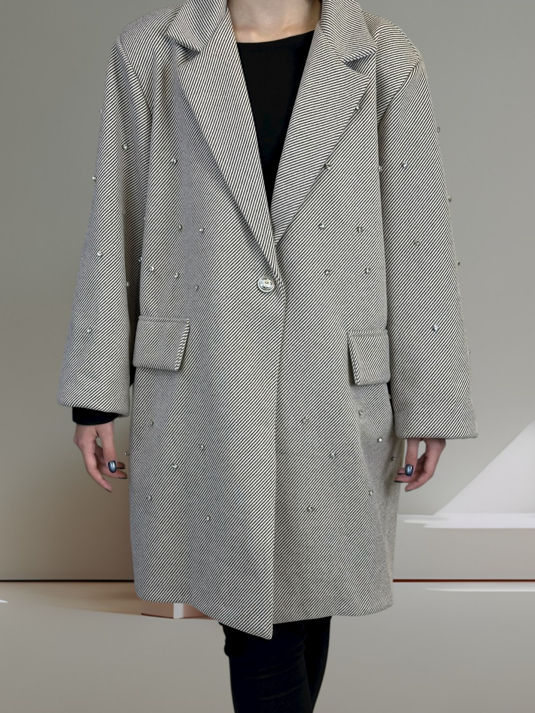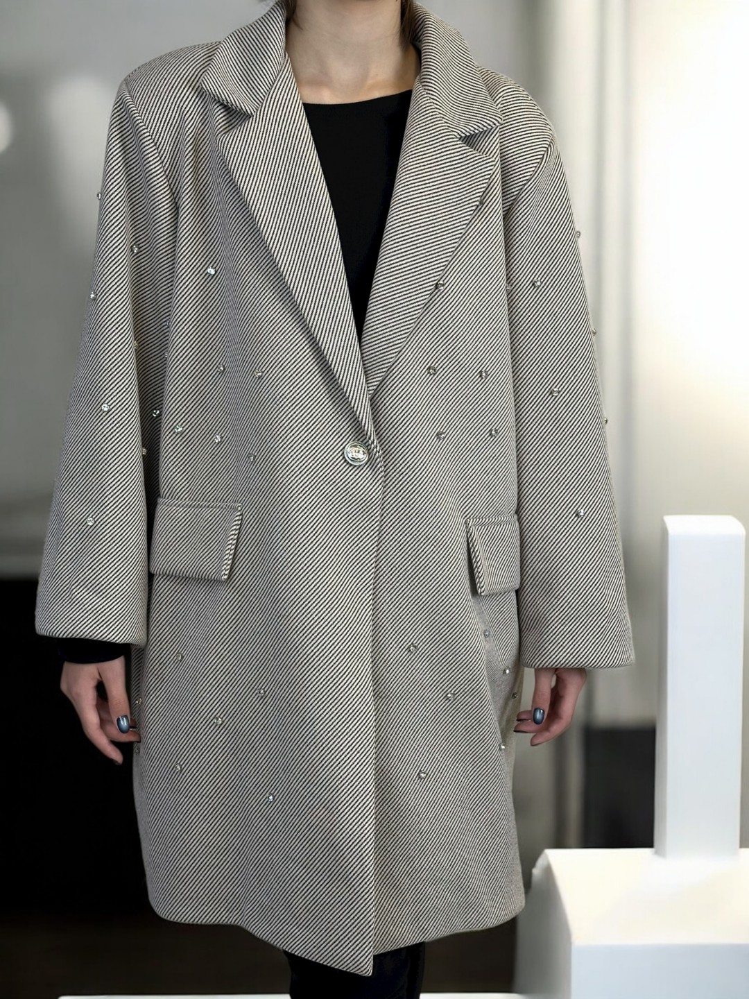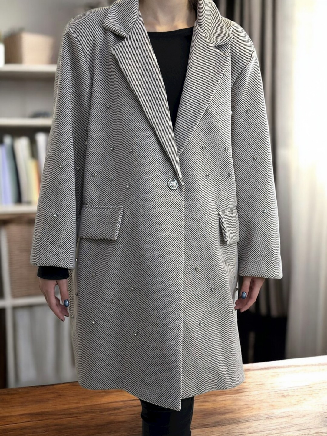 Λαμπερή παλτό ζακέτα plus size με στρας λεπτομέρειες