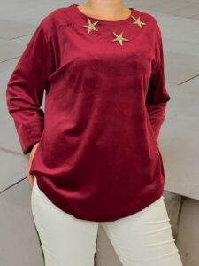 Λαμπερή Velvet Μπλούζα με Σχέδιο Αστέρια