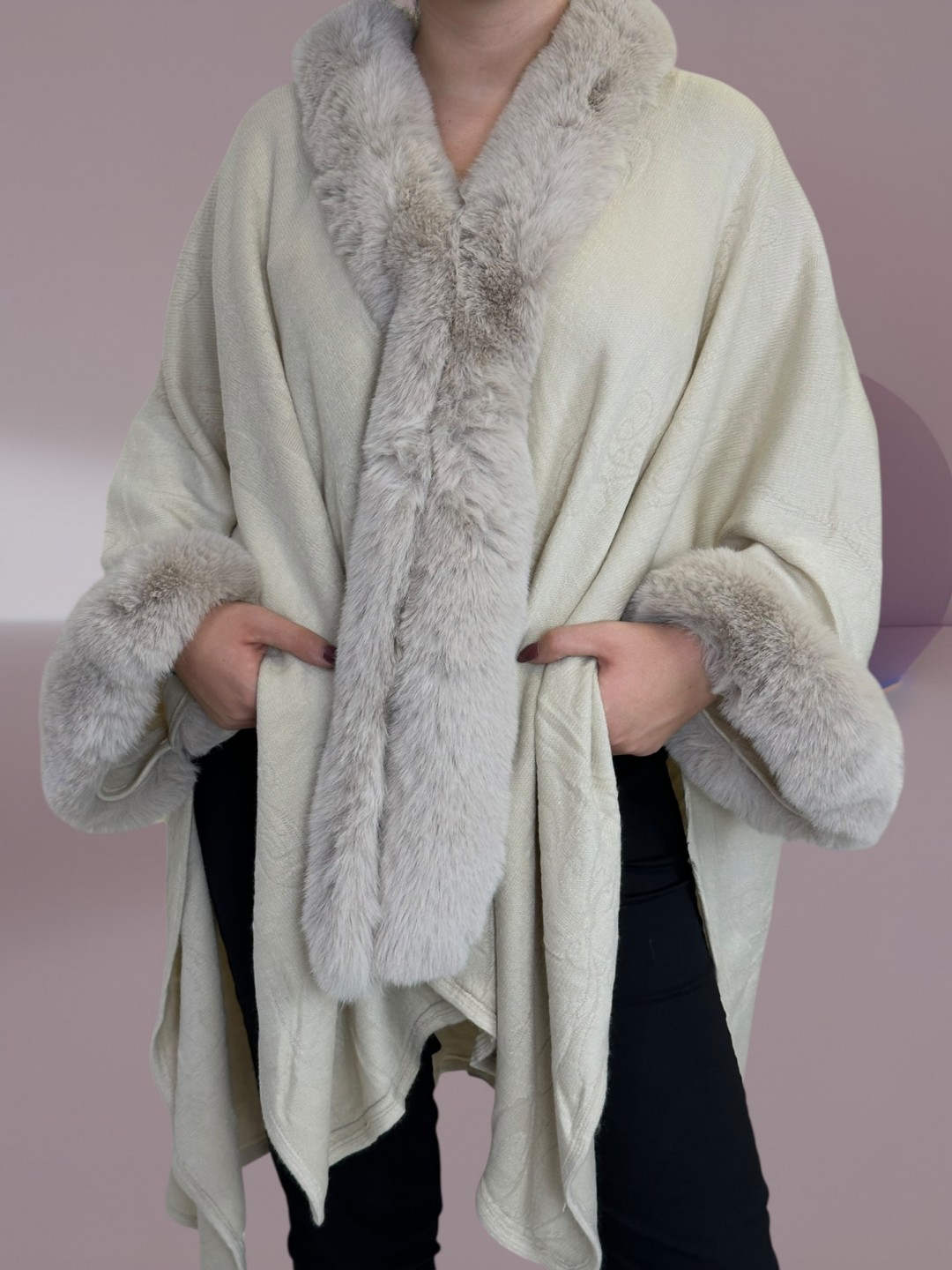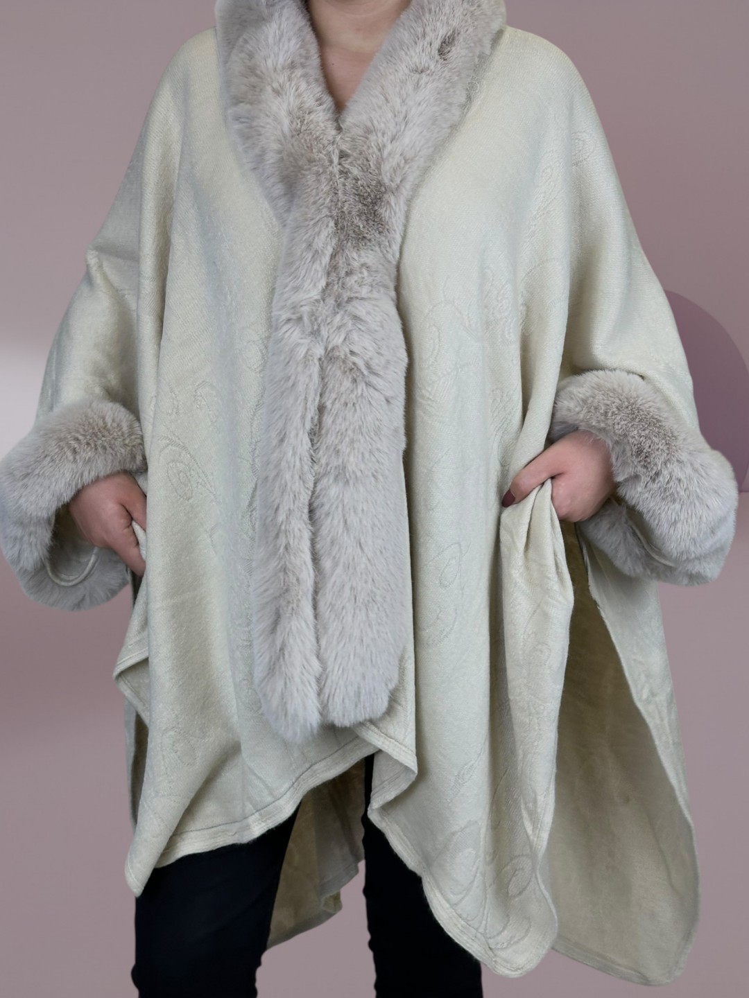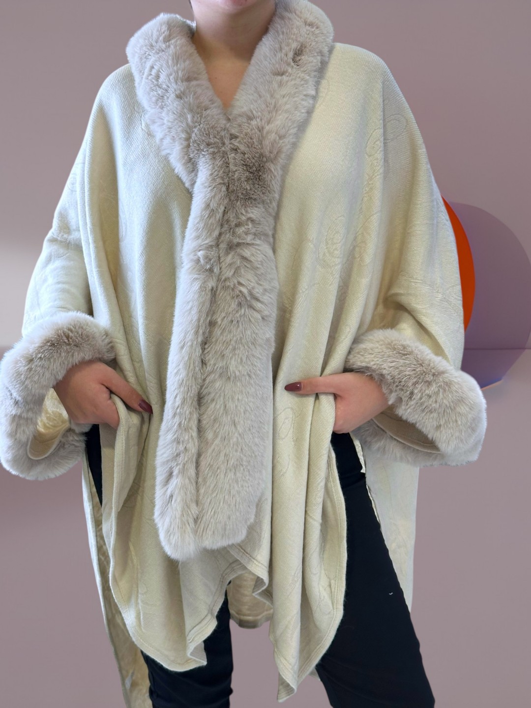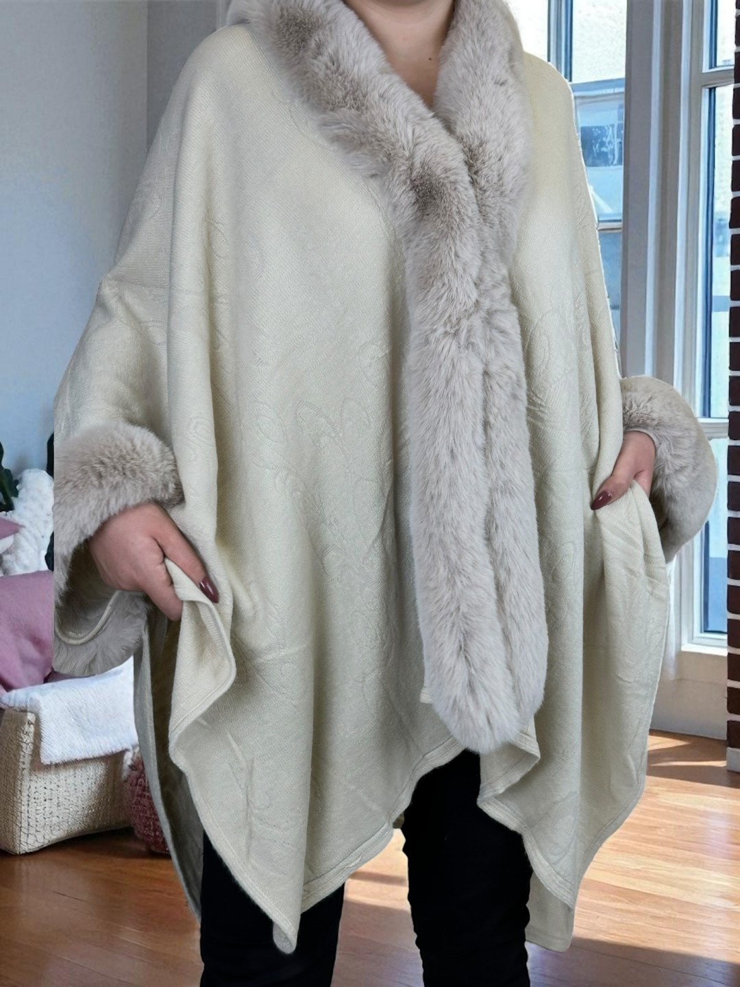 Μοναδική και άνετη, η κάπα Majestic Style σε plus size με γούνα σε λαιμό & χέρια προσφέρει ζεστασιά και στυλ. Διαθέσιμη σε One size, ταιριάζει τέλεια σε κάθε σωματότυπο, αναβαθμίζοντας την γκαρνταρόμπα σας.