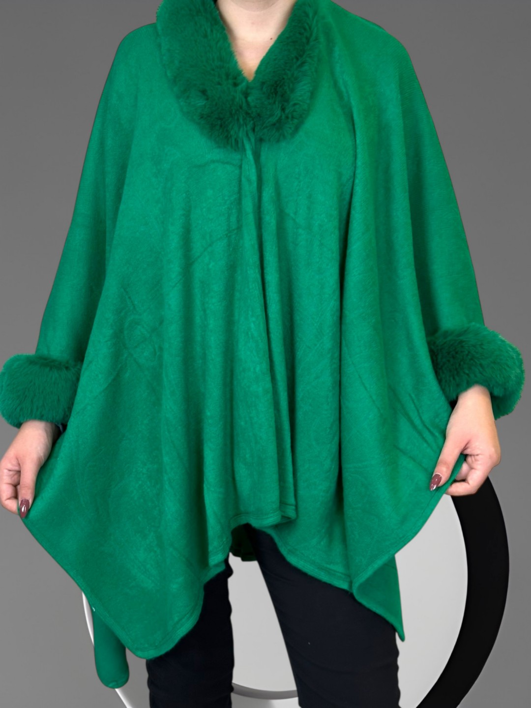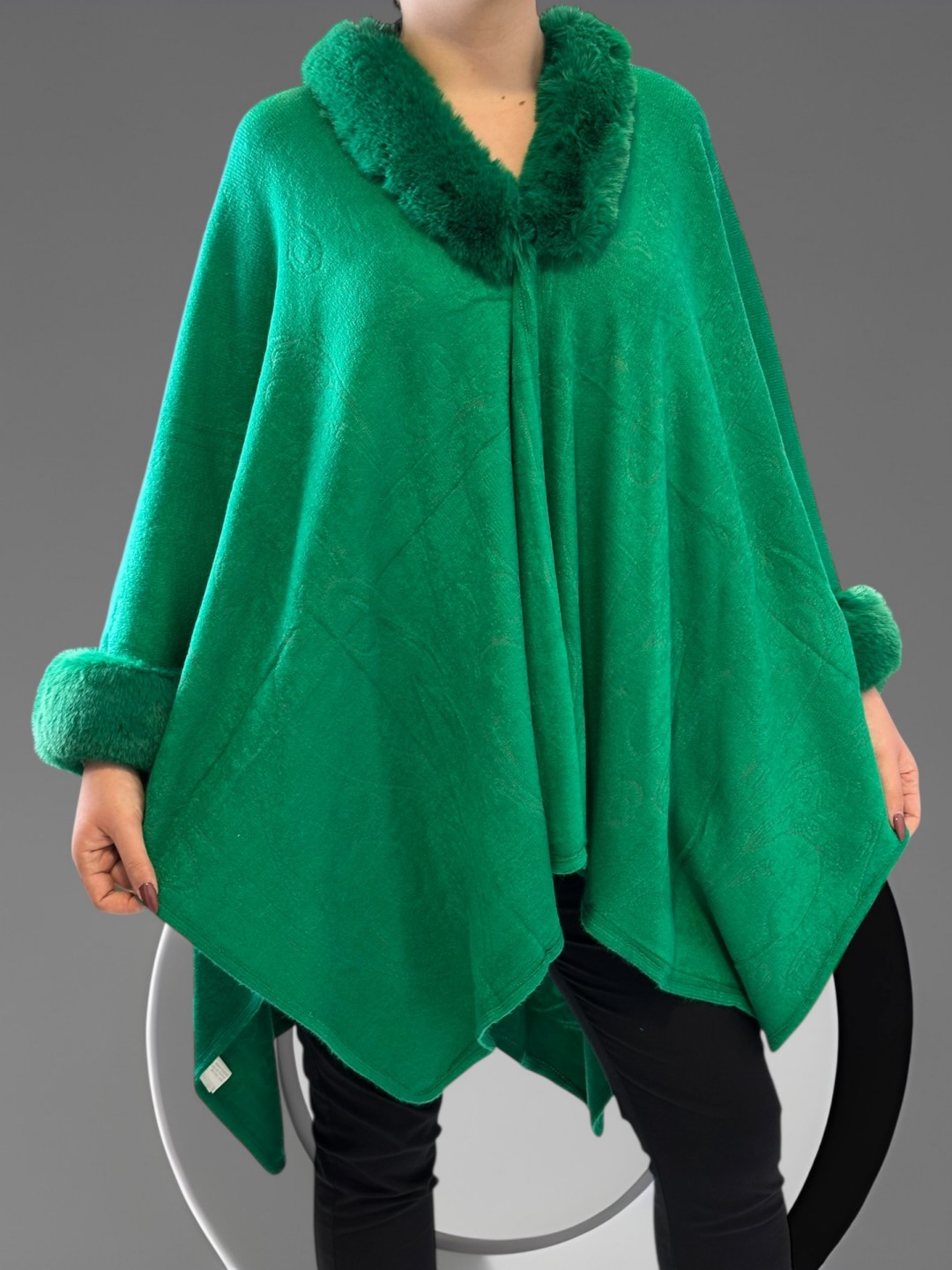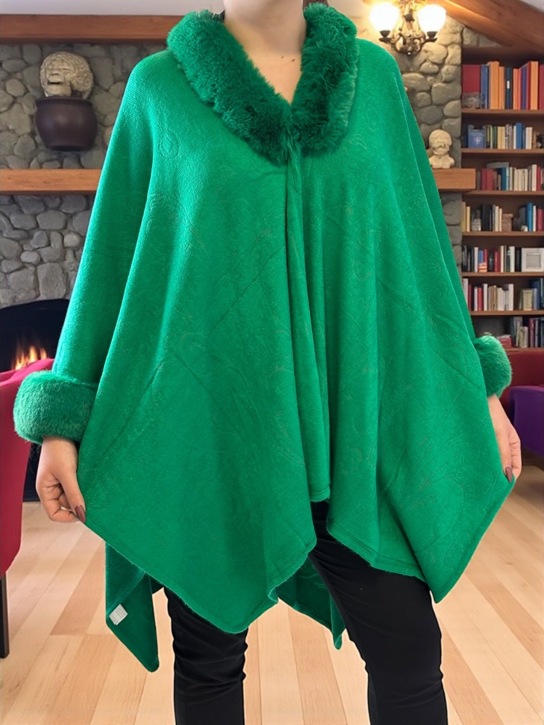 Απολαύστε το δίχρωμο στυλ με την πολυτελή, plus size, Κάπα Majestic Style. Διαθέτει ζεστή γούνα στο λαιμό και στα χέρια, προσφέροντάς σας φινέτσα και ζεστασιά. One size που ταιριάζει σε όλες.