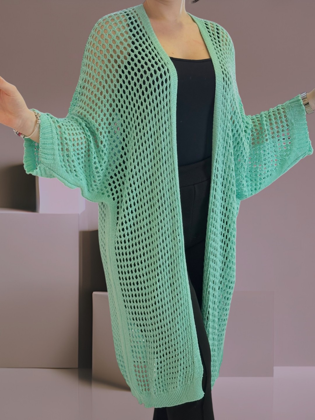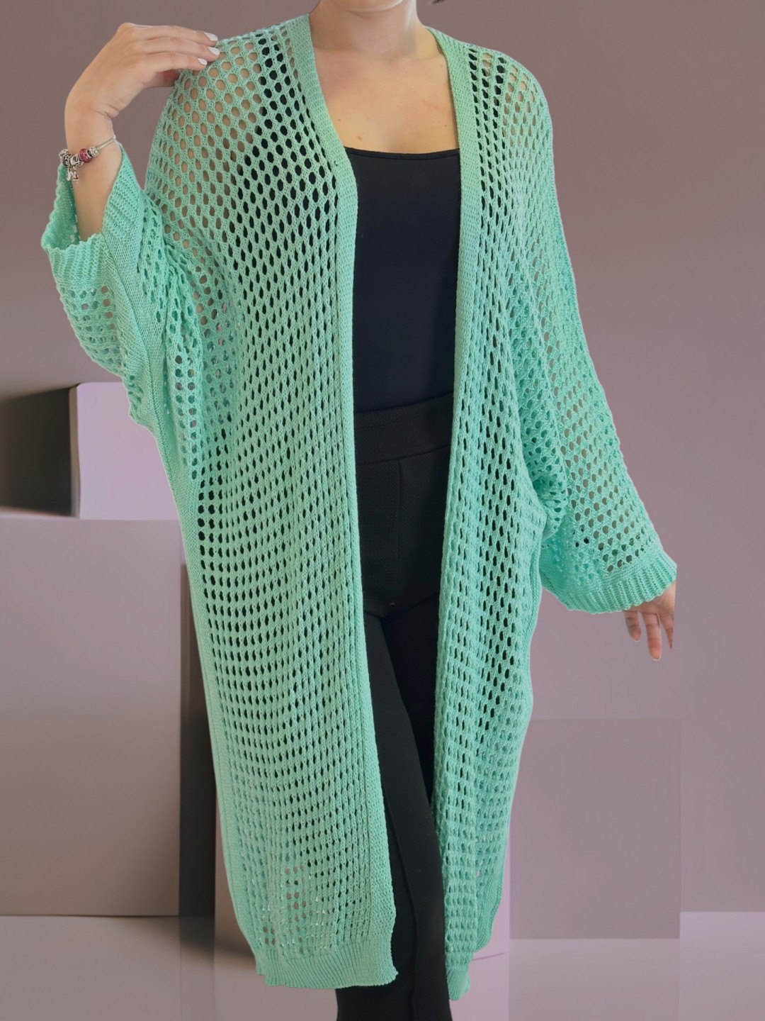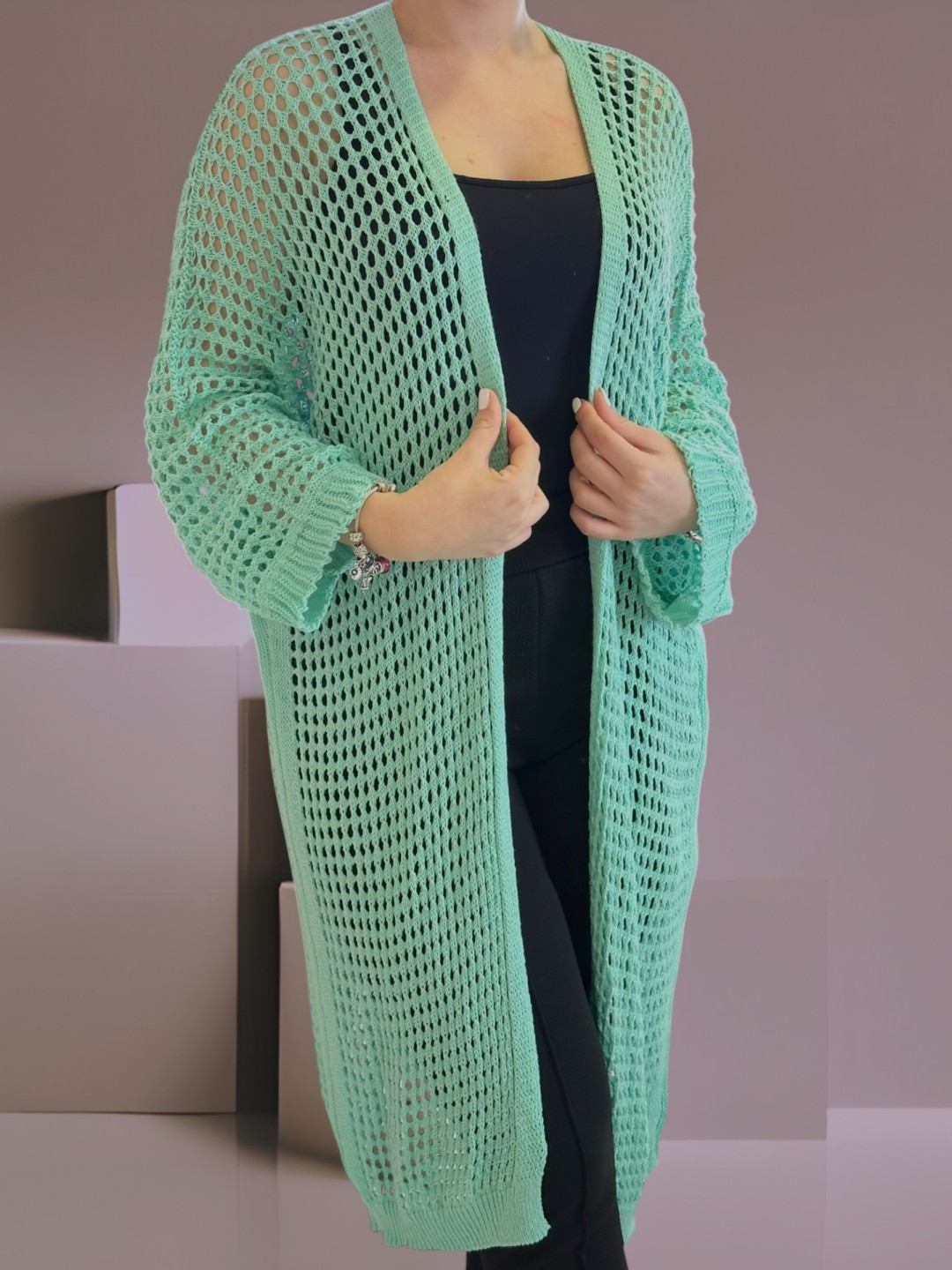 Μακριά πλεκτή ζακέτα δίχτυ